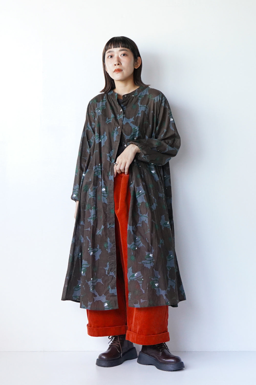 腰回りはすっきりめにし膝から裾にかけてフレアラインが出るようなシルエットにしバランスよく仕立てた1枚。フロントのポケットもアクセントに◎