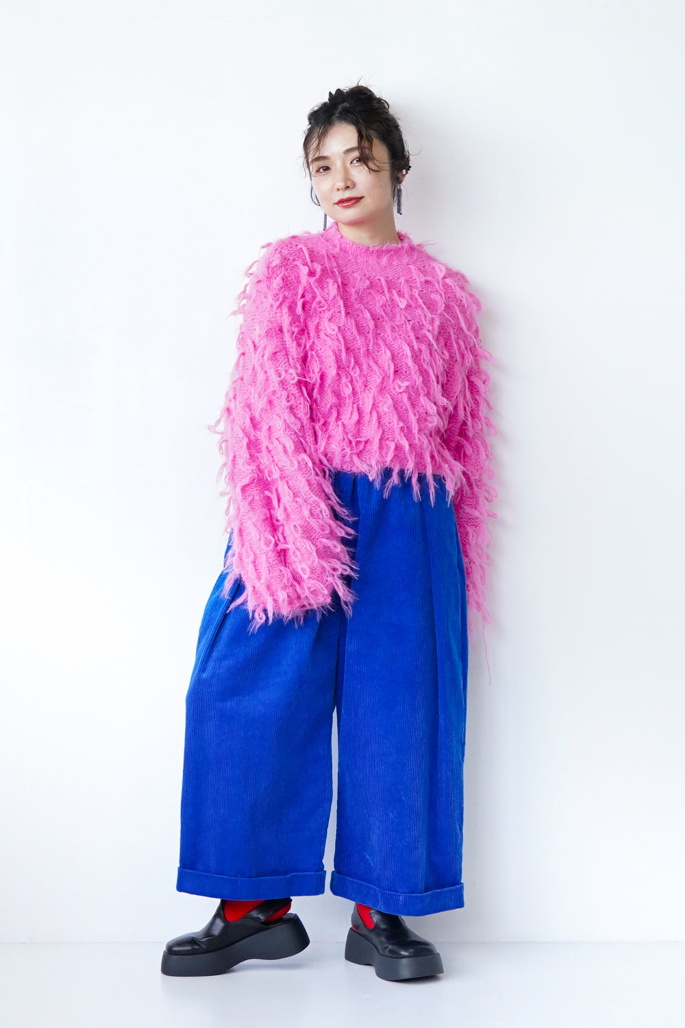女性らしいボートネックに袖口はリブできゅっと引き締まるバランス感も◎身長問わず着られるサイズ感なのも嬉しいポイント。
