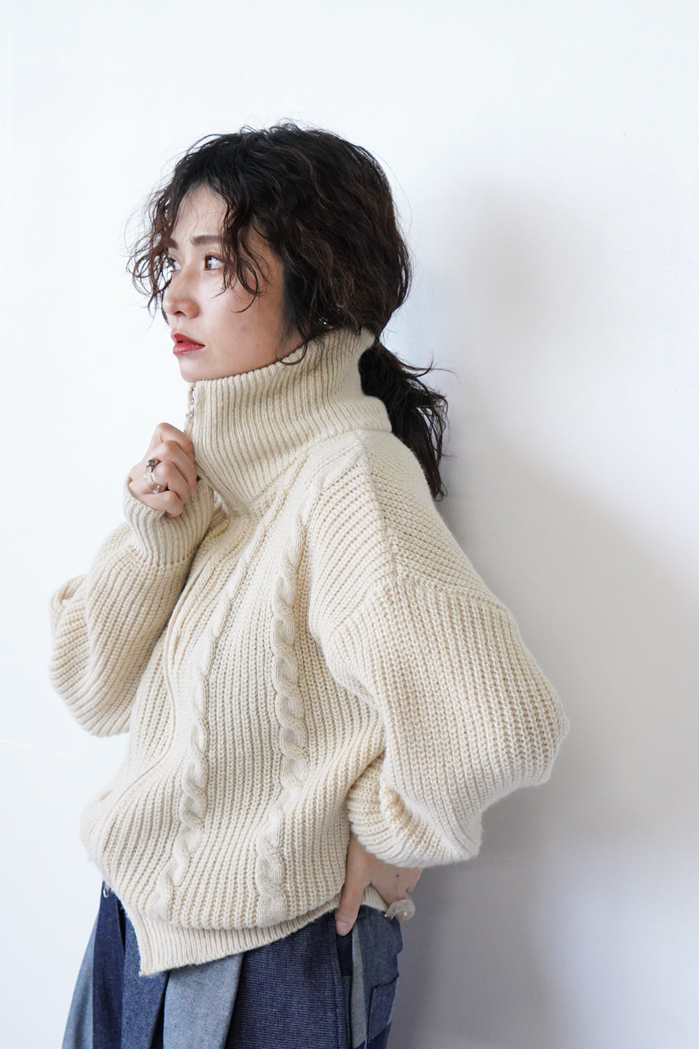 首元は暖かいハイネックデザイン。主役級アイテムなのでシンプルにデニム合わせのコーディネートもおすすめです!