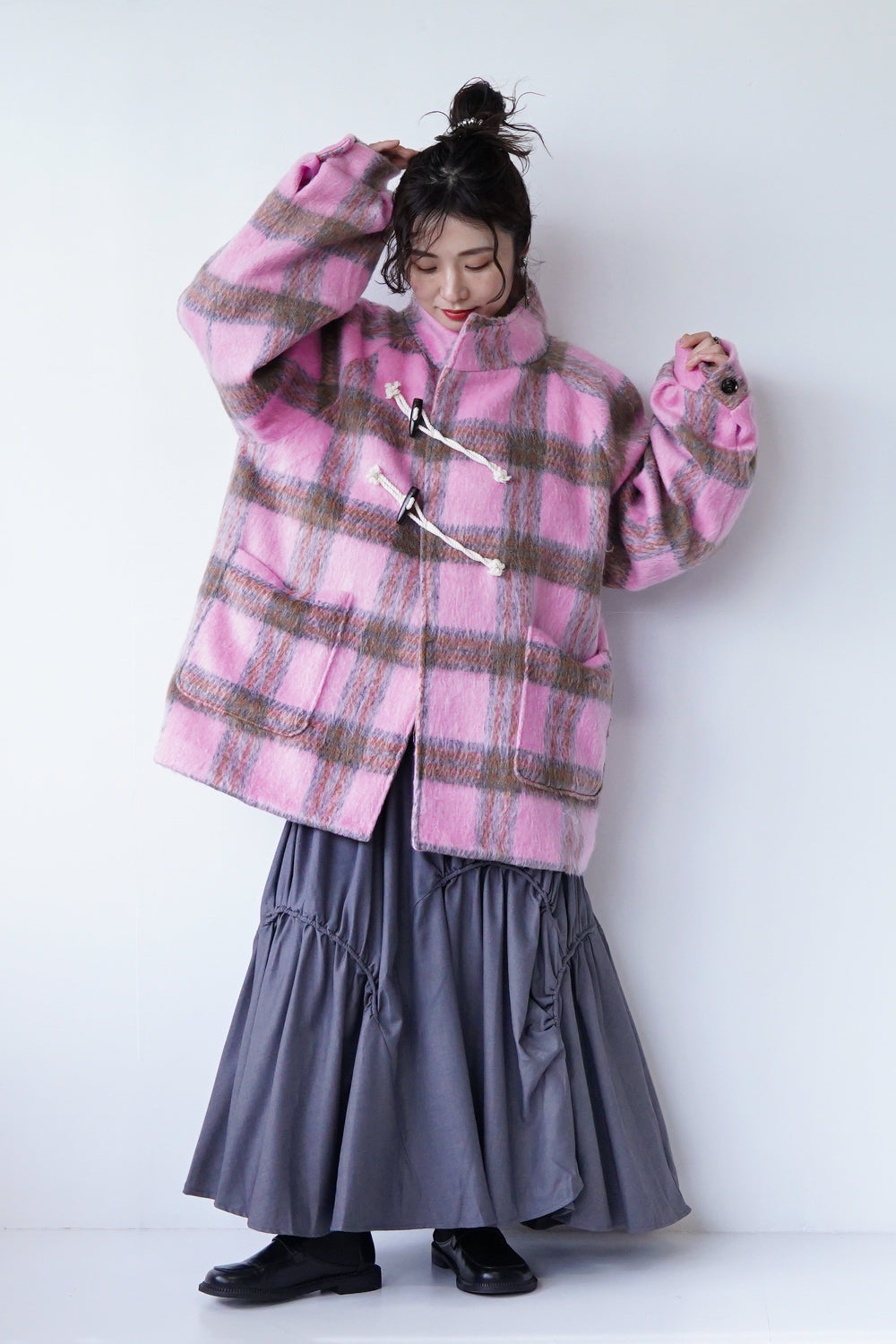 大人可愛いカラーリングは、同系色でまとめてもコートを主役にしたコーデにもおすすめ。