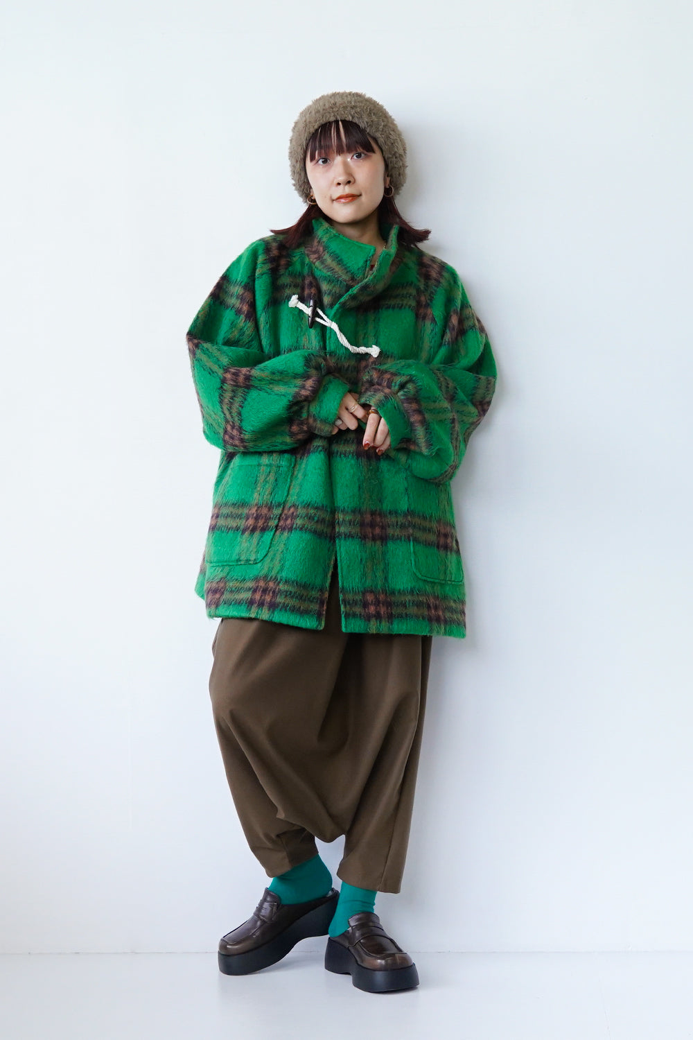 鮮やかなチェック柄が秋冬スタイルに映える【LILA n’ citta】オリジナルのハーフコート。裏地付きでとっても軽くて暖かい!