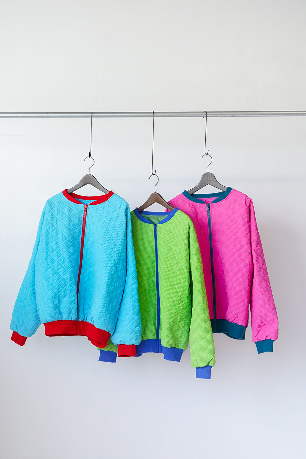 裏地付きで表裏兼用ファスナーなのでリバーシブルで着用可能なオリジナルブルゾン。