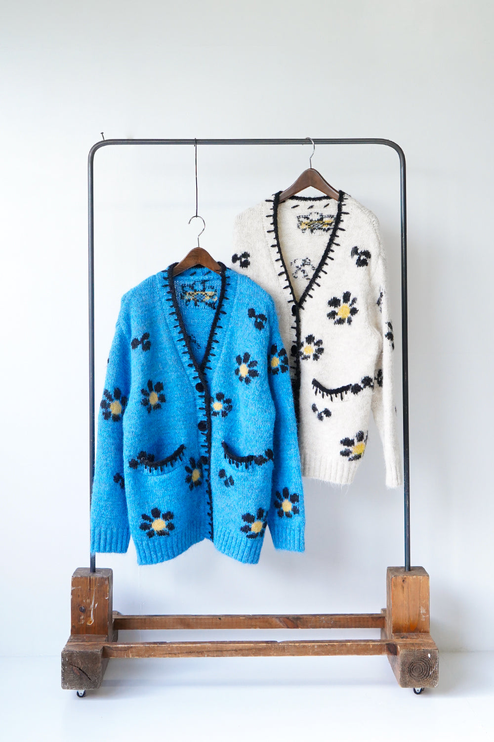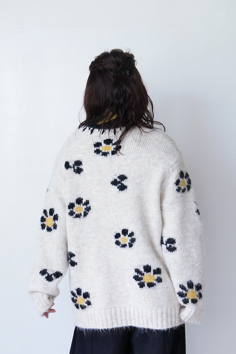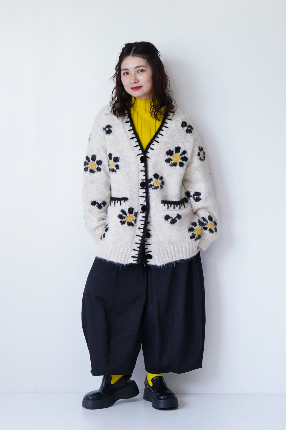 レトロポップな大きいフラワー編みのビッグカーディガン。