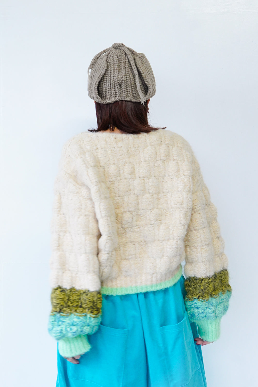 地厚のニットがほっこり暖かみのあるデザイン。セットはもちろん、単品使いでもコーディネートの主役になるおすすめアイテム。