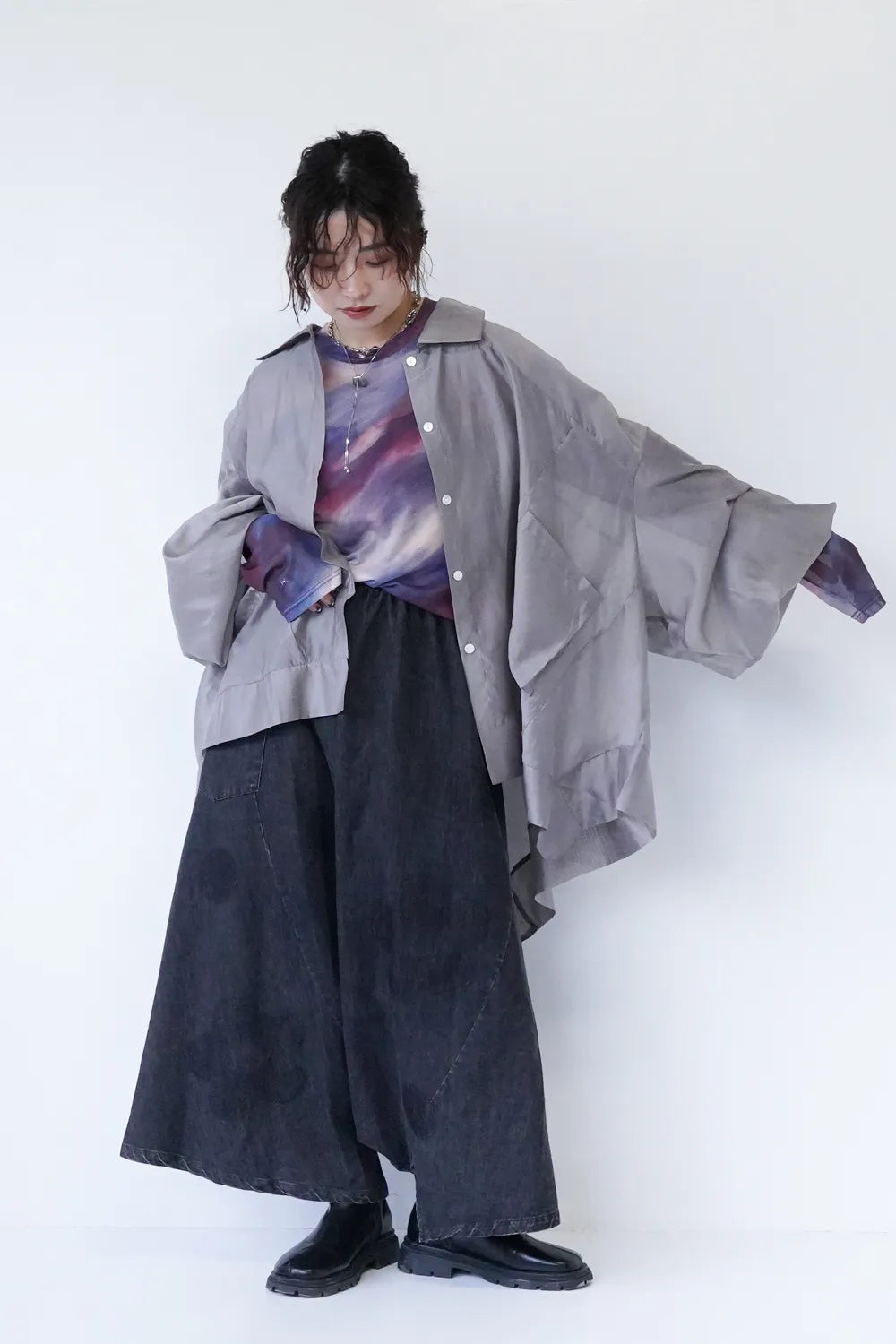 深いスリットが入っているのでボトムスとのコーデを楽しめます。1枚持っていると便利なアイテム◎