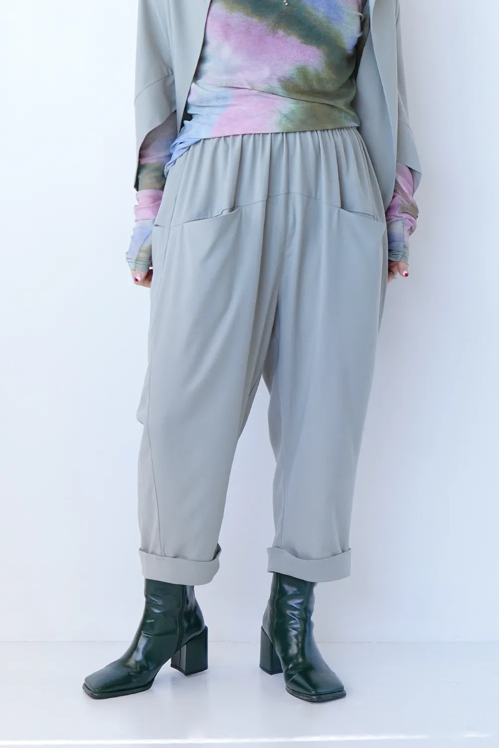 定番より薄手生地なので4月の気候から夏まで活躍する1枚。ストレッチ性があり動きやすく足元に抜け感が出るので涼やかな印象も◎
