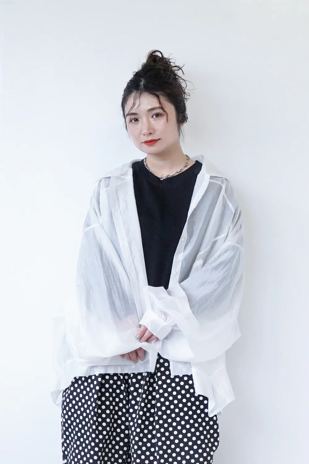 日よけや冷房対策にもおすすめなシアーシャツ。朝晩の肌寒い気候にもこの時期に1枚持ってると便利な優秀アイテム。