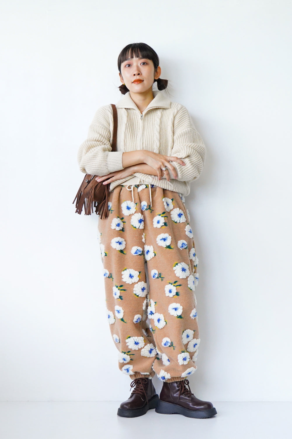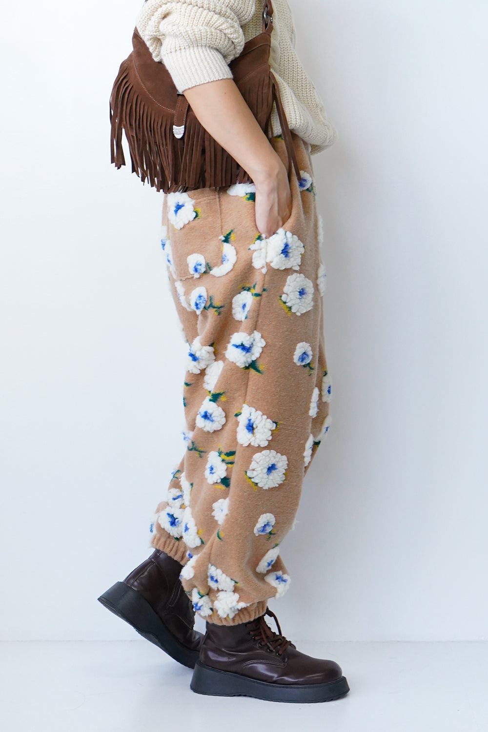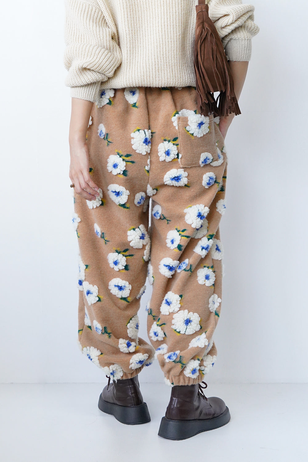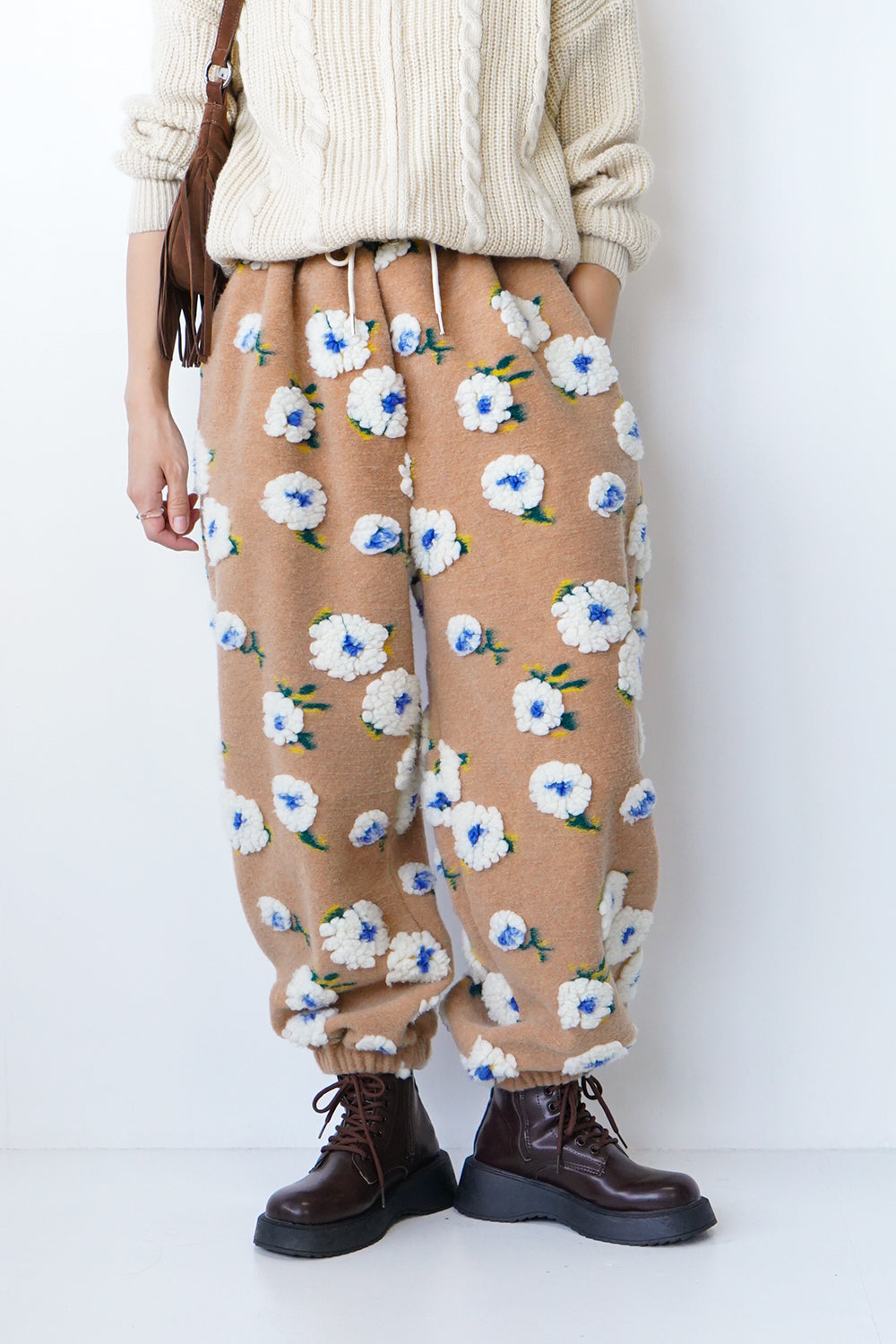 ボア花柄フリースパンツ