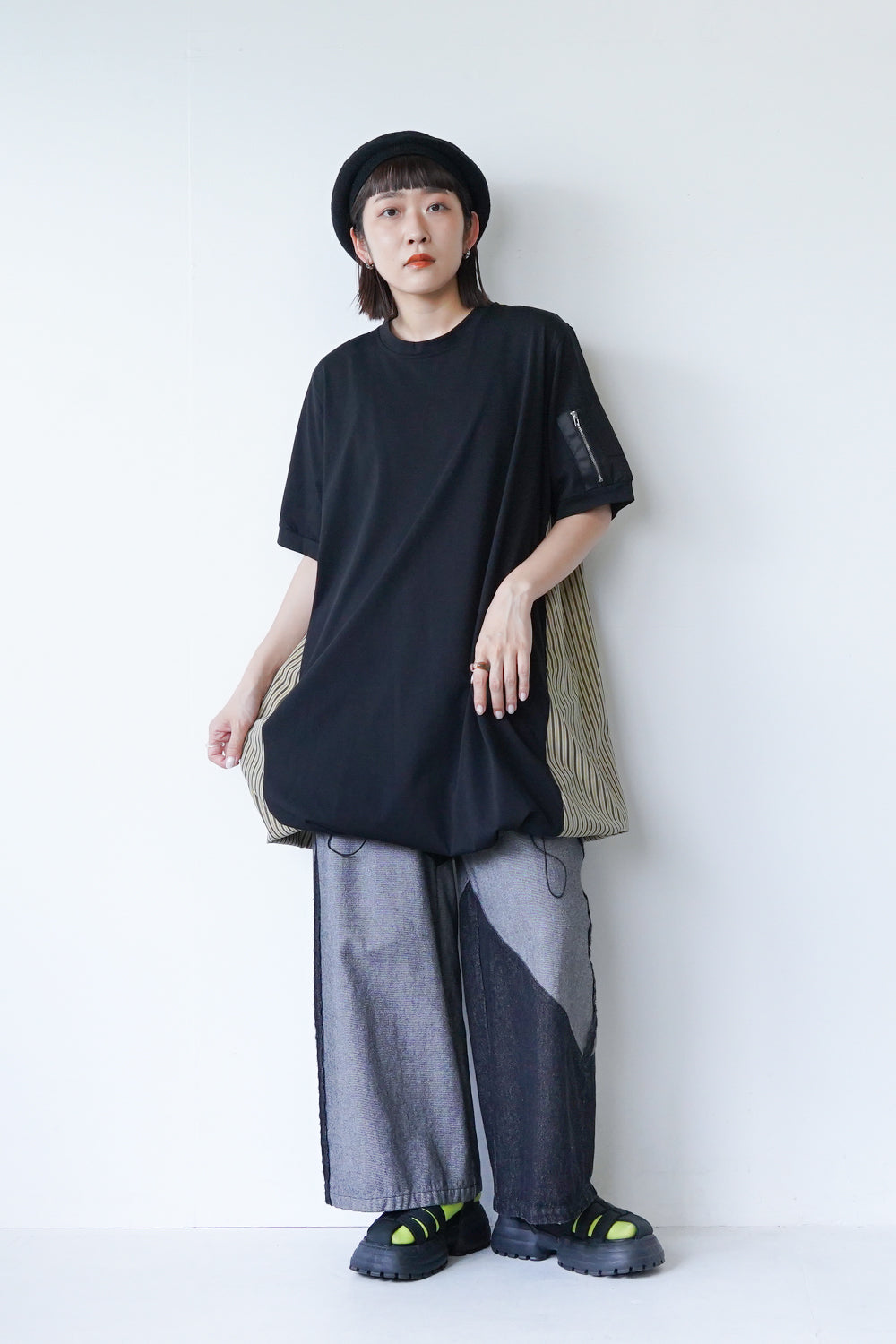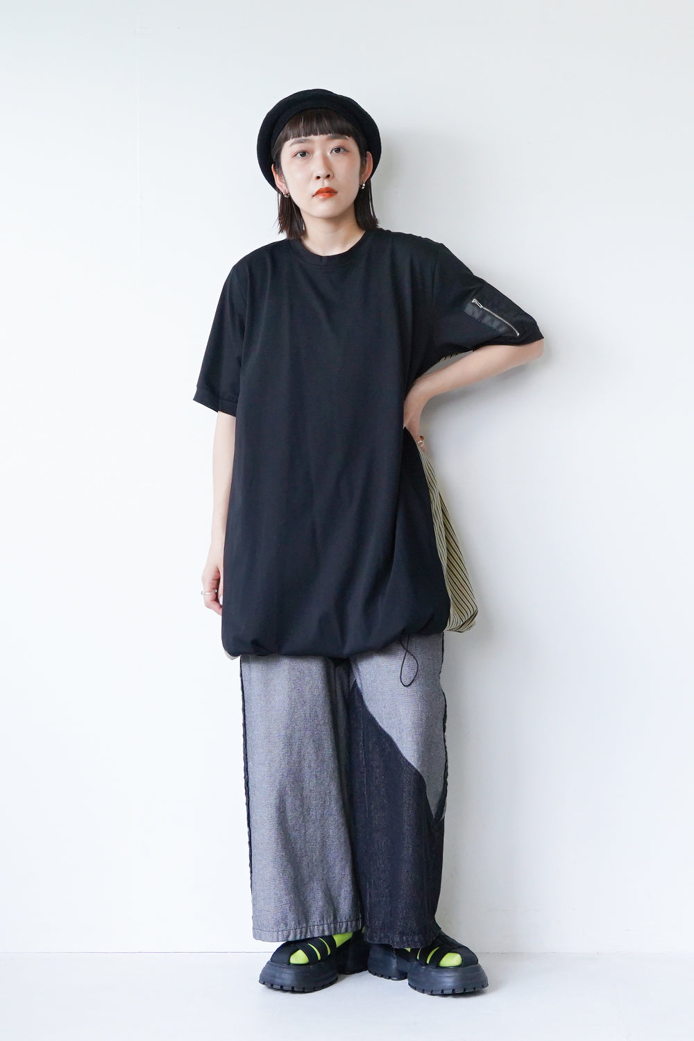 前後まったく違うデザインなのがポイントのワンピース。裾をかっつり絞ればバルーントップス風にも着ていただけます◎