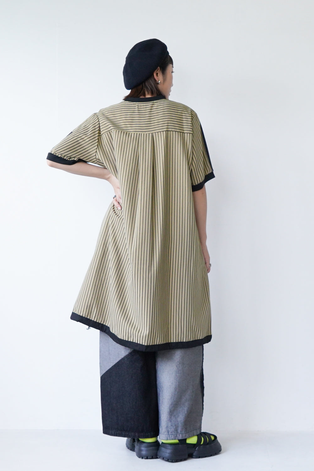 【MICALLE MICALLE】ストライプドロストヘムチュニックワンピース