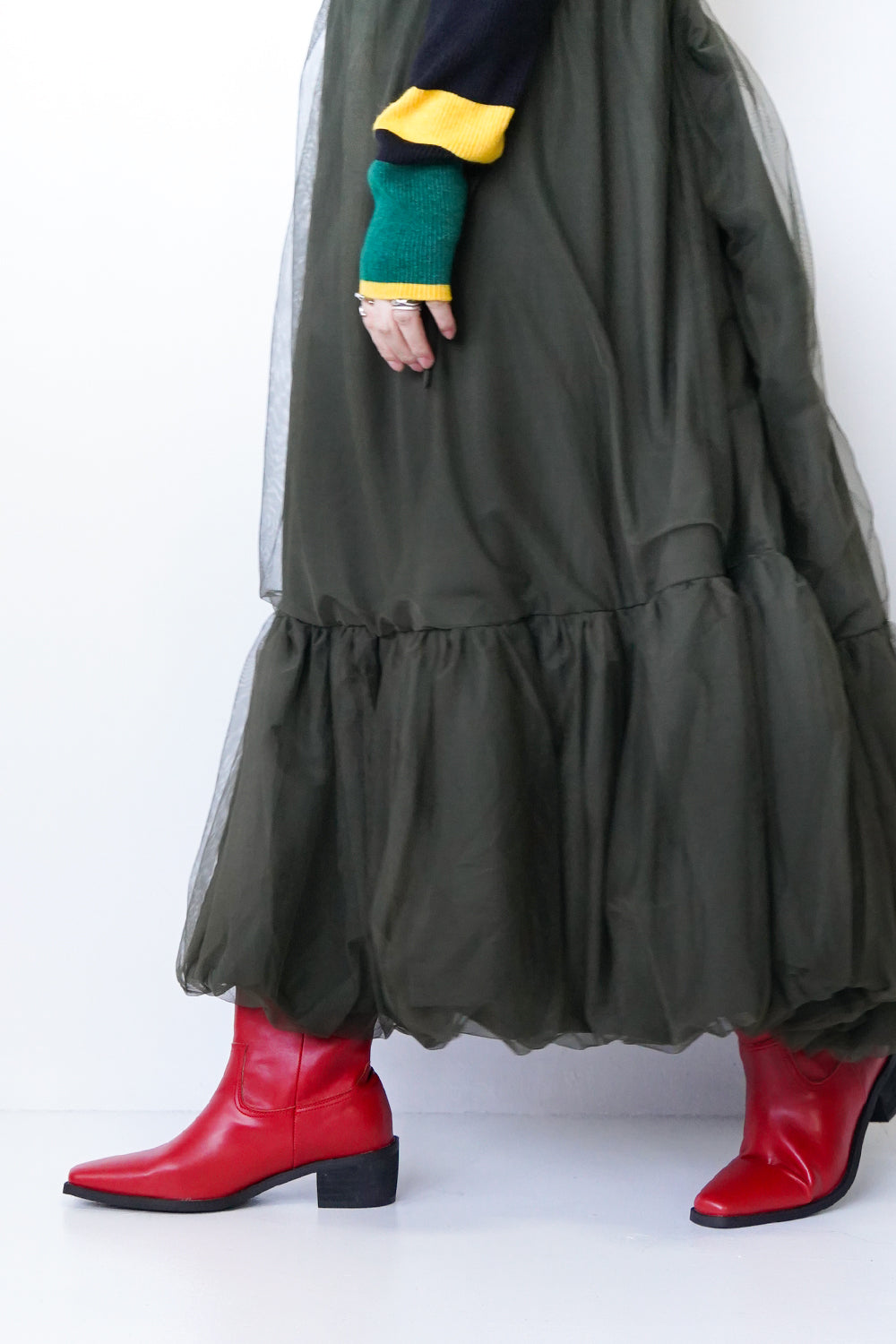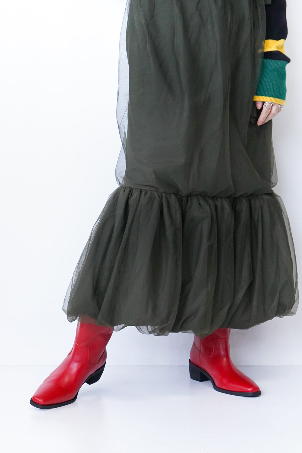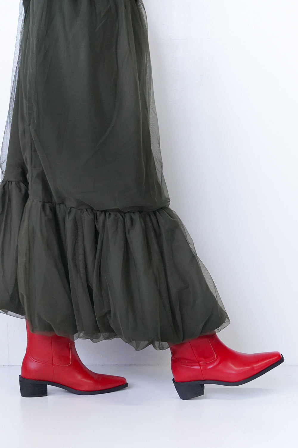 ビビッドなカラーが目を惹くウエスタンブーツ。スタイリングに取り入れやすいミドル丈とヒールは5㎝と歩きやすい高さなのも嬉しいポイント◎暗くなりがちな足物にエッジを効かせてくれるおすすめアイテムです。