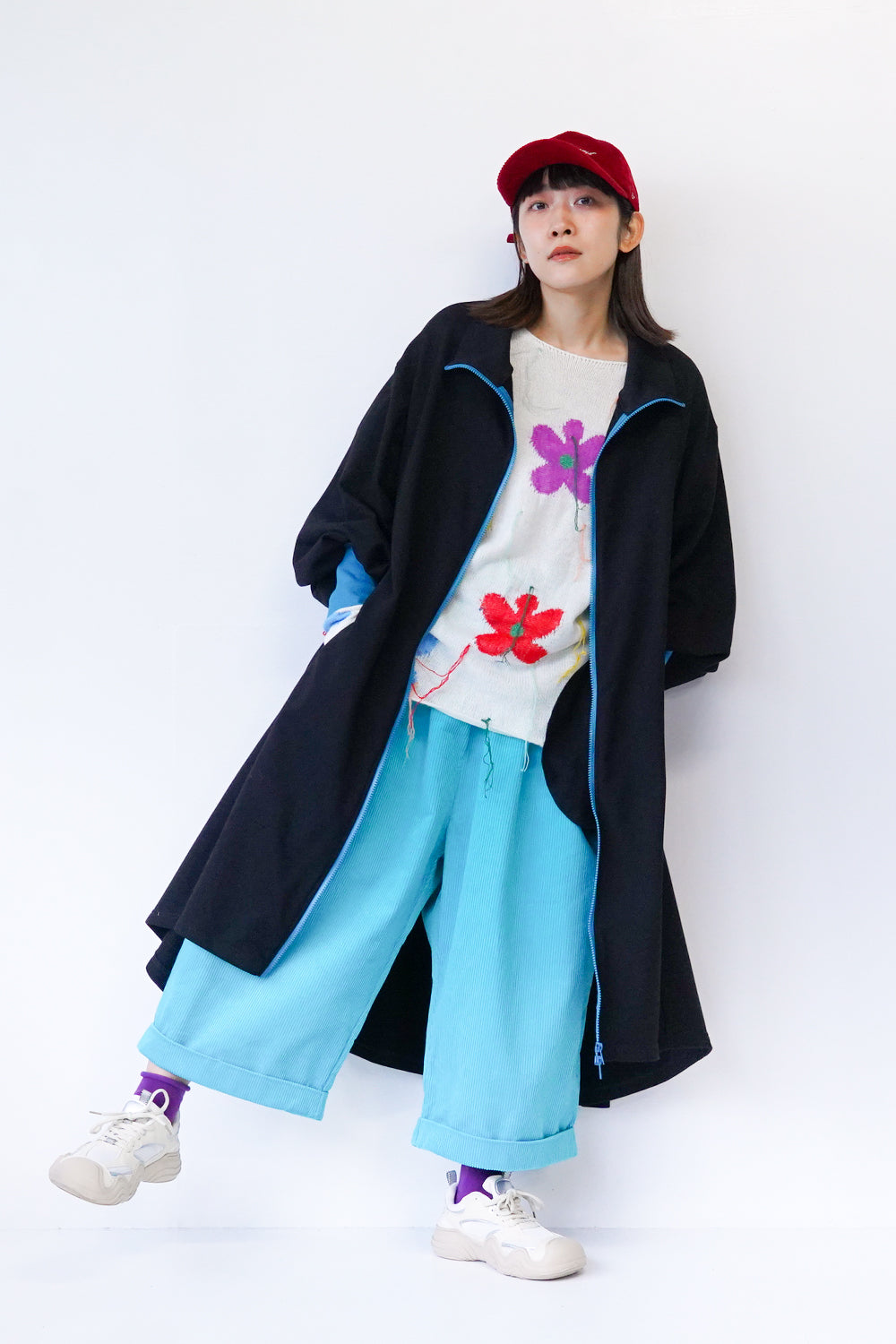 配色使いが個性的な【LILA n’ citta】オリジナルのワンピース。程よいハイネックと長めのロングリブがアクセントに。大胆にジップも配色使いにし目を惹くデザインに仕上げました。ダブルジップでアレンジも可能◎ワンピースとしても羽織としても活躍してくれる万能アイテムです。