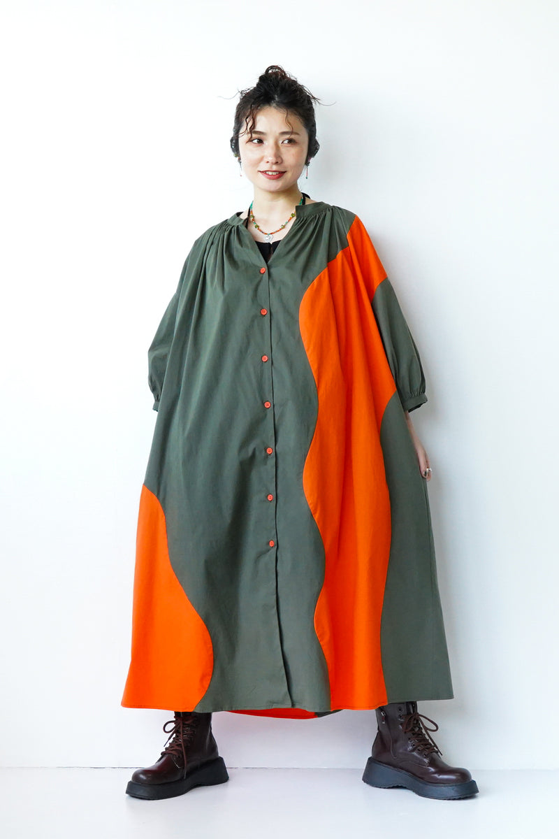 【LILA n' citta】裏毛ジップバイカラーワンピース