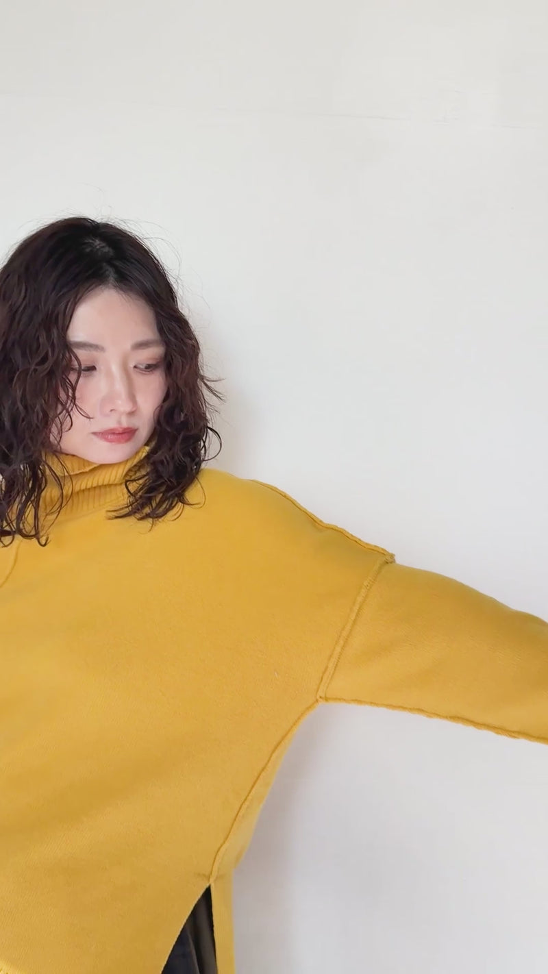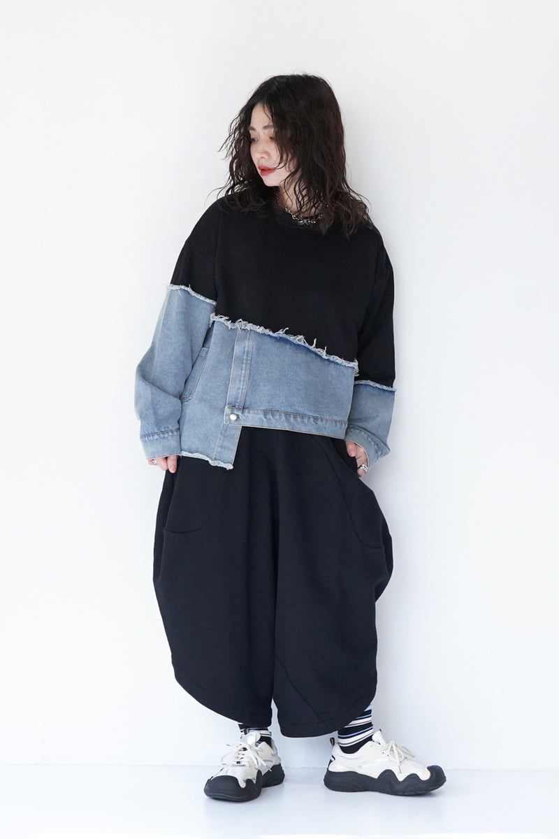 スウェット×デニム切替アシメプルオーバー