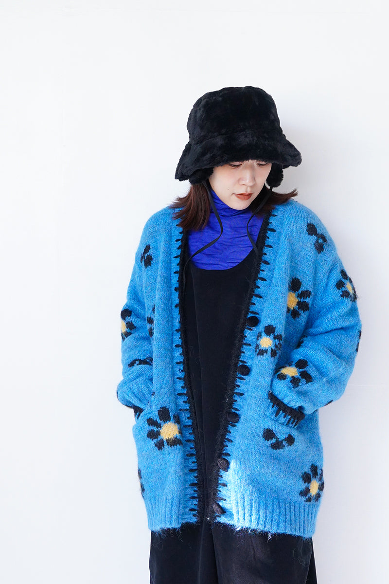 フラワー編みビッグニットカーディガン