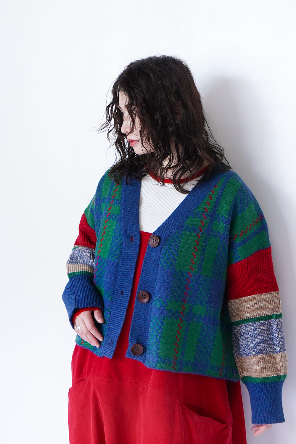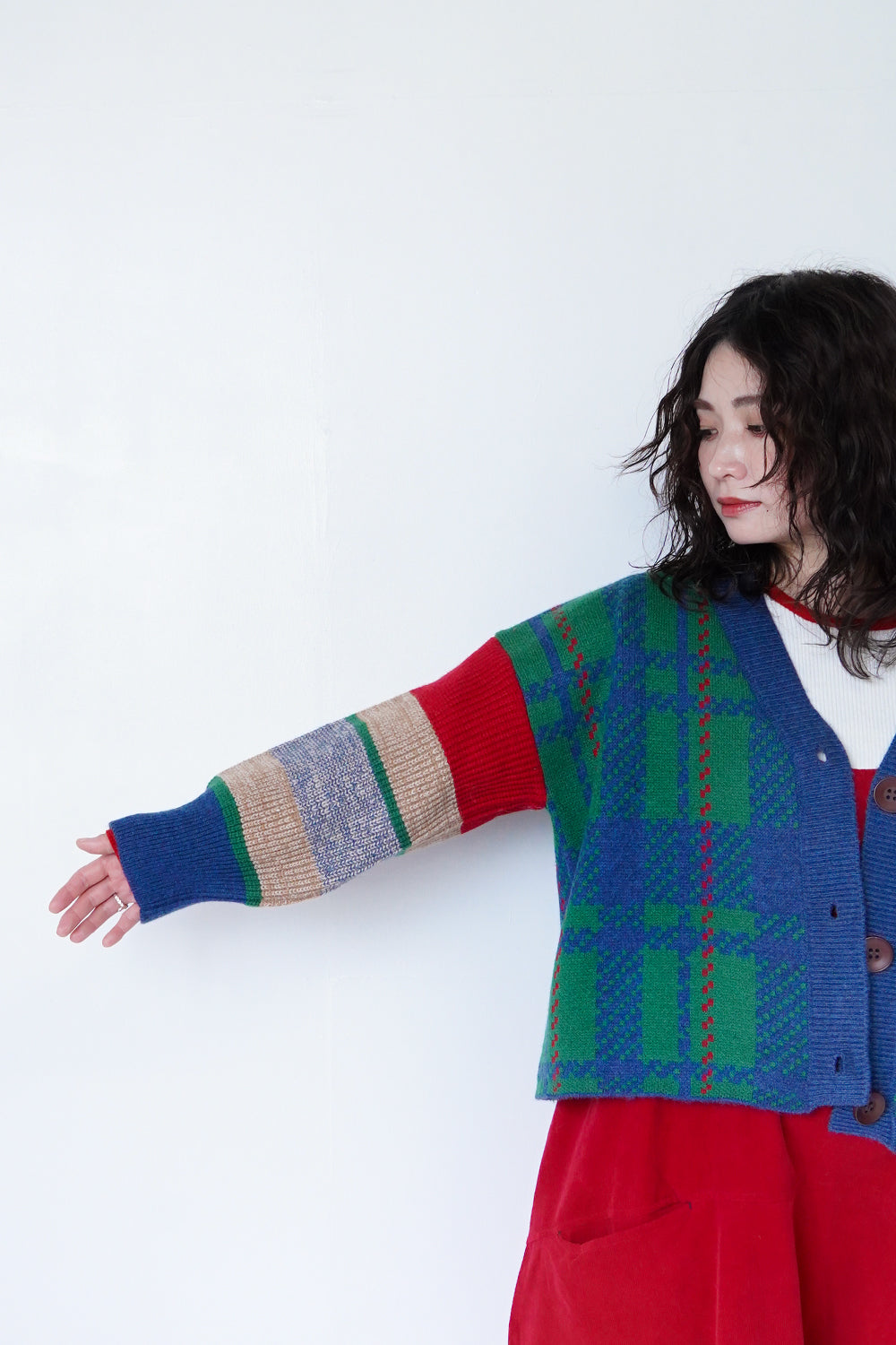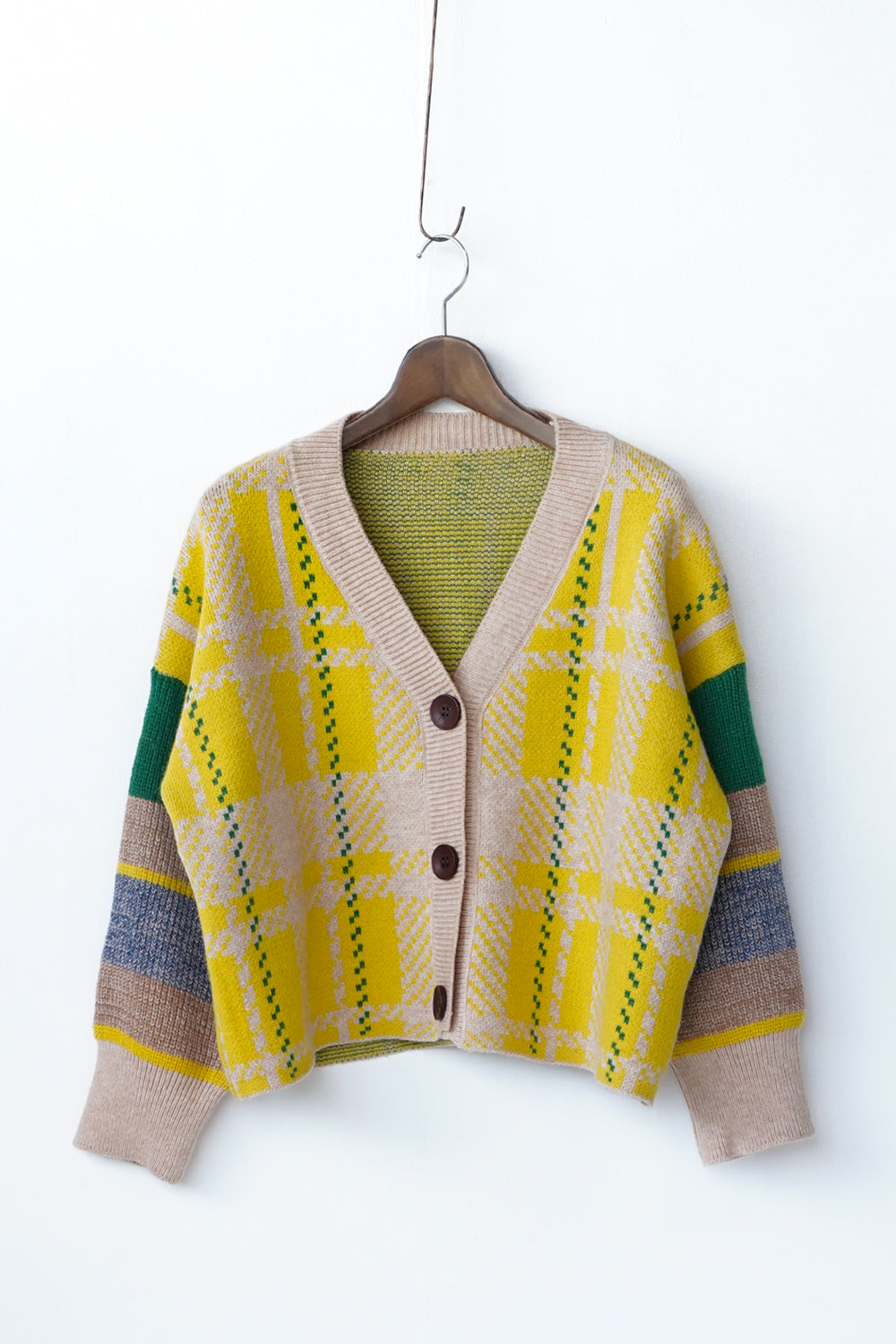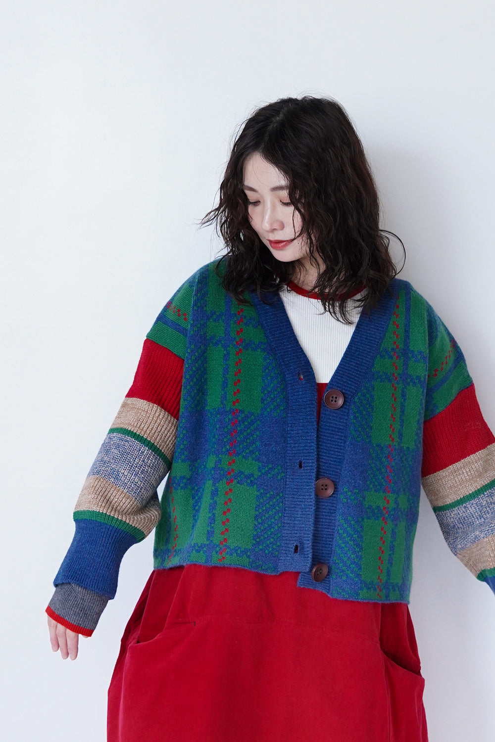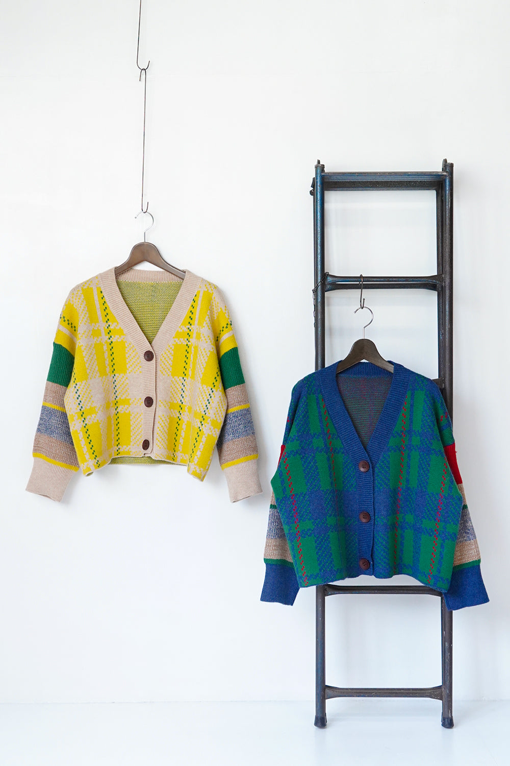 ポップでインパクトのある大柄チェックのニットカーディガン。個性的な配色使いは暗くなりがちな冬のコーデを明るくしてくれます。ばさっと羽織れるオーバーサイズで大きなボタンもポイント◎Vネックデザインで女性らしい抜け感も兼ね備えた1枚です。