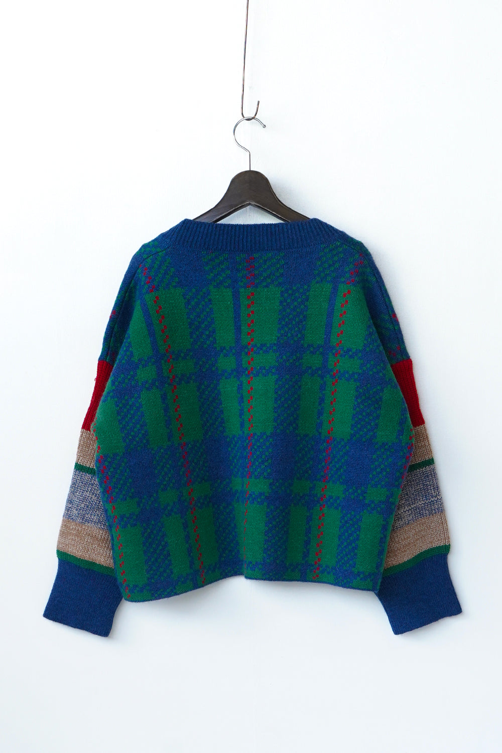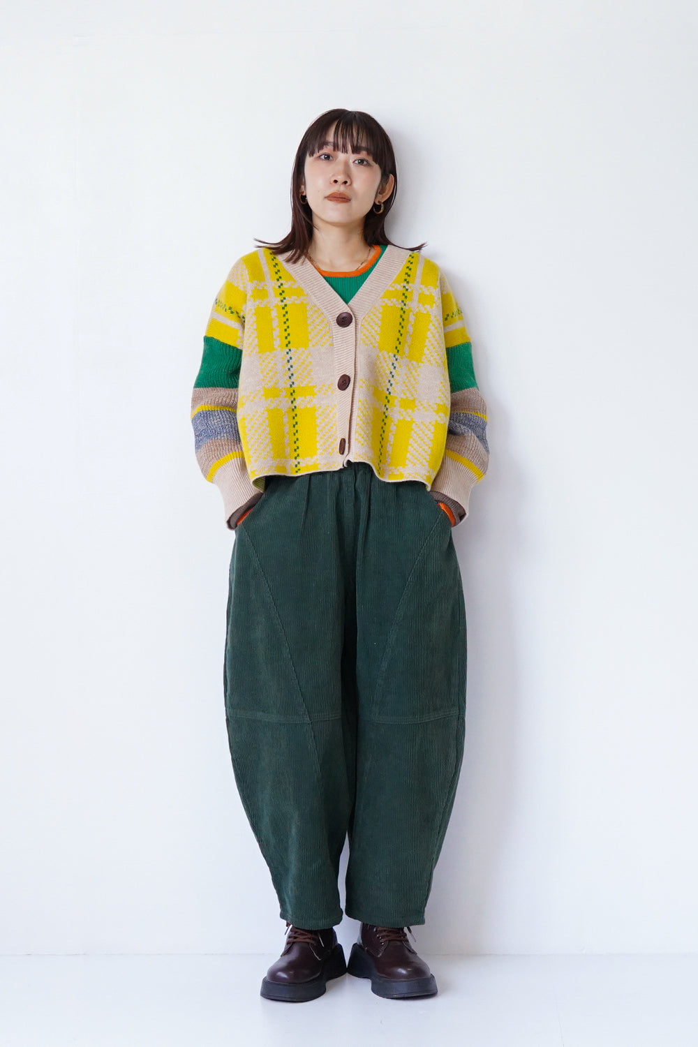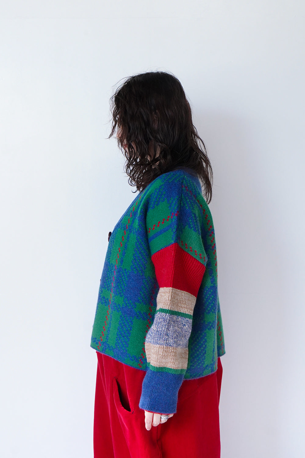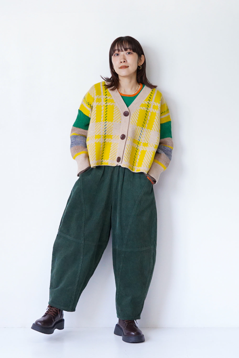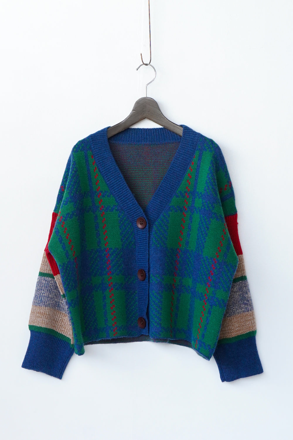 ポップでインパクトのある大柄チェックのニットカーディガン。個性的な配色使いは暗くなりがちな冬のコーデを明るくしてくれます。ばさっと羽織れるオーバーサイズで大きなボタンもポイント◎Vネックデザインで女性らしい抜け感も兼ね備えた1枚です。