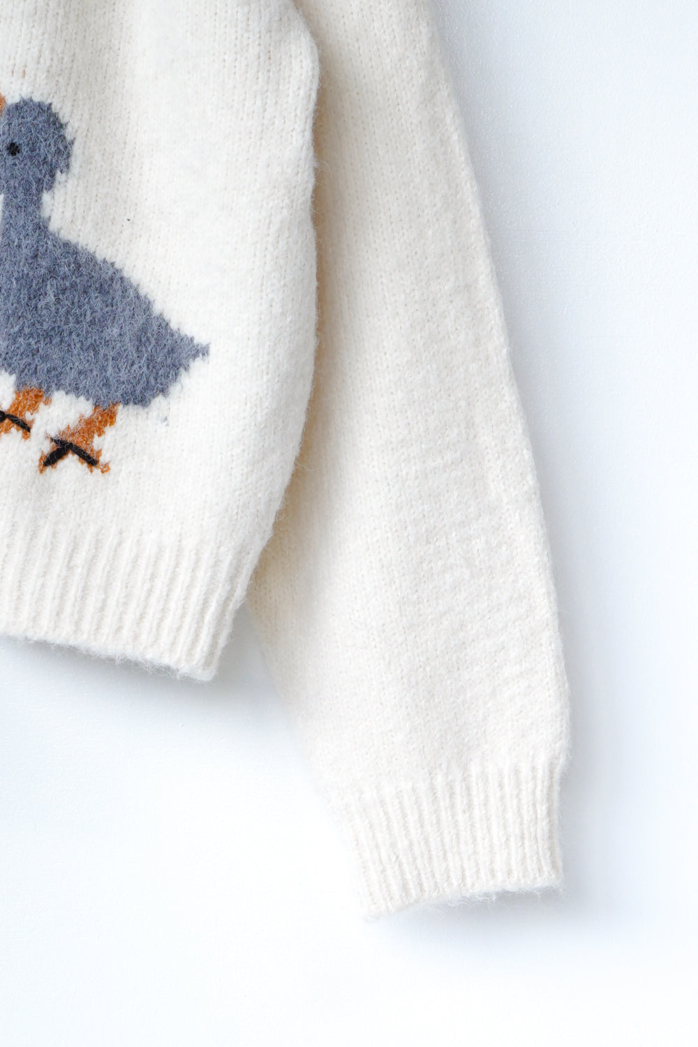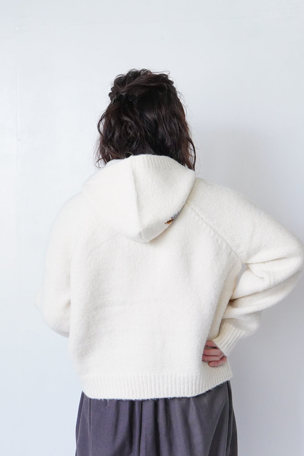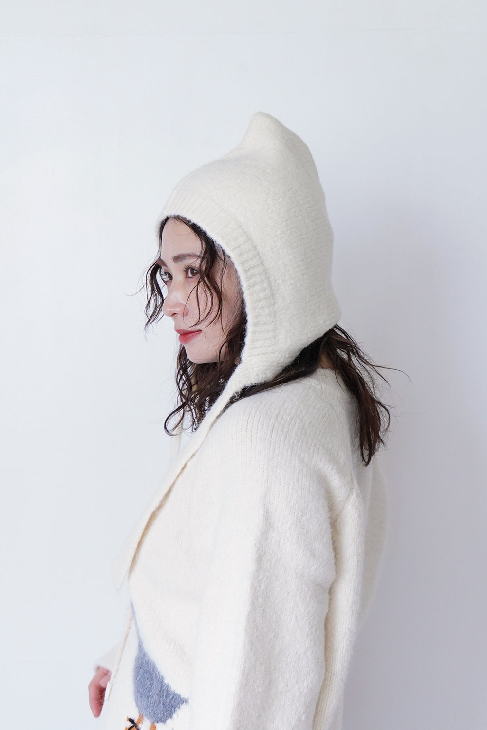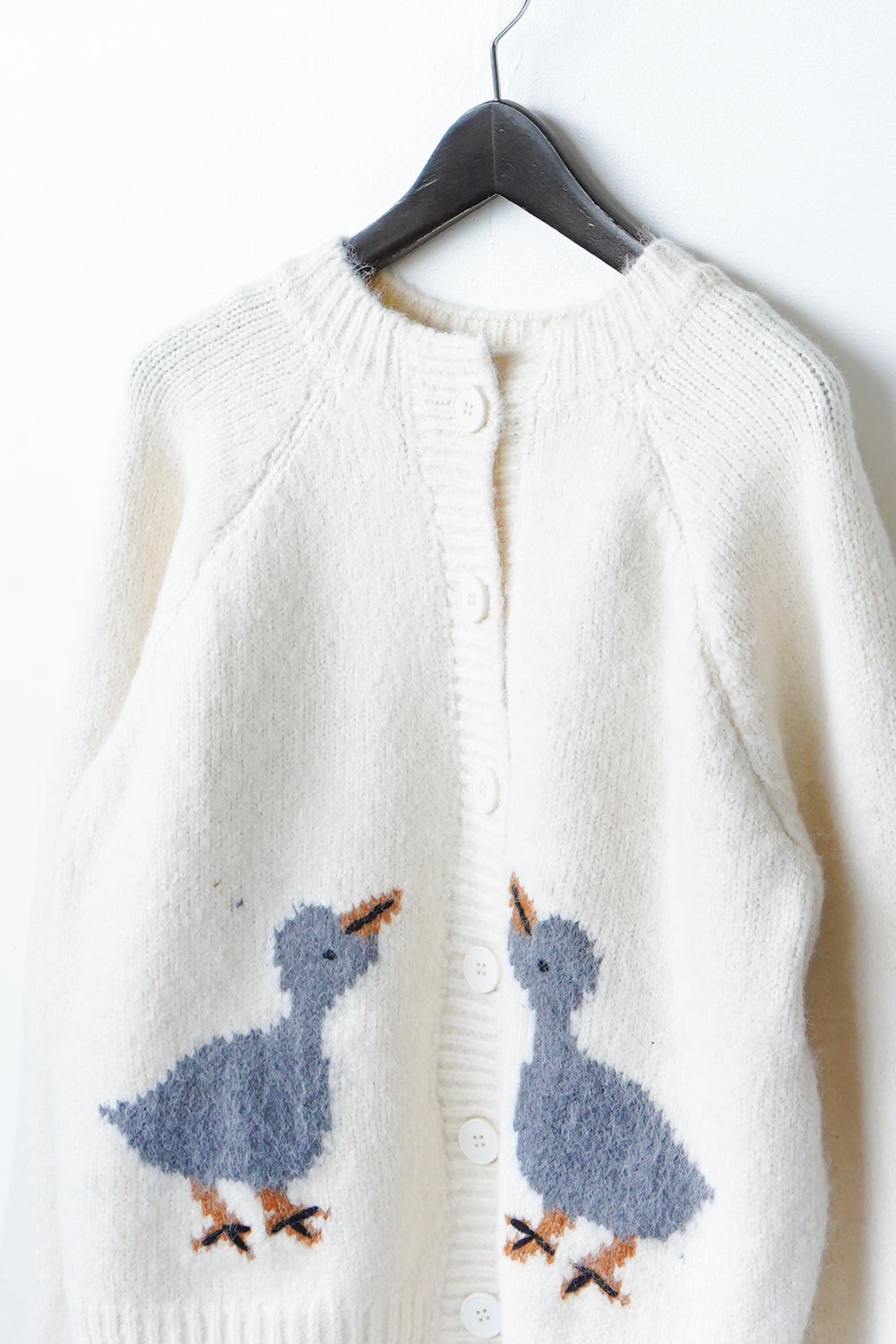 キャッチーな鳥柄がかわいいカーディガンとフードのセットアップ。地厚のニットがほっこり暖かみのあるデザイン。セットはもちろん、単品使いでもコーディネートの主役になるおすすめアイテム。鳥好きさん必見、他にはないデザインのおすすめの1枚です。