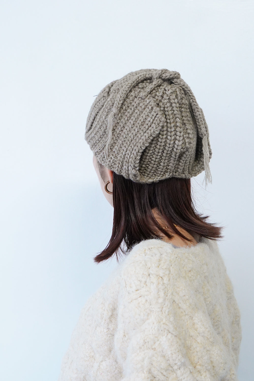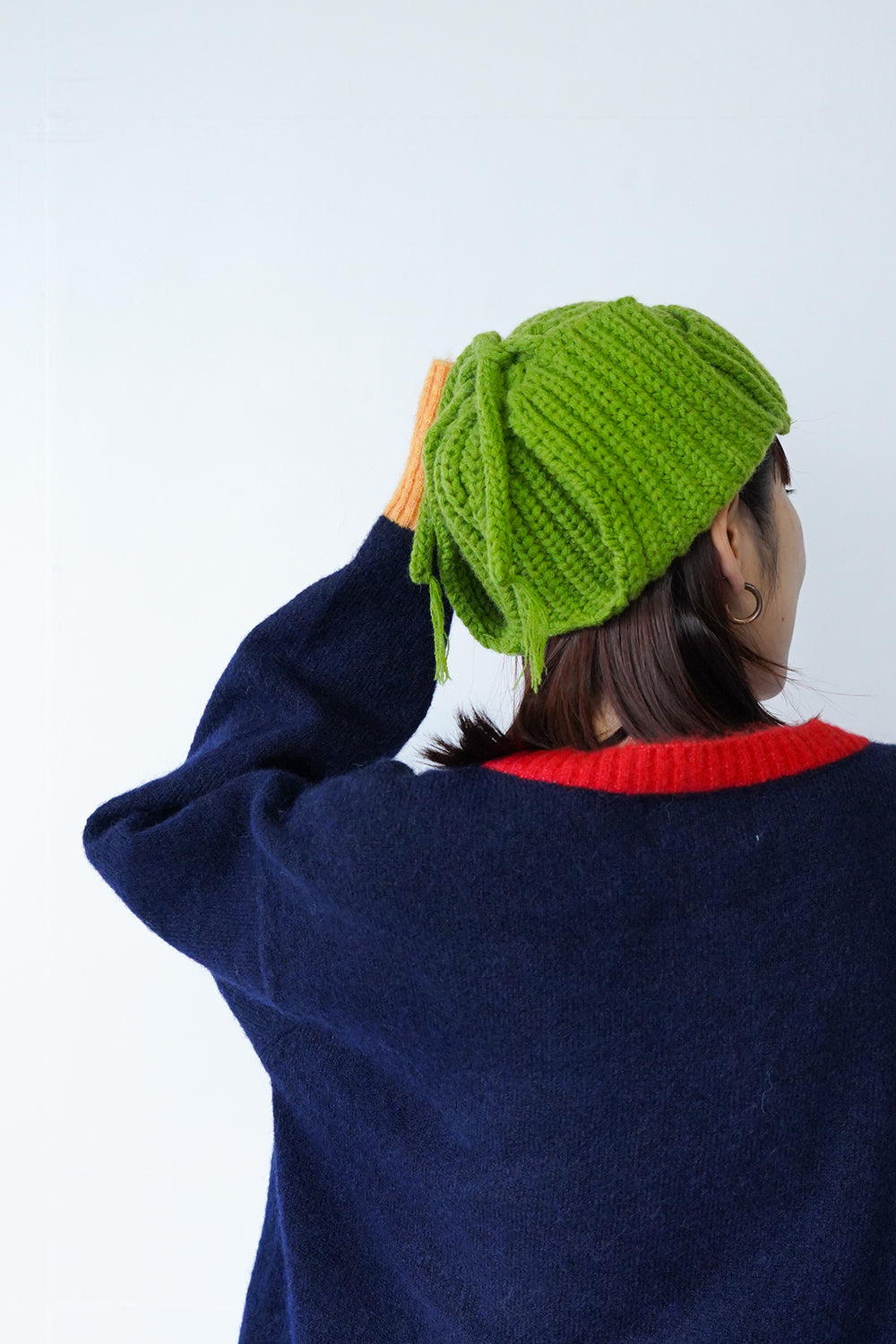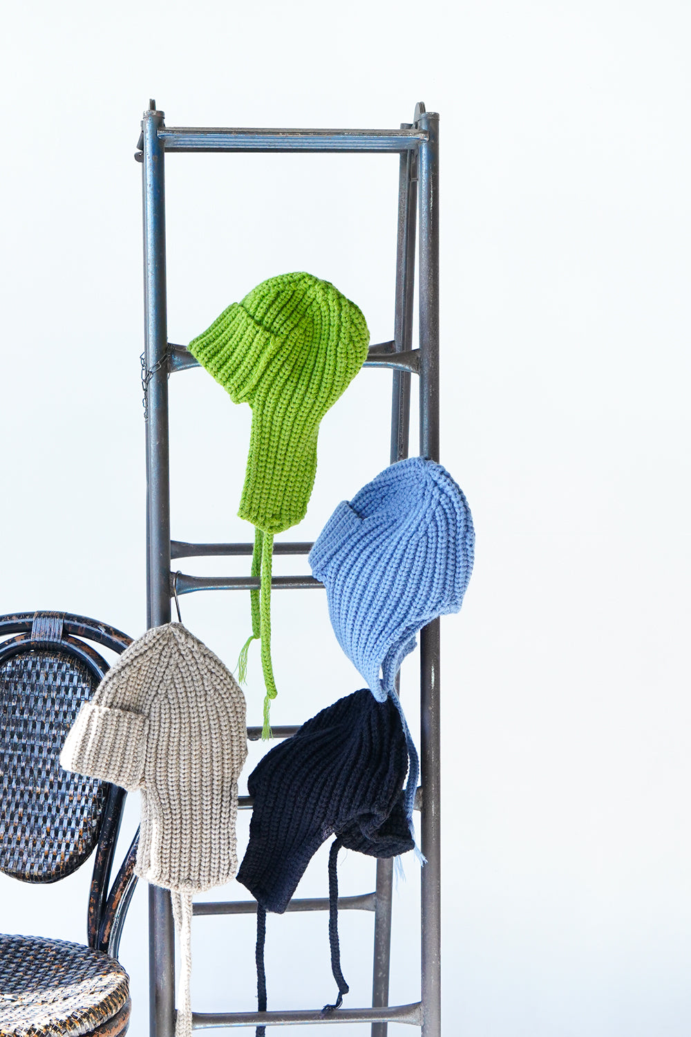 コンパクトなサイズ感がかわいい耳当て付きニット帽。上で結んだ状態だとスッキリとまとまり、フラップを降ろして着用すれば耳周りも暖かく防寒対策にも◎シンプルなデザインなので多彩なスタイリングにもマッチしてくれます。ベーシックに使いやすい2色とポップなカラー2色展開をセレクトしました。紐先の糸がさりげないポイント。