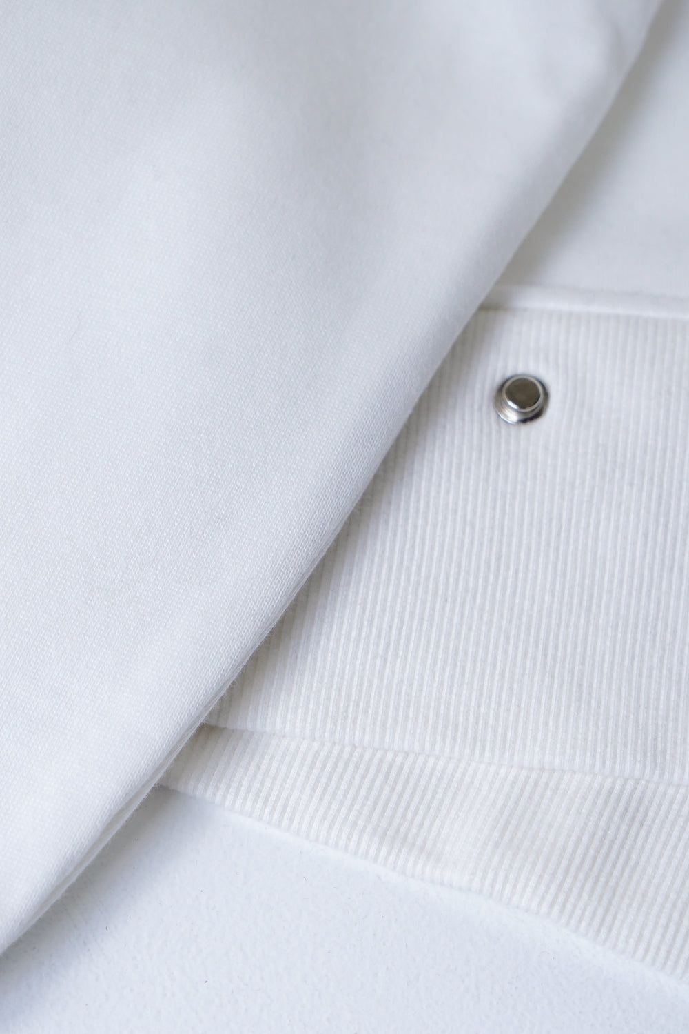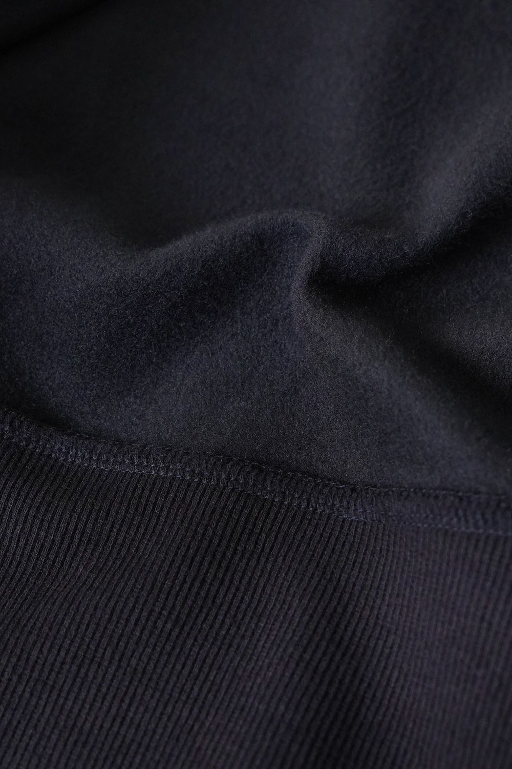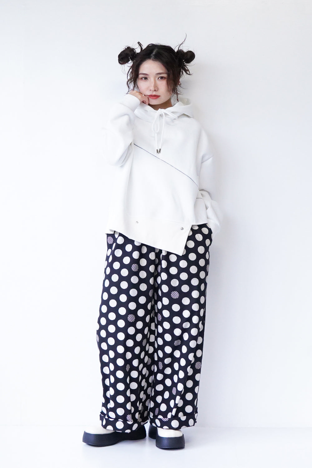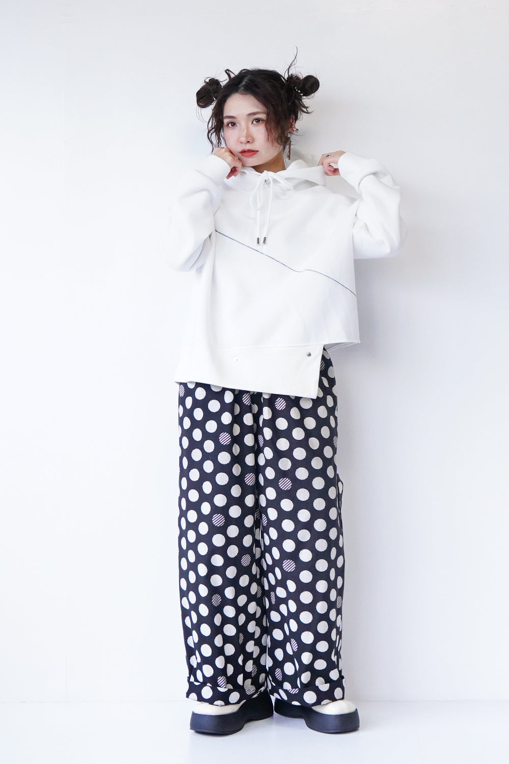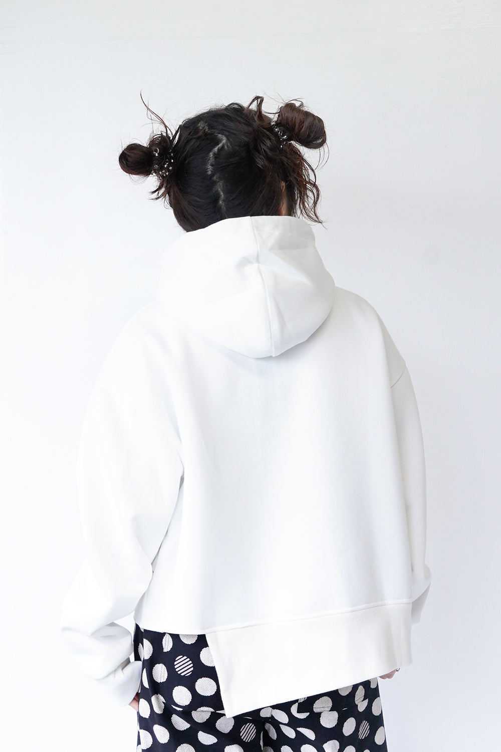 ステッチデザインがモードな印象の裏起毛パーカ。サイズ感はゆったりとしていて裏起毛仕様でとても暖かくておすすめ。裾の大きなリブとスタッズボタンがアクセントに。アンバランスな丈感も遊び心が詰まった1枚。