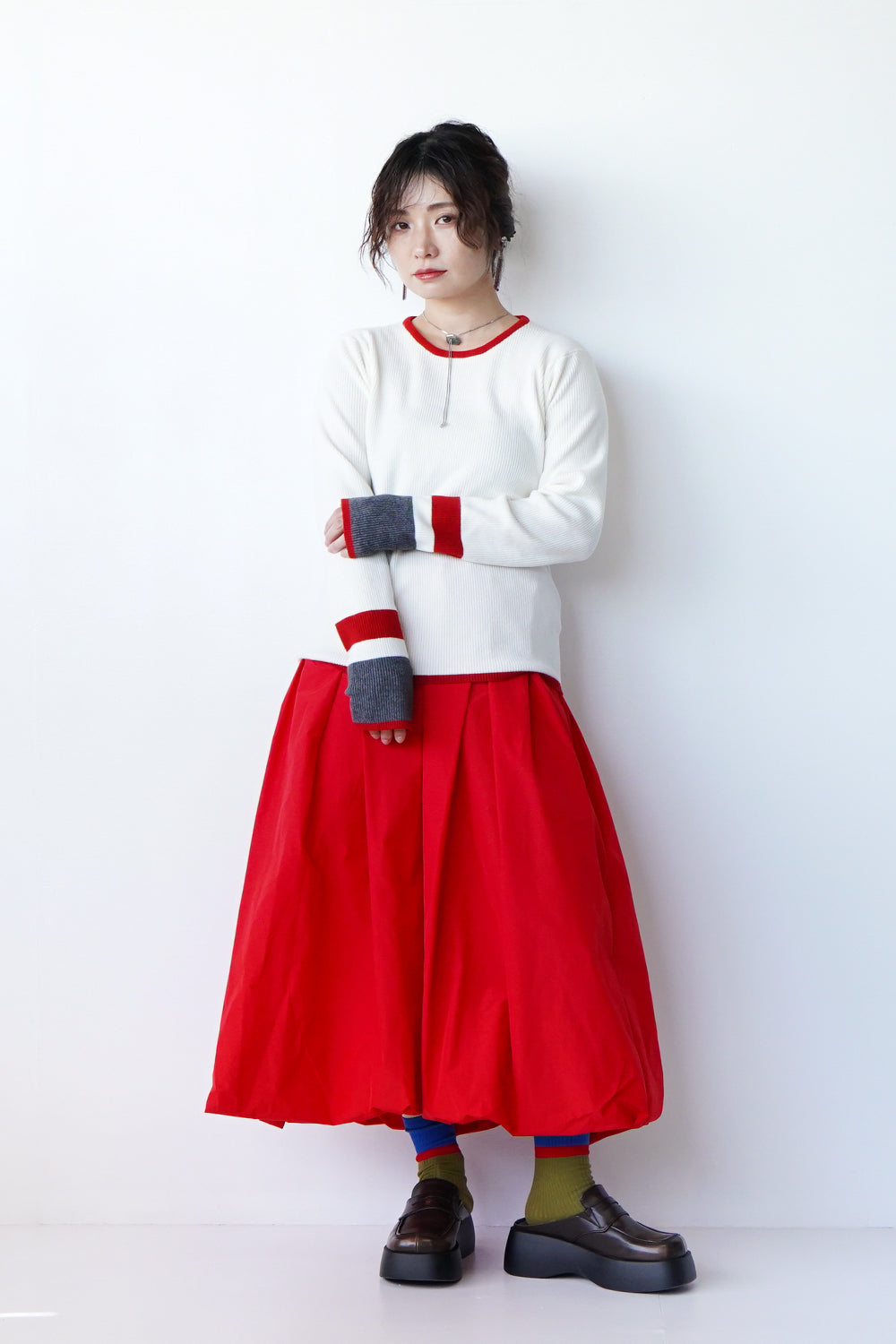 ふんわりとしたシルエットが魅力のバルーンスカート。ナイロンに近いハリ感のあるポリエステル素材を使用し、立体的なフォルムをキープしながらも軽やかな着心地が◎ウエストはゴム仕様でストレスフリーに着用可能。合わせるトップス次第でカジュアルからモードまで幅広いスタイリングが楽しめます。裏地にはメッシュ素材を取り入れ動いた時も美しいボリューム感を演出。