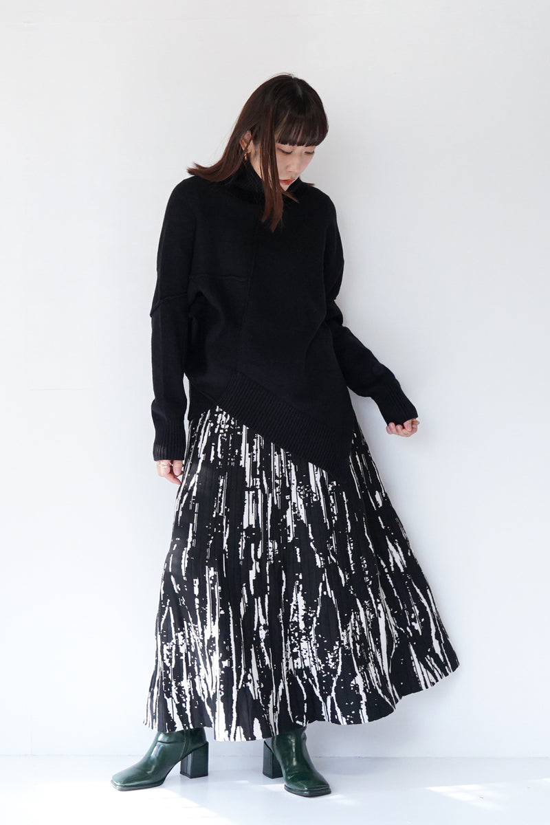 【MICALLE MICALLE】ストライプ×無地 異素材切替スカート