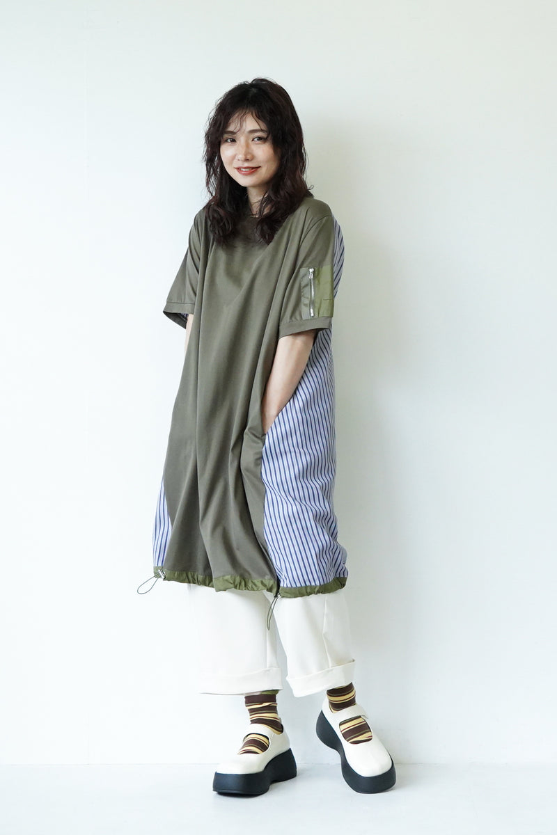 【MICALLE MICALLE】ドット織裾ドロストドルマンシャツ