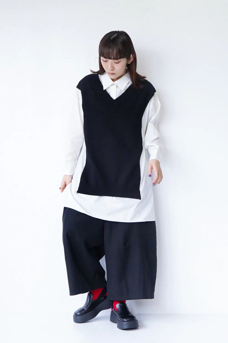 【MICALLE MICALLE】ニットベストドッキングチュニックシャツ