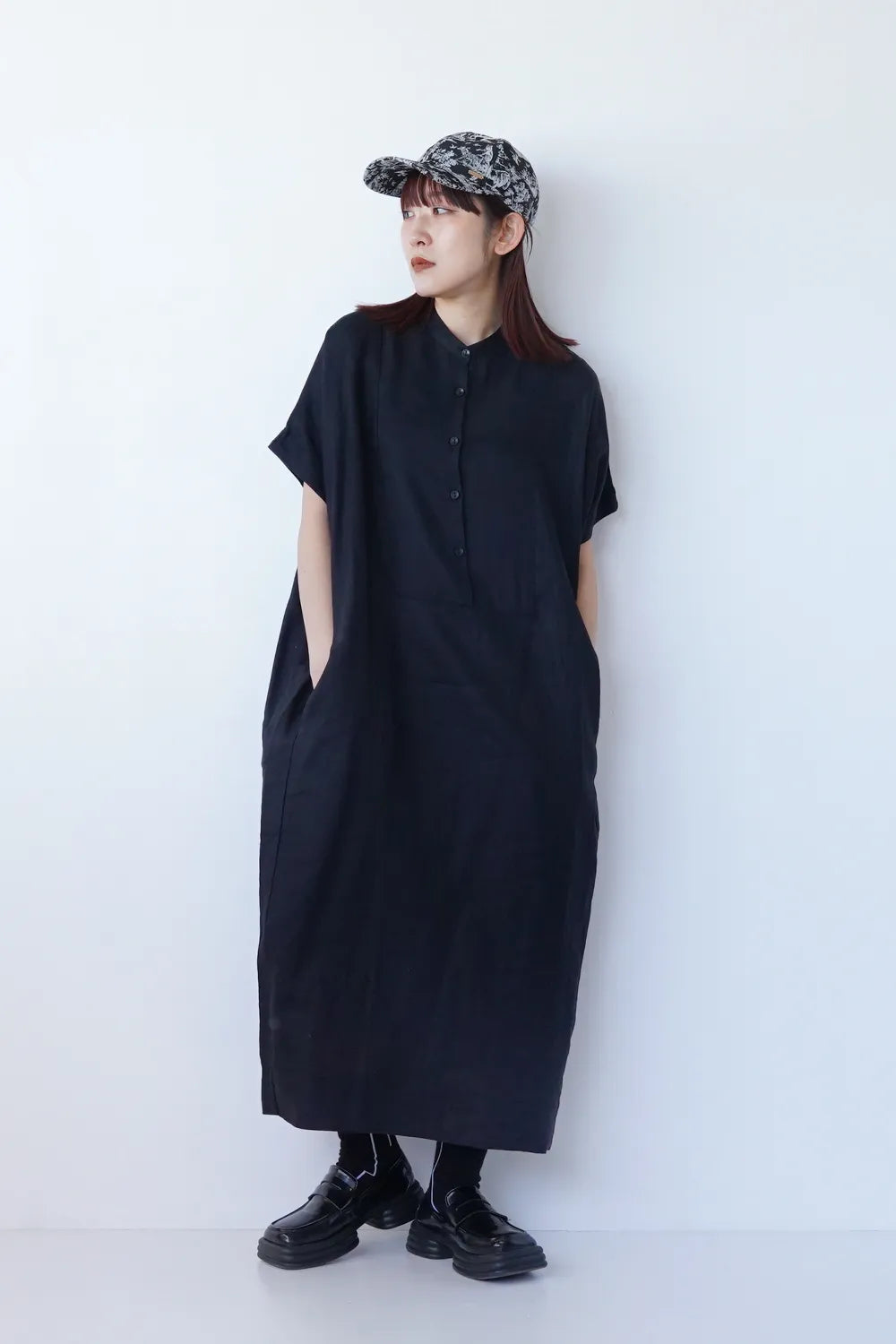 リネン×レーヨン ヨーク切替ワイドワンピース