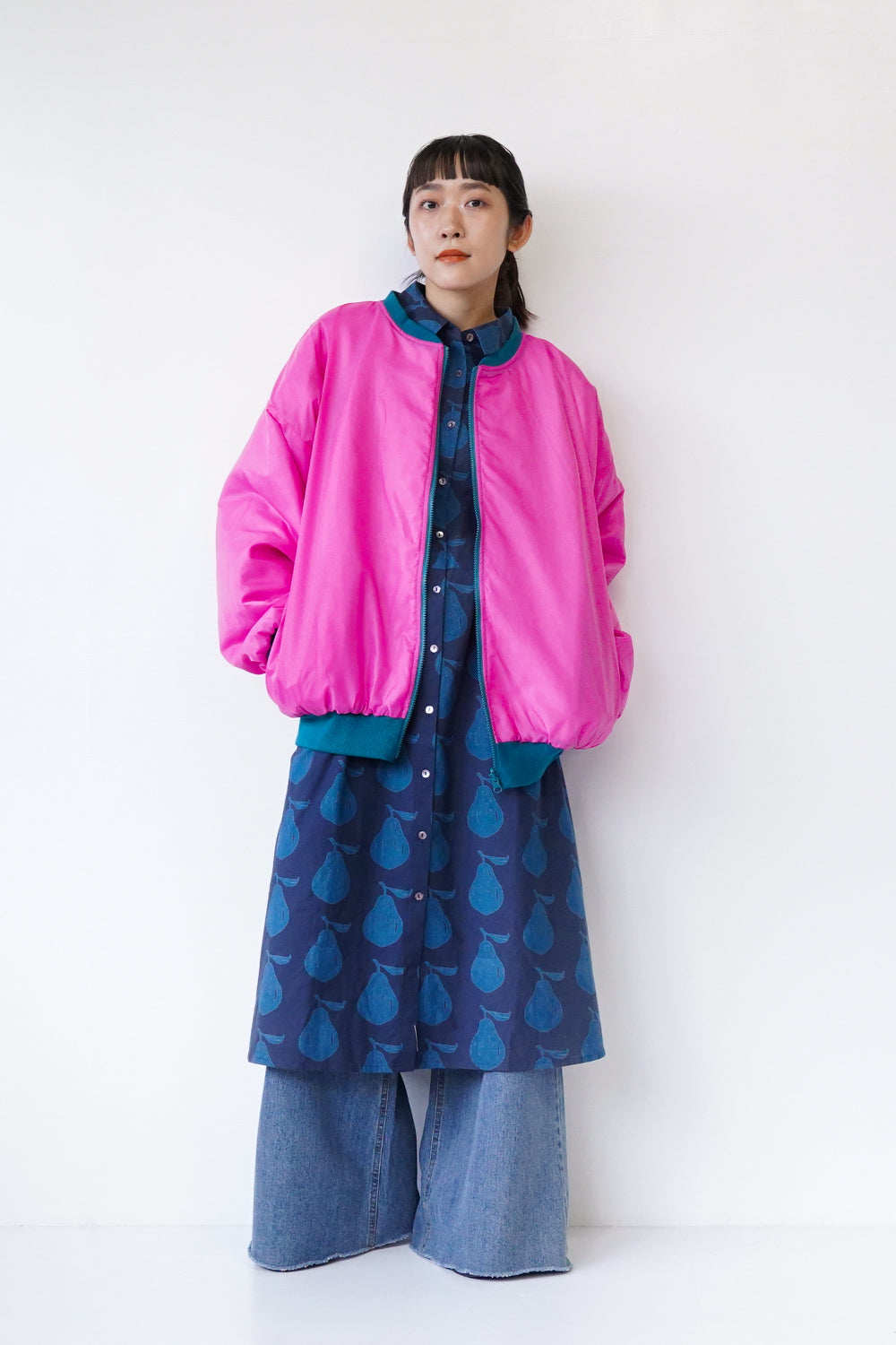 大胆なラフランス柄が印象的なシャツワンピース。やや起毛のある柔らかなネル素材で温かみのある素材感。ふんわりと広がるフレアシルエットときちんと感のあるシャツカラーのバランスが◎軽い羽織りにも活躍できる1枚です。