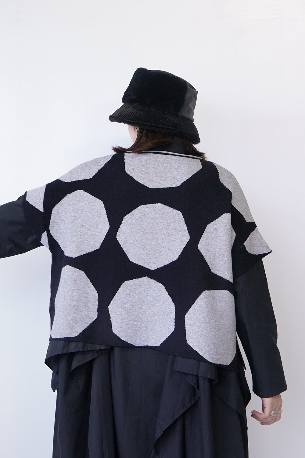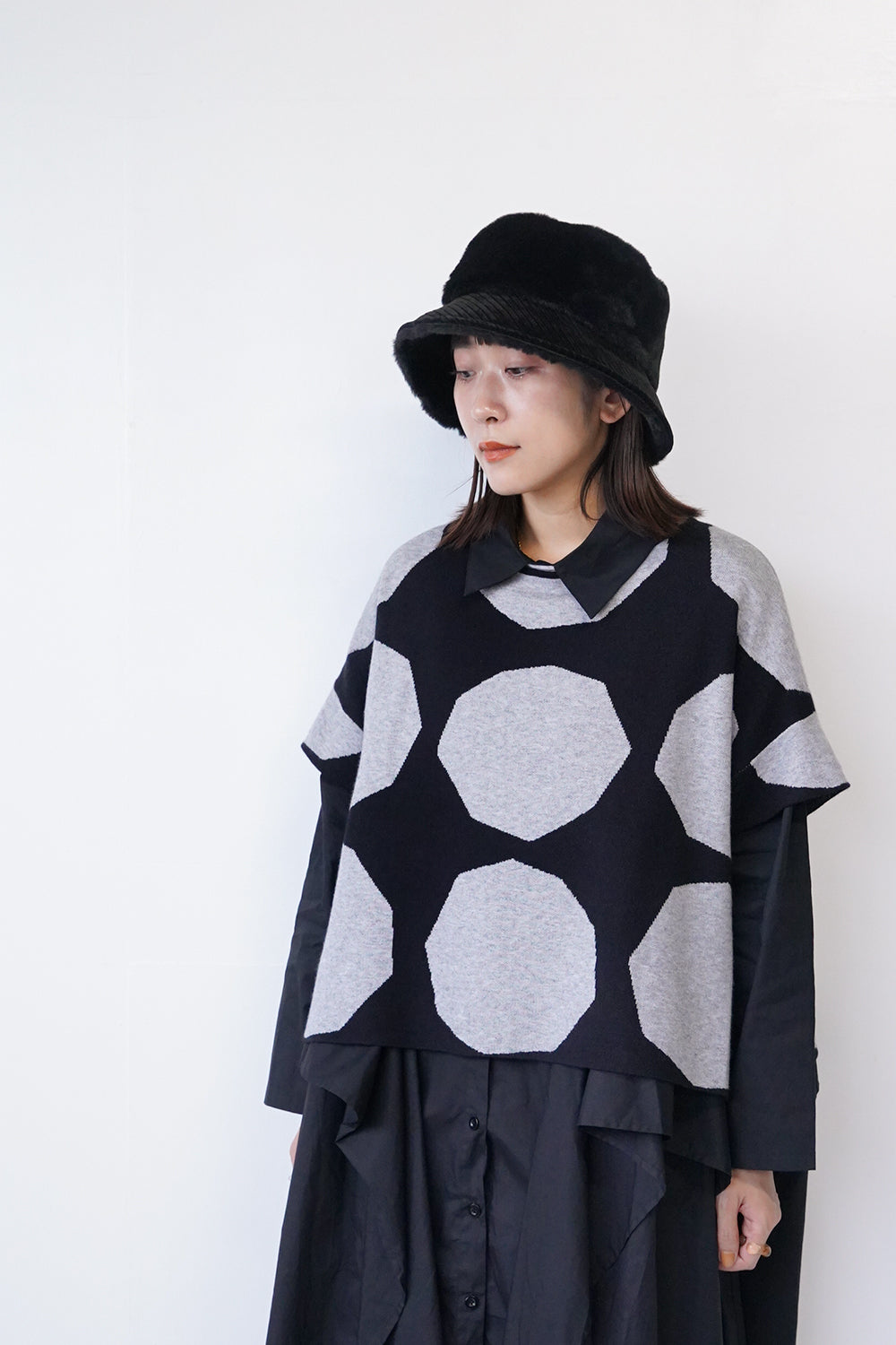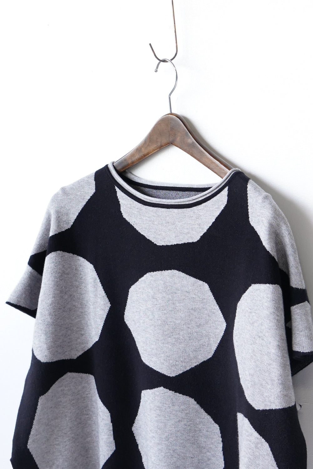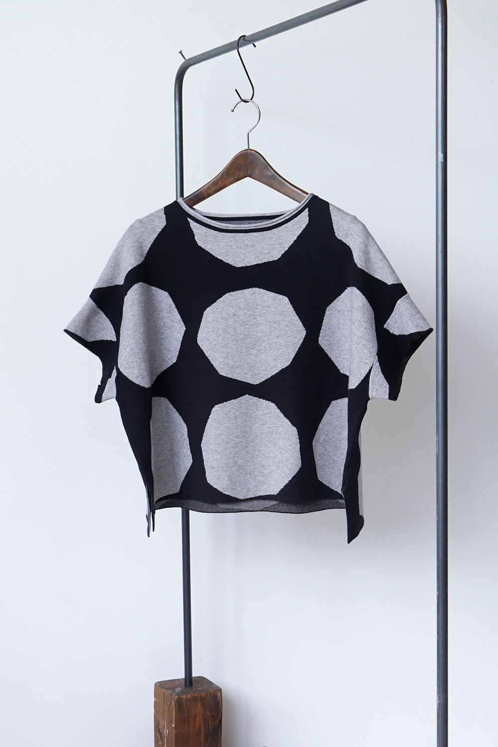 大きなドットが印象的なプルオーバー。もちっとしたニット地で柔らかくストレッチ性のある素材感。サイドのスリットデザインもポイント。1枚でももちろんシャツなどをレイヤードしたスタイリングもおすすめな1枚です。
