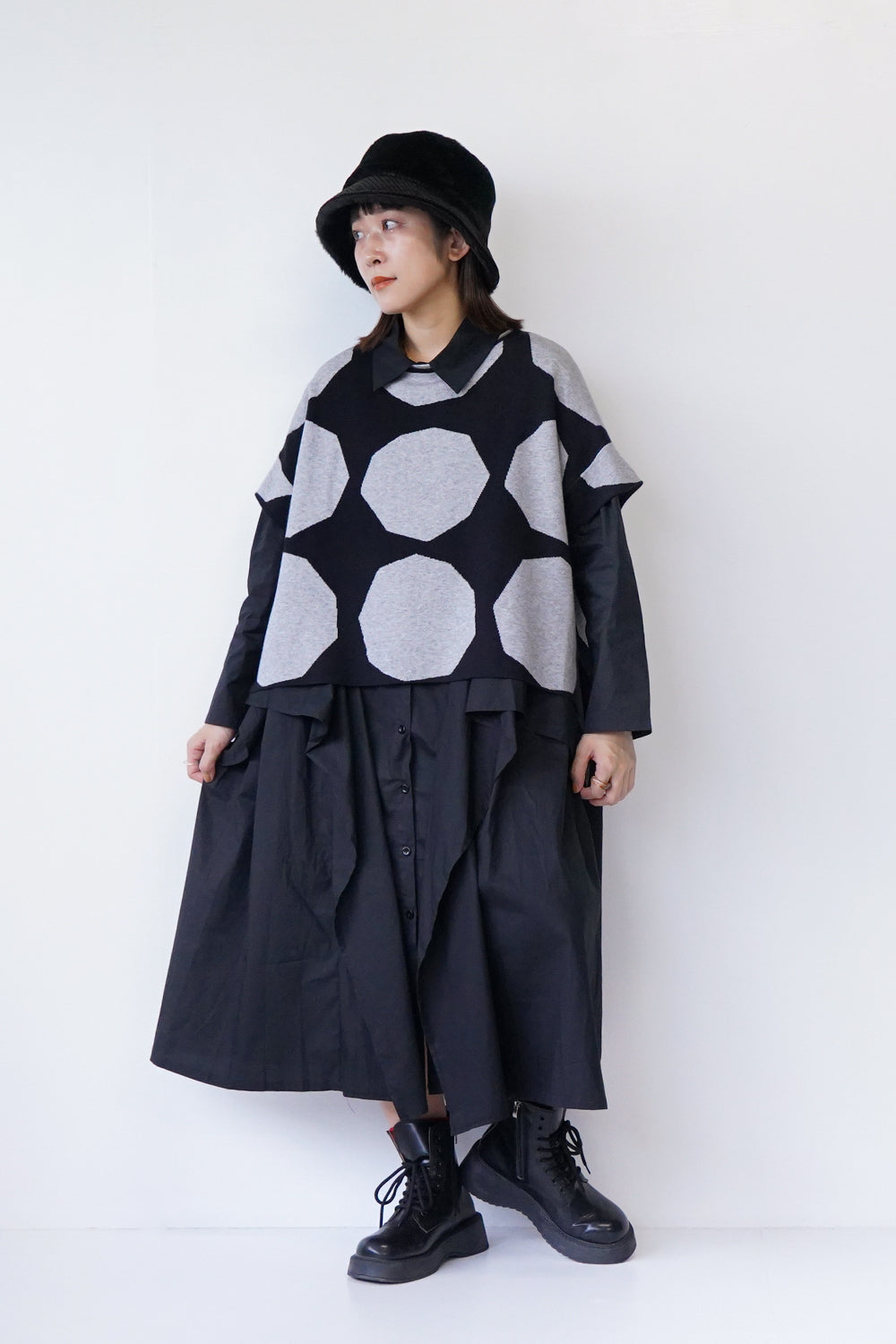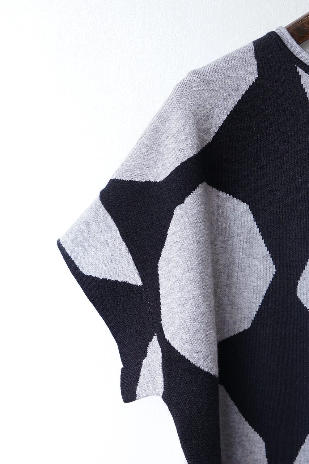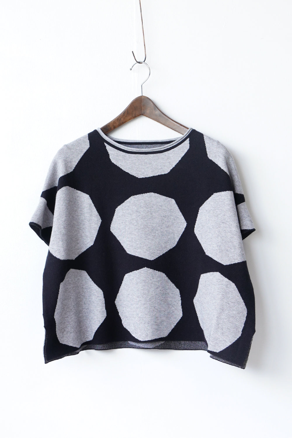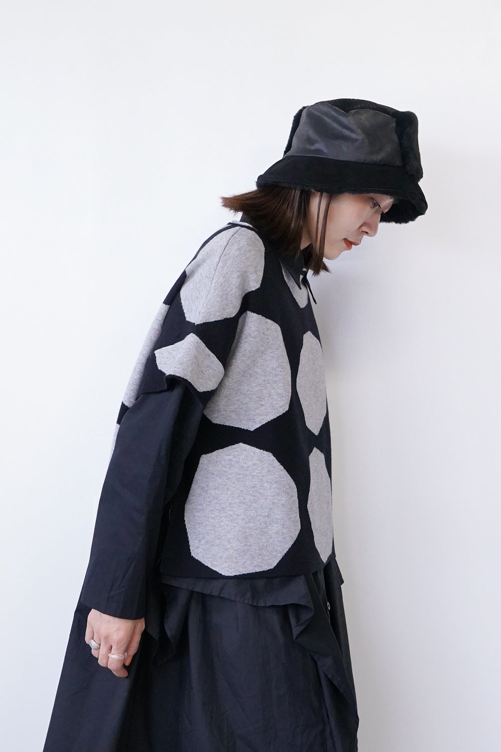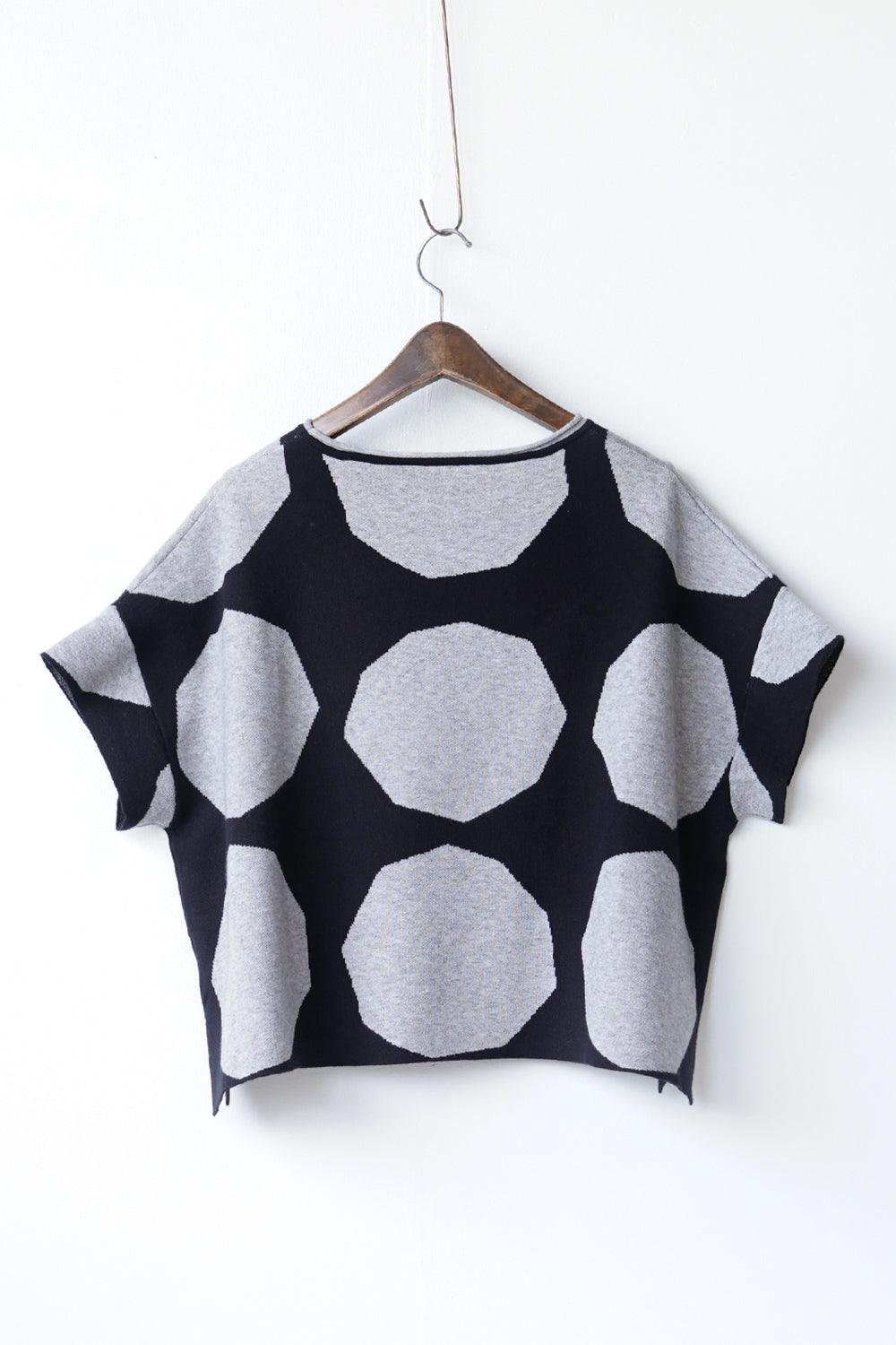大きなドットが印象的なプルオーバー。もちっとしたニット地で柔らかくストレッチ性のある素材感。サイドのスリットデザインもポイント。1枚でももちろんシャツなどをレイヤードしたスタイリングもおすすめな1枚です。