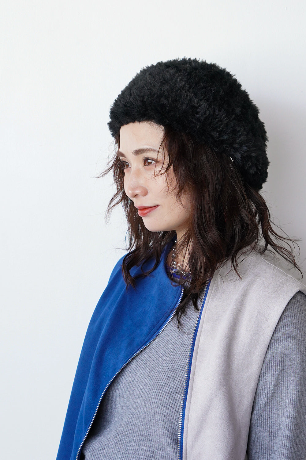 ふわっと柔らかい質感のファーベレー帽。頭回りはフィット感のあるサイズですがルーズなシルエットが特徴的。スタイリングに取り入れるだけで季節感を高めてくれるおすすめのアイテム。