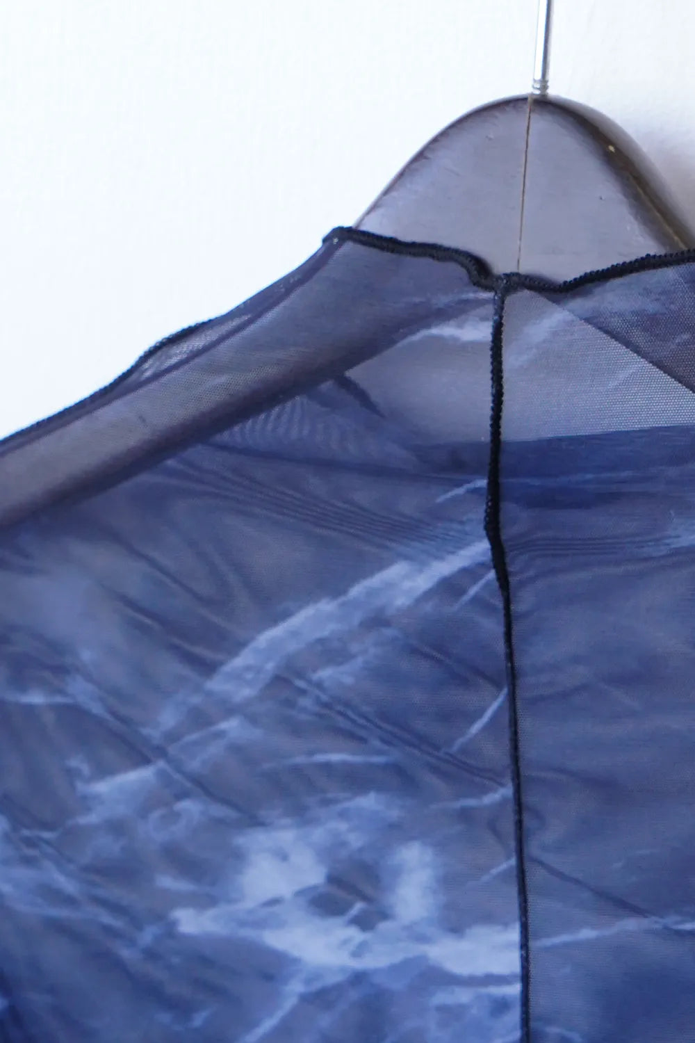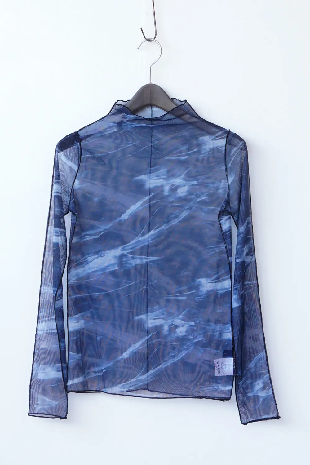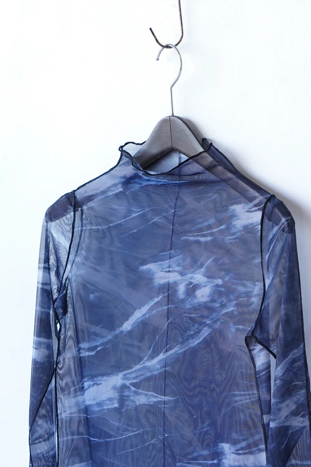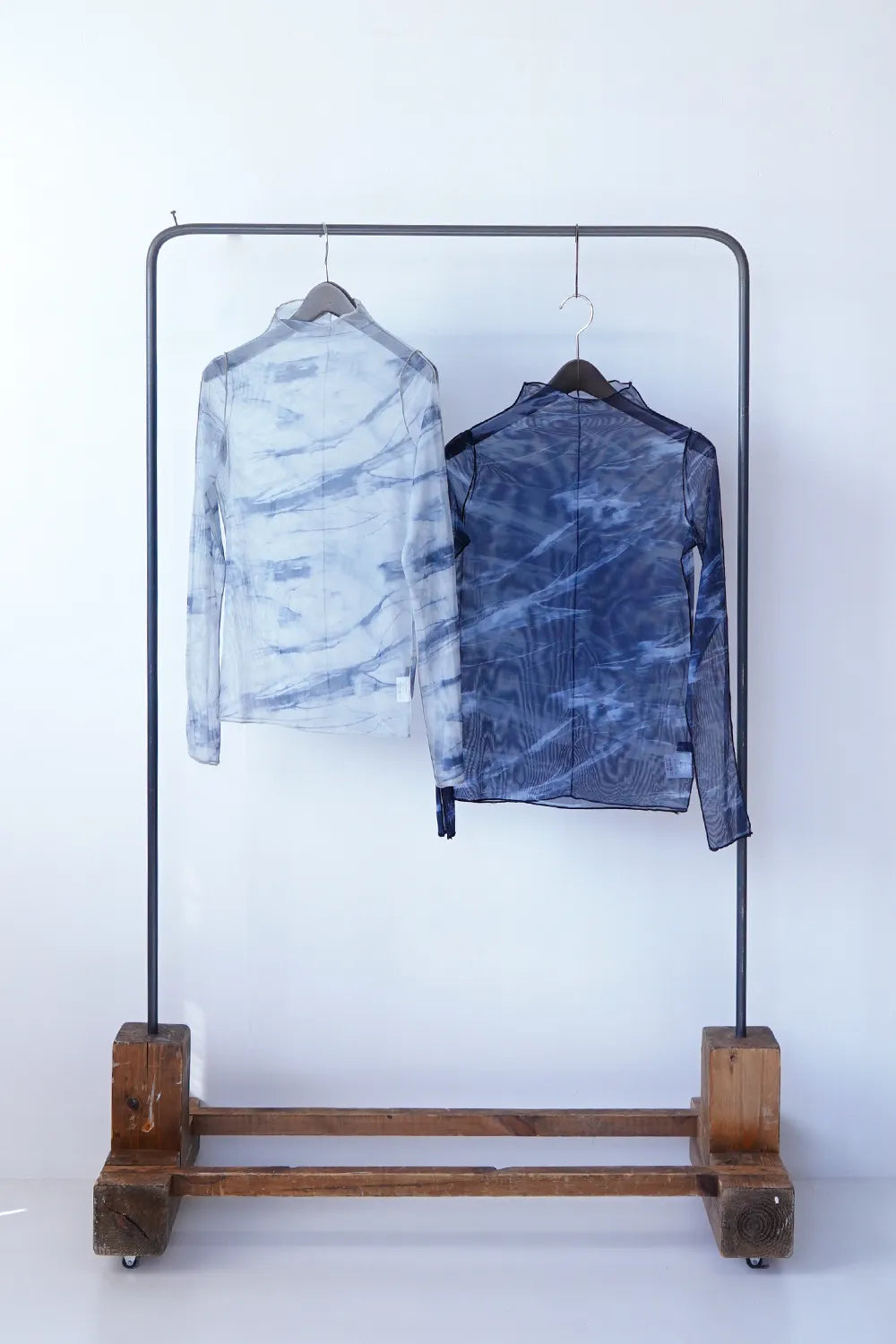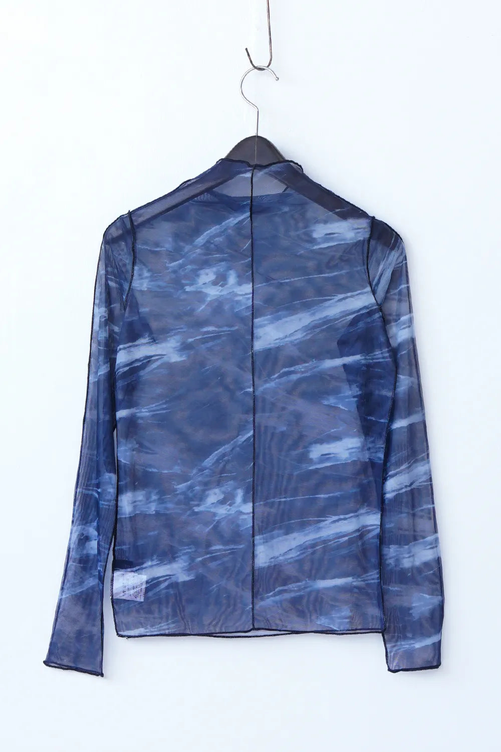 程よいハイネックが大人かっこいいアート柄のシアートップス。トレンド感のあるシアー素材を使用した程よい透け感がポイント。メイン使いでも、サロペットやワンピースのインナーとしてのレイヤードアイテムとしても使いやすい1枚です。着回しが効くのでロングシーズン活躍するおすすめアイテムです。