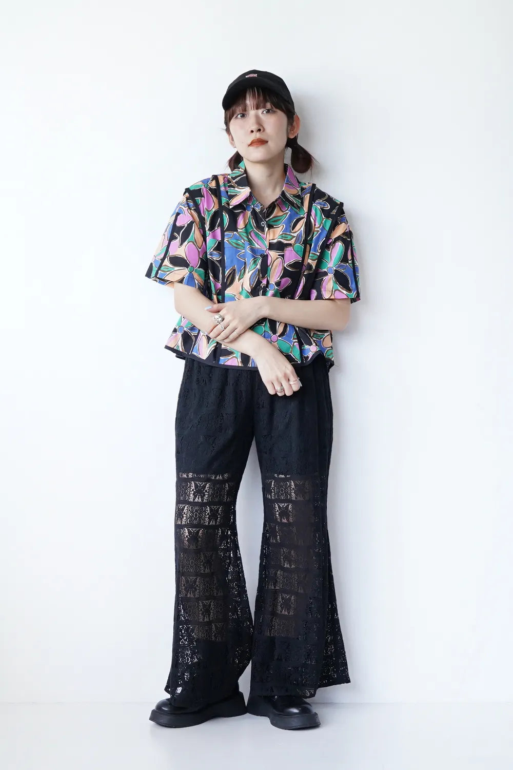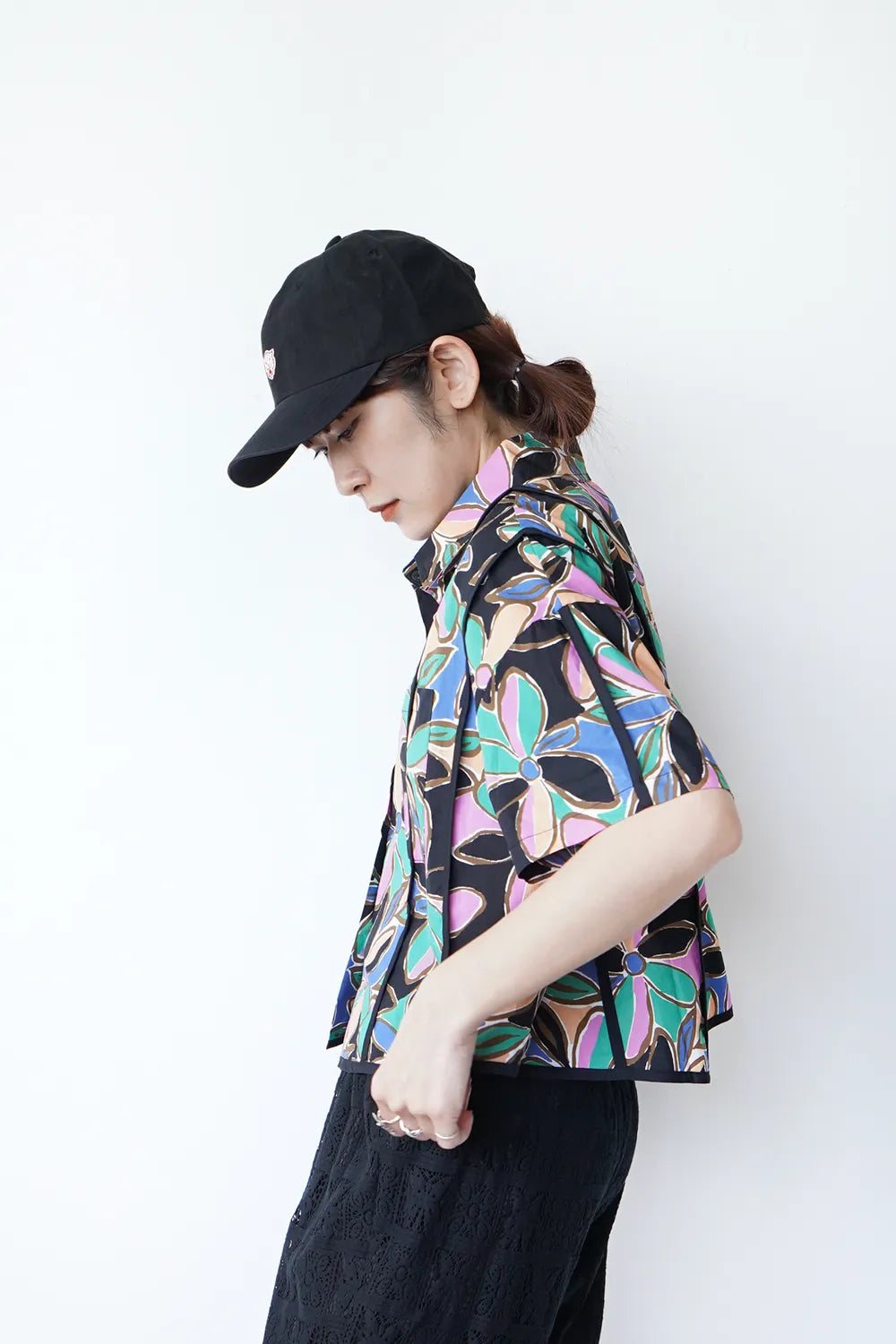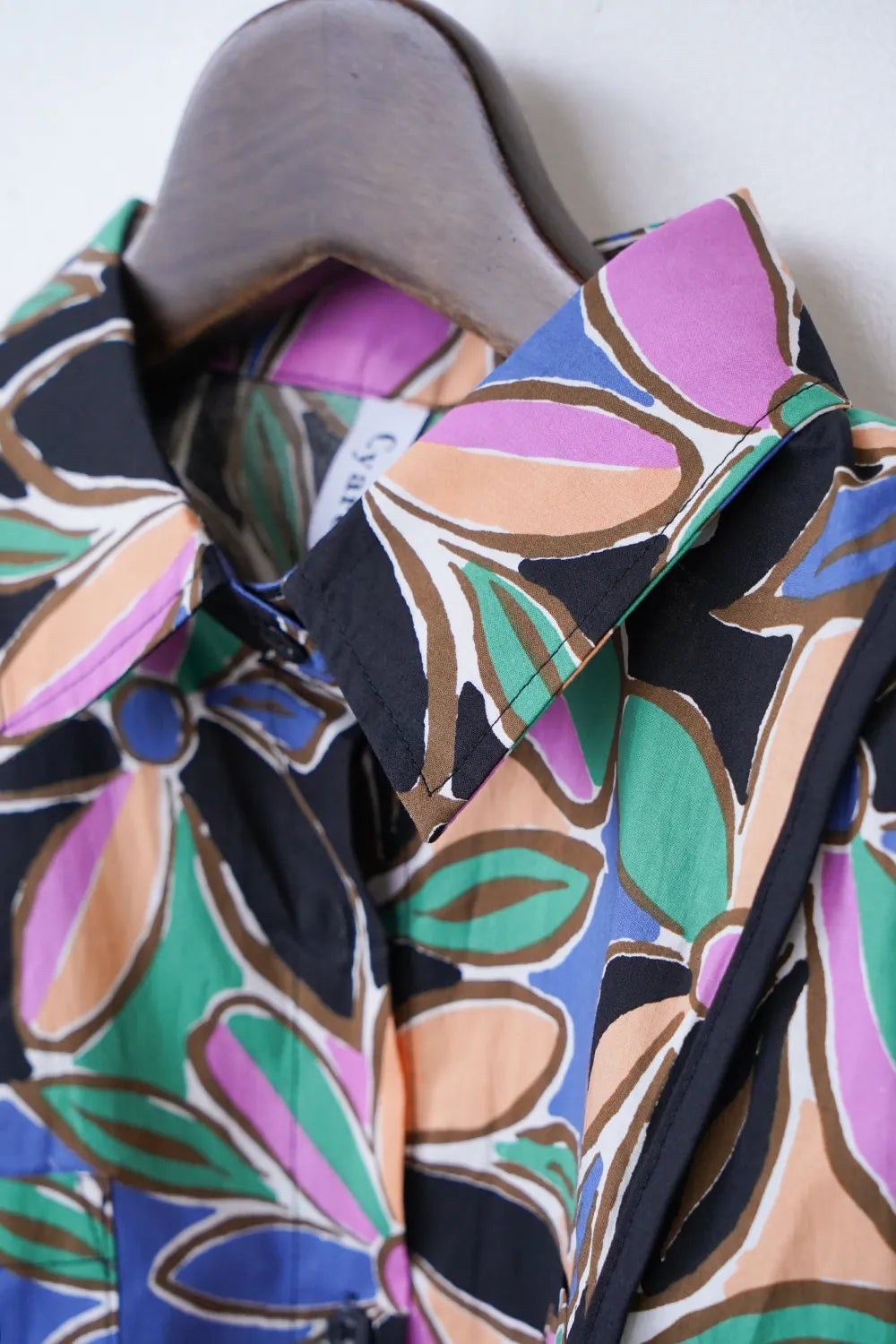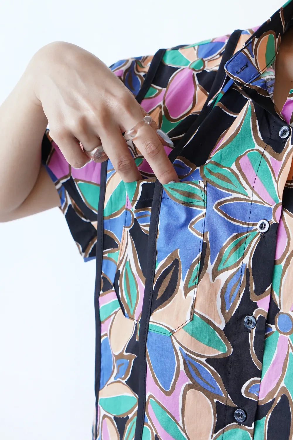 レトロなフラワープリントが印象的なショートシャツ。 たっぷりな身幅に短め丈のバランスが◎コットン100%の春夏に最適な素材感でさらっと薄手の生地を使用。 パイピングデザインもさりげないポイント。 コーデの主役になるアイテムです。