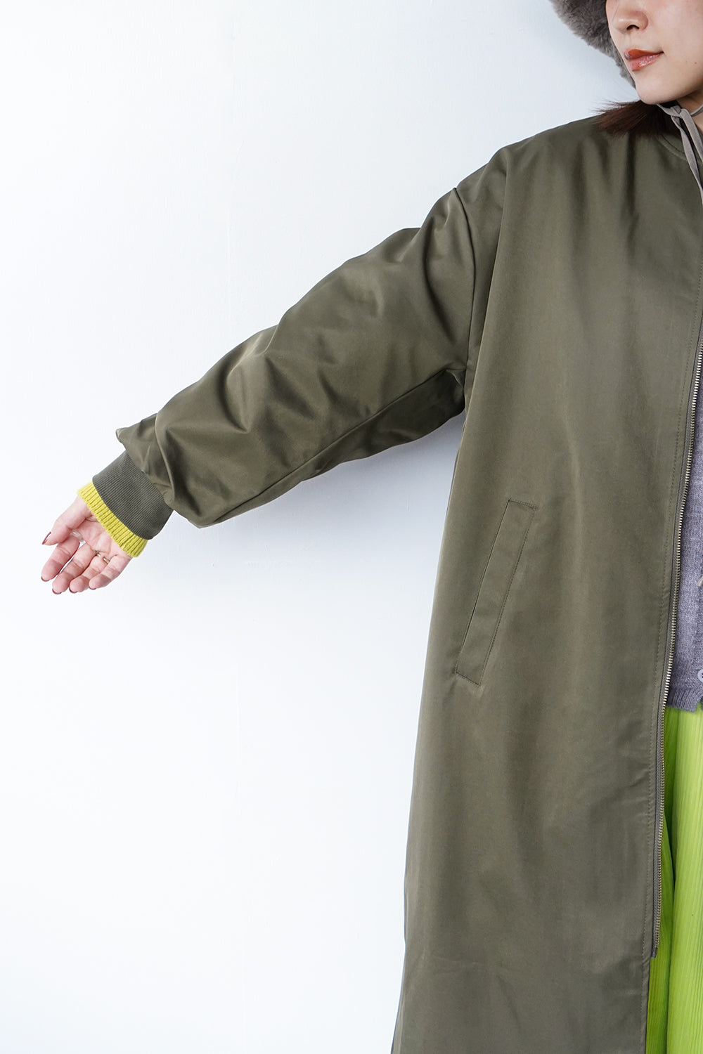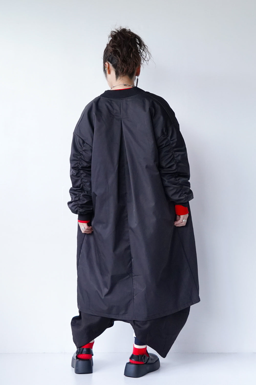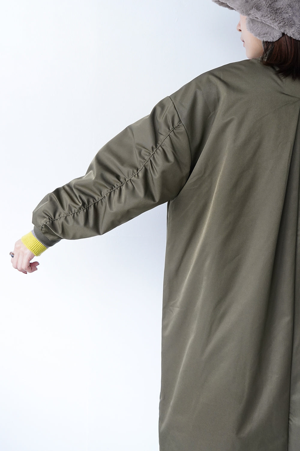 ギャザースリーブロングブルゾン