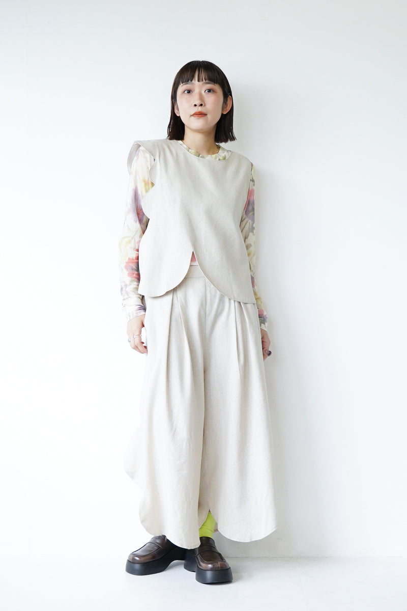 アシメスカラップ麻混ベスト