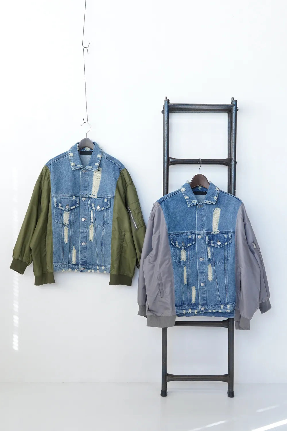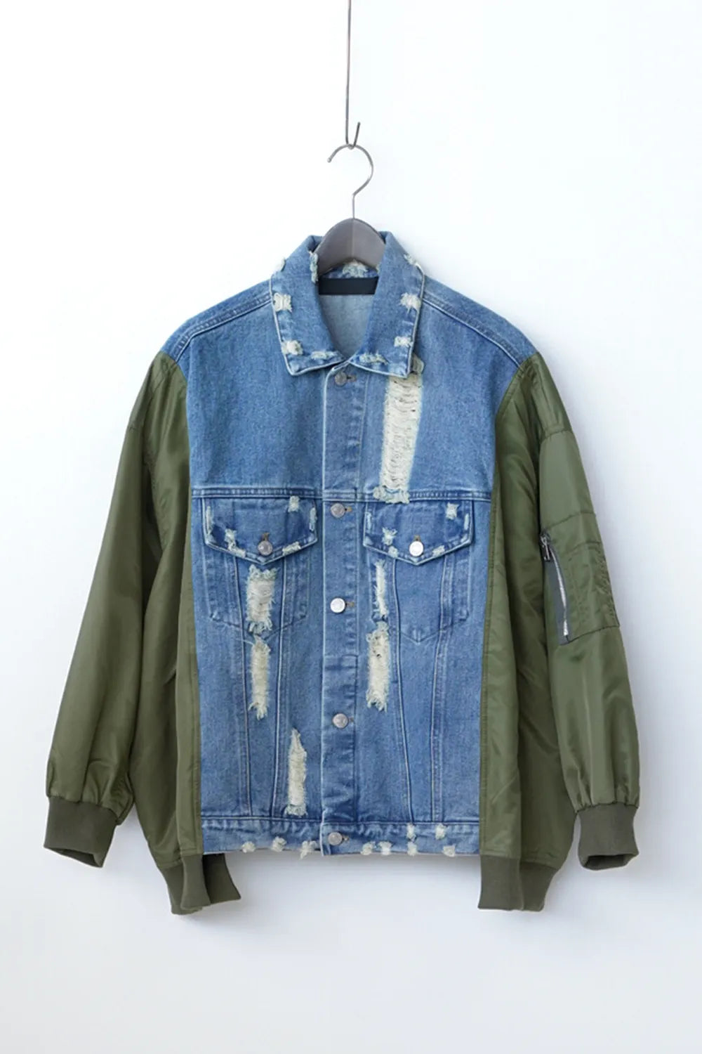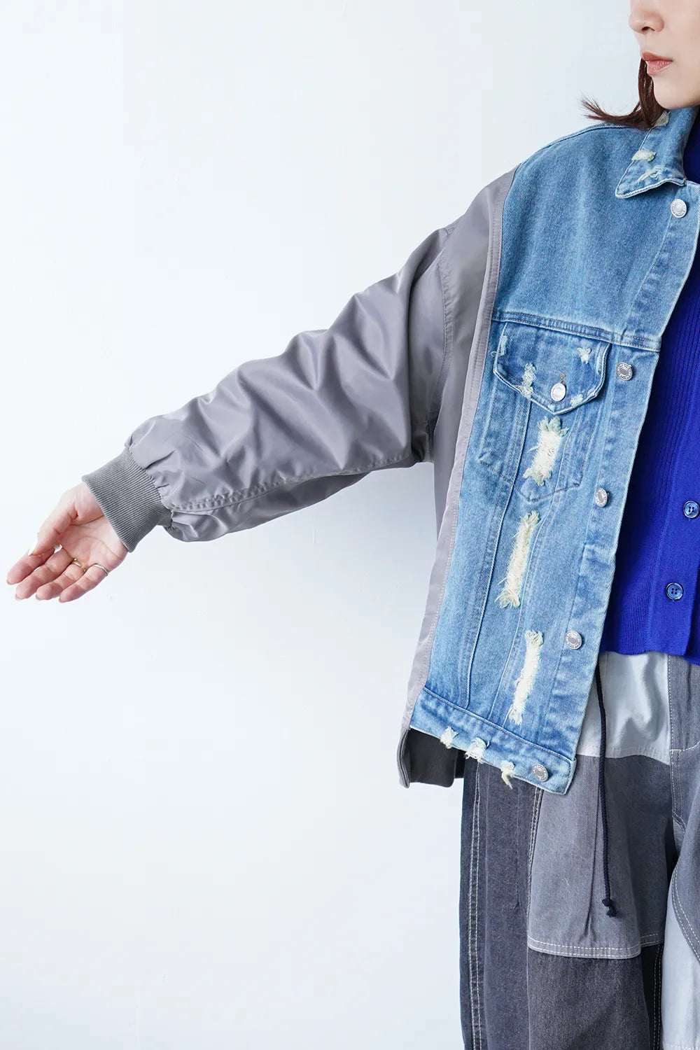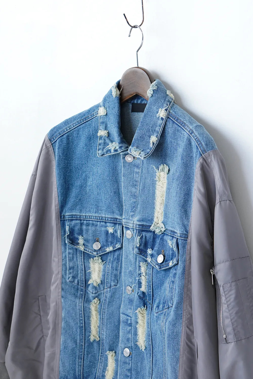 【MICALLE MICALLE】ダメージデニム×ナイロンドッキングブルゾン