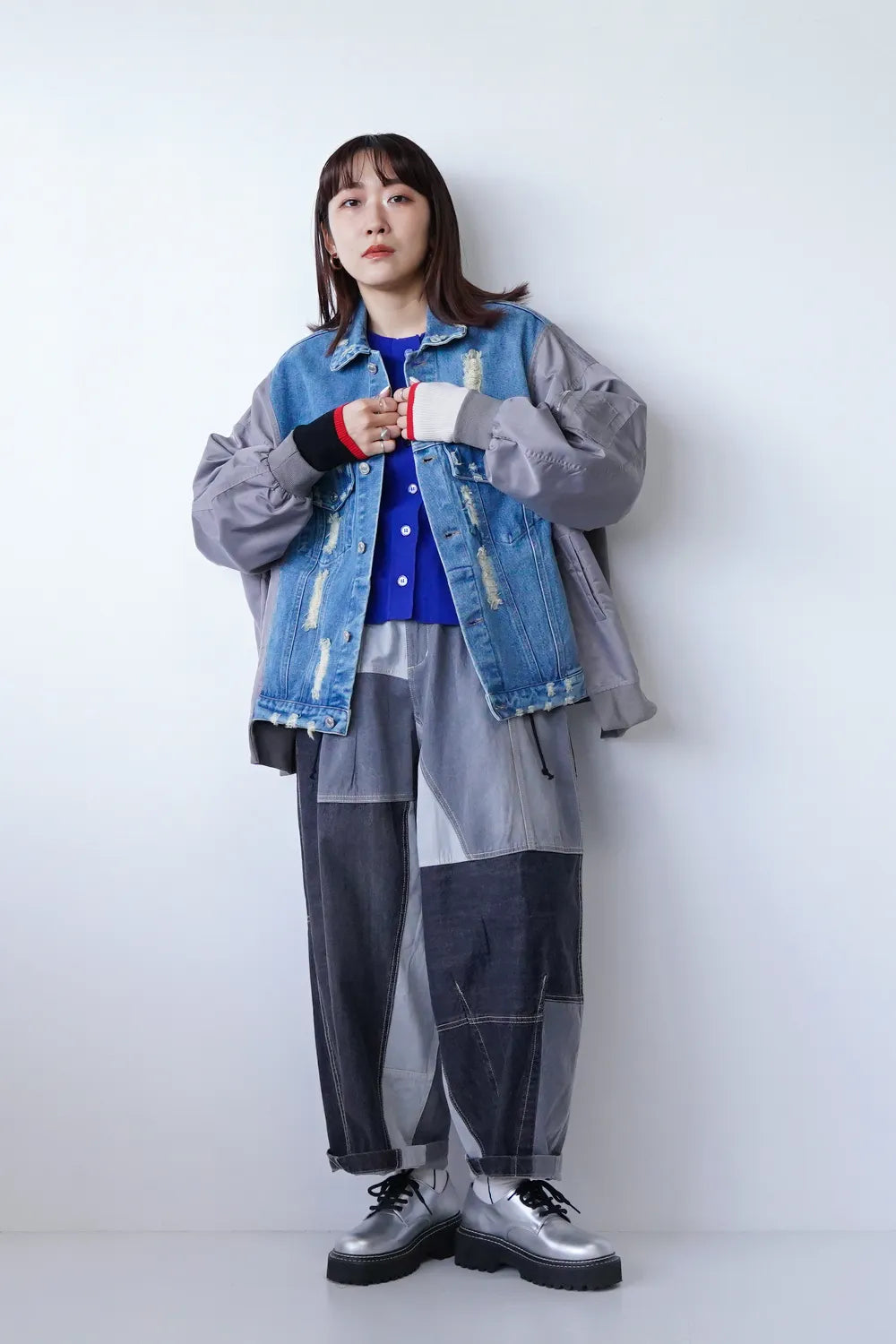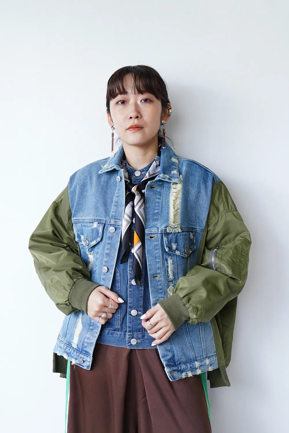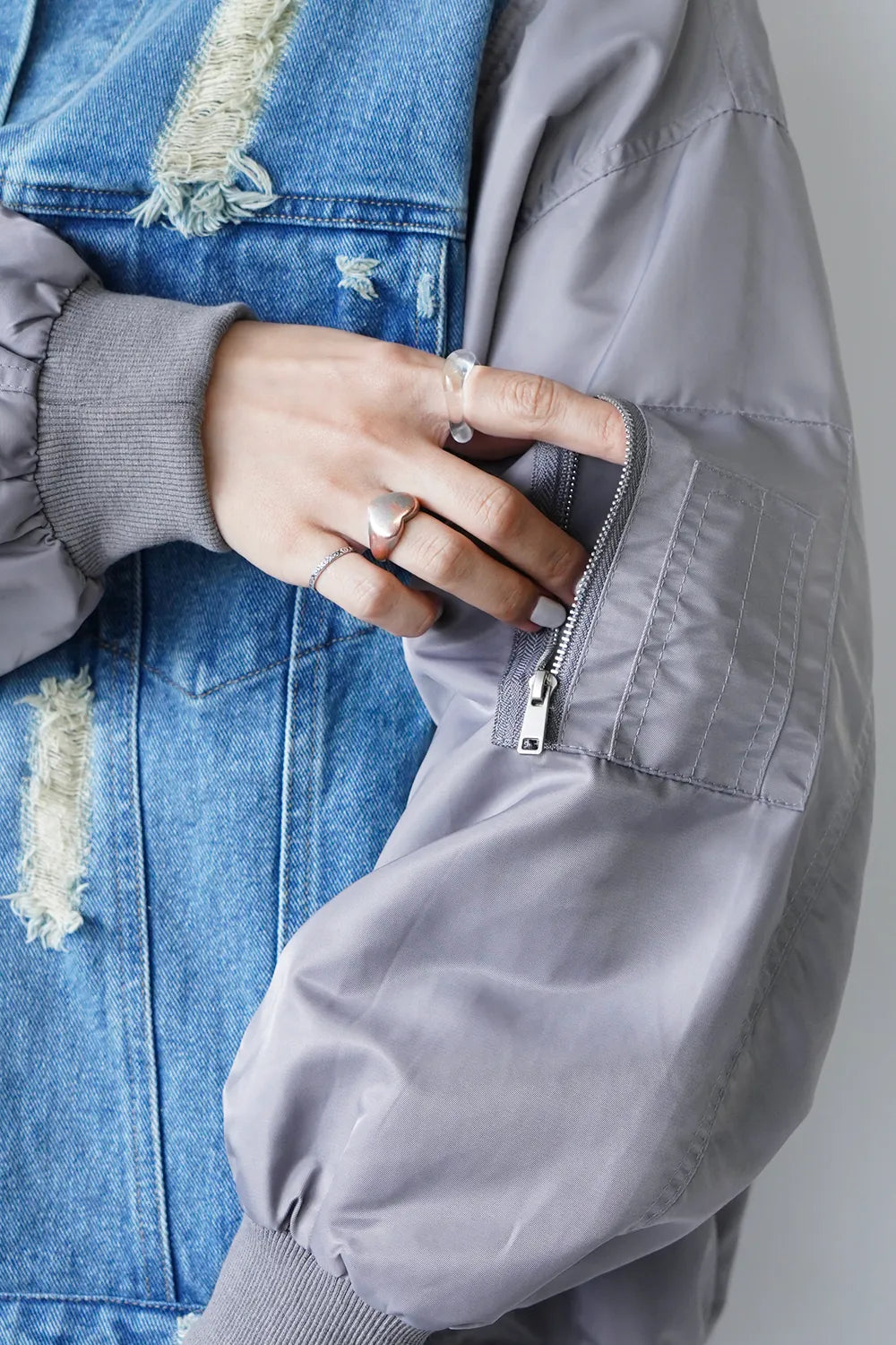【MICALLE MICALLE】ダメージデニム×ナイロンドッキングブルゾン