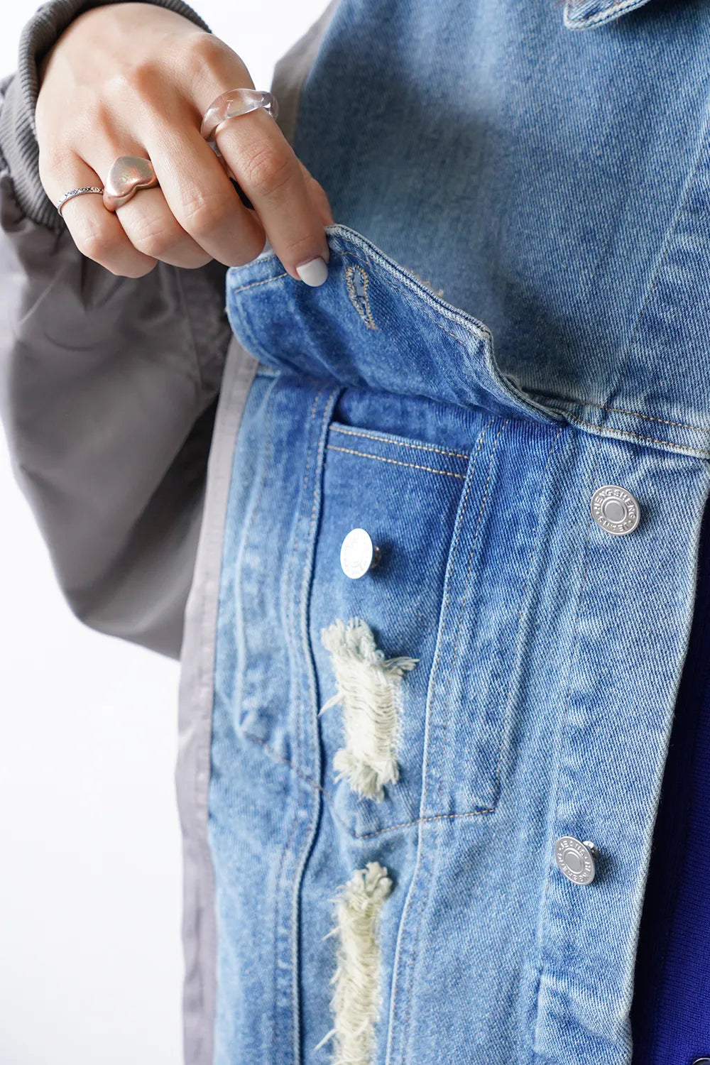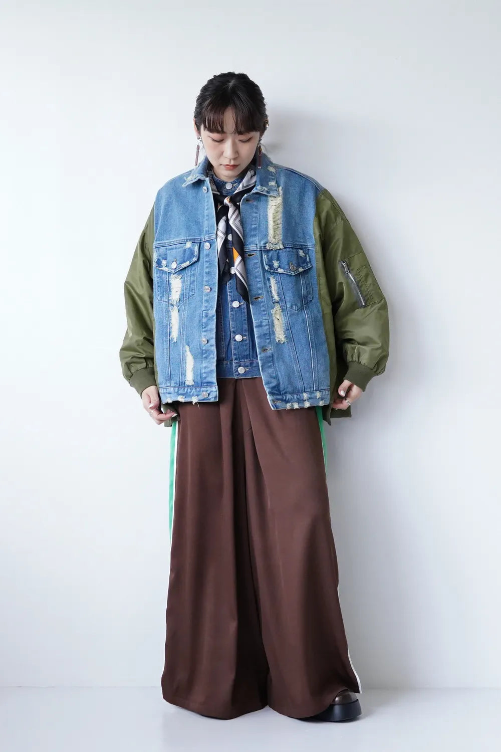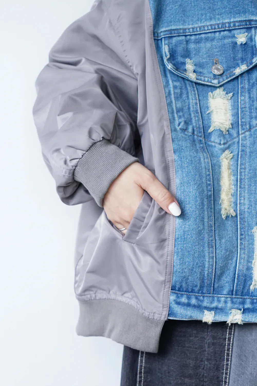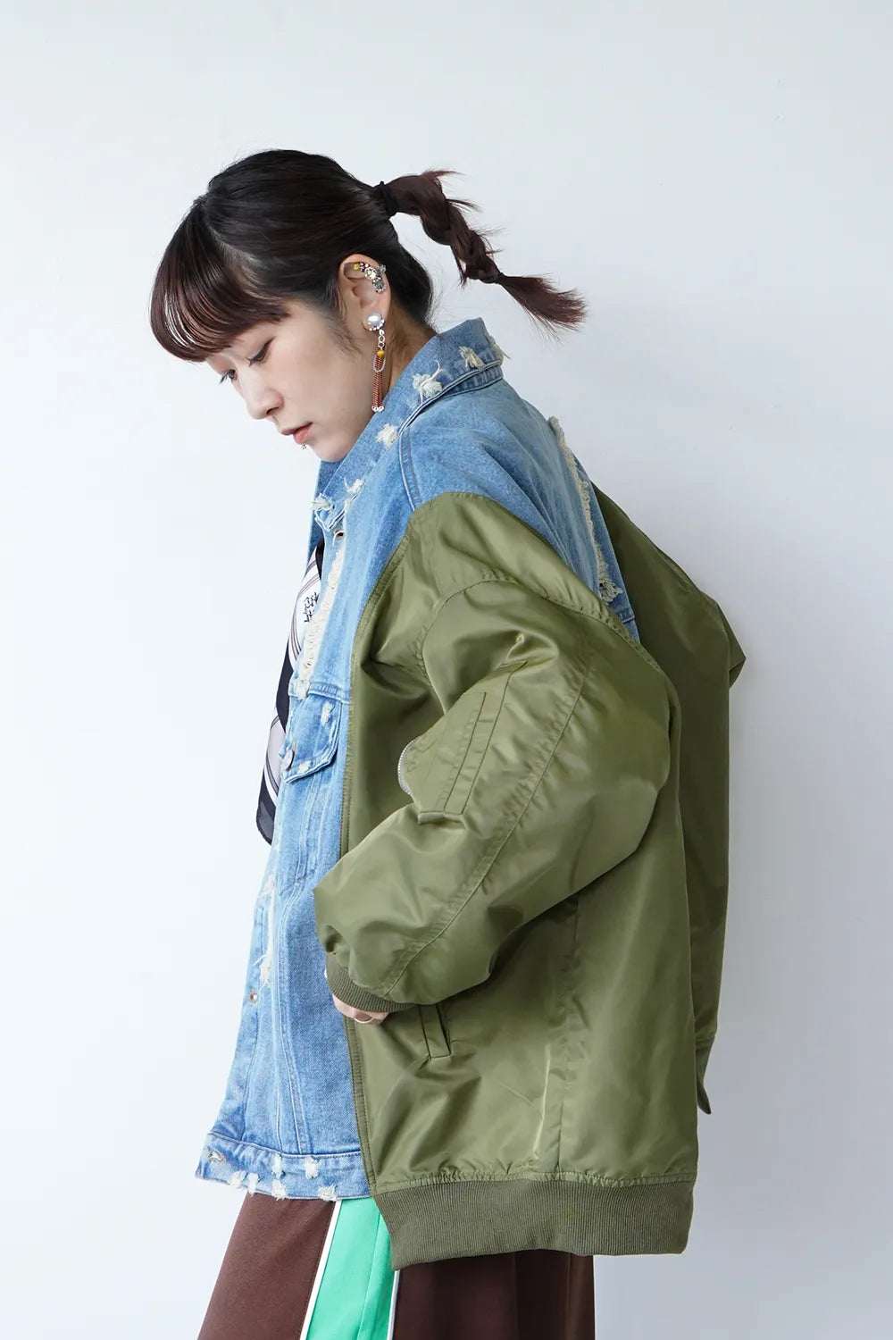 【MICALLE MICALLE】ダメージデニム×ナイロンドッキングブルゾン