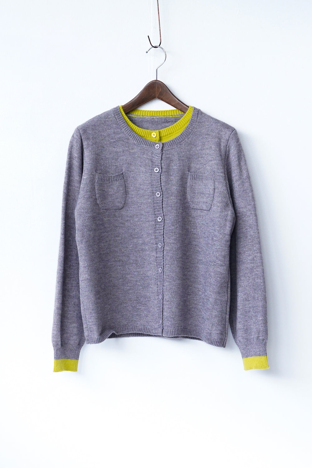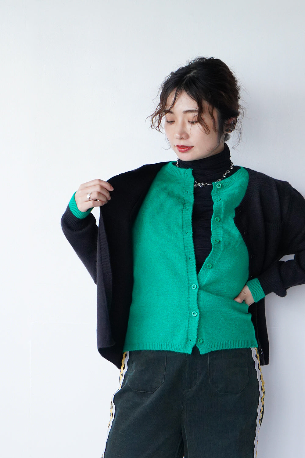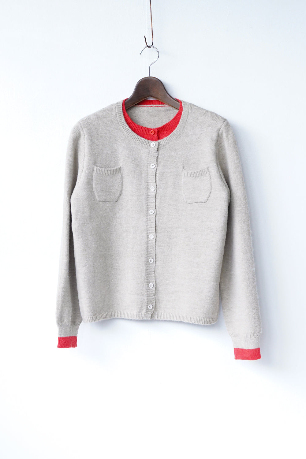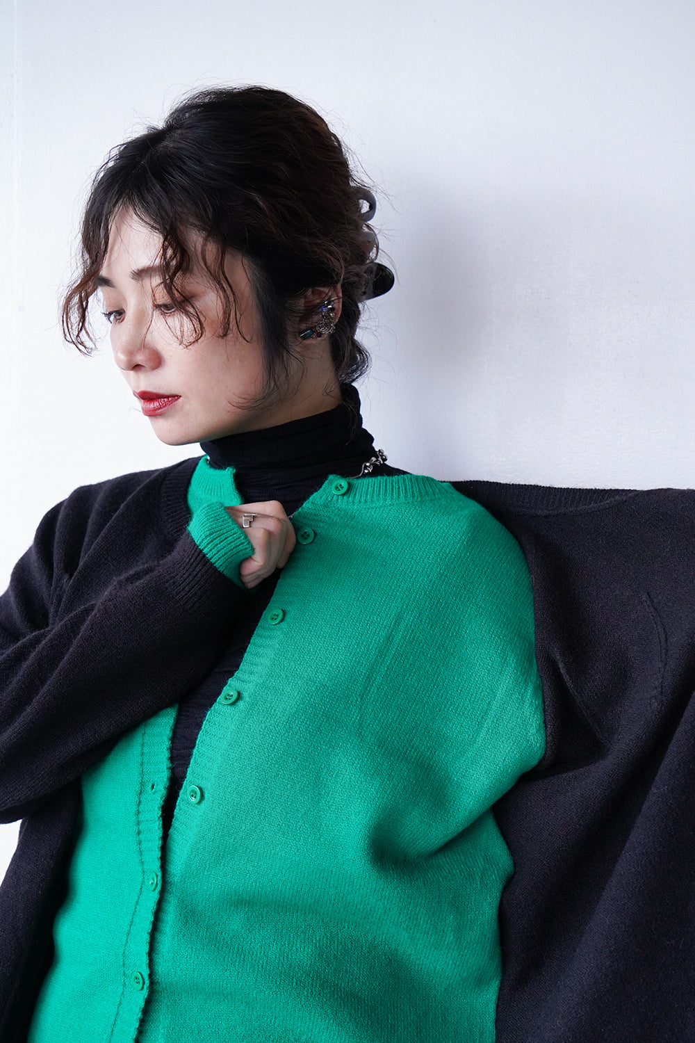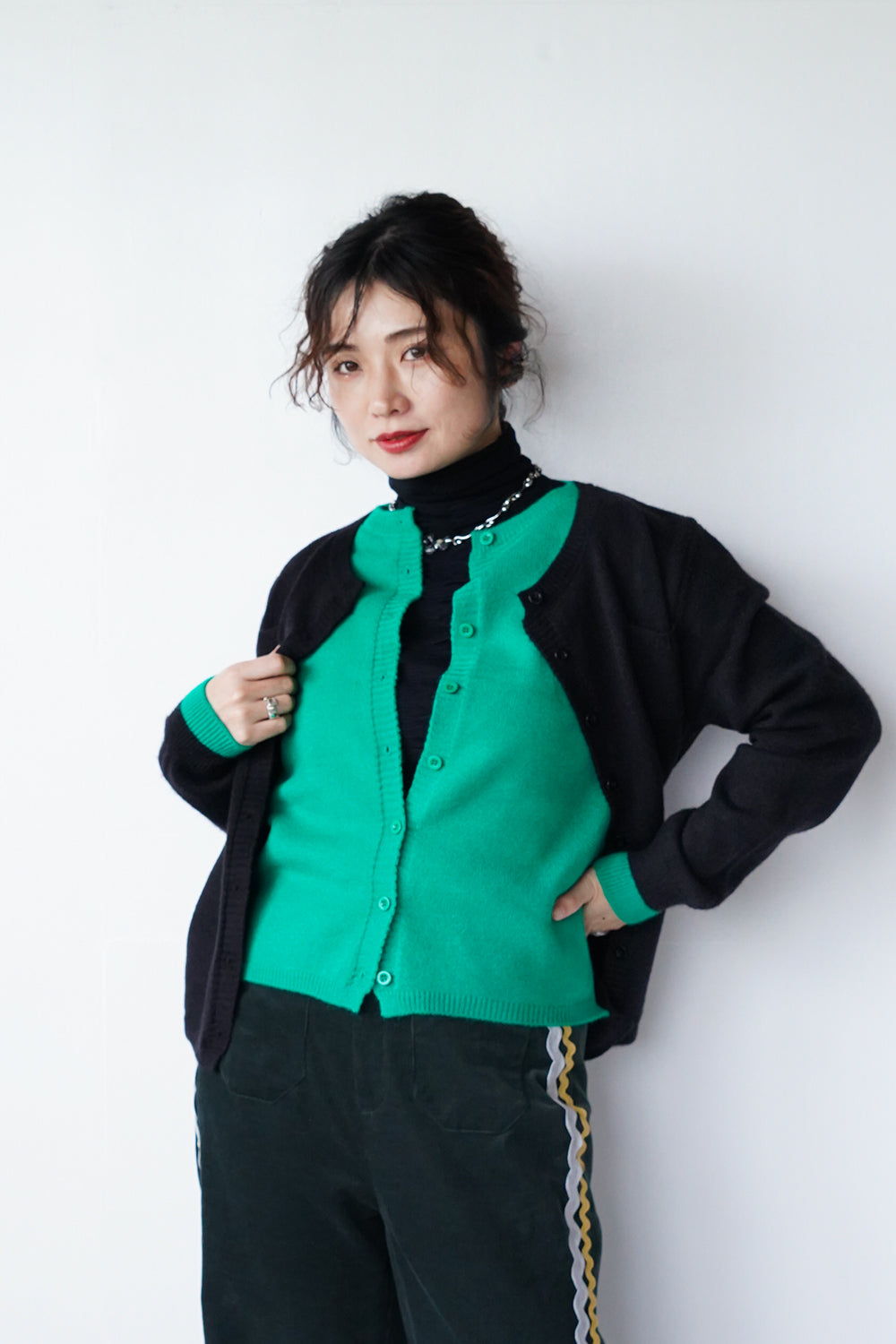 重ね着風のデザインがポップで大人かわいいニットカーディガン。ボタンをしめると配色感はさりげなく、ボタンをあければ配色感が強まりアクセントに◎コンパクトなシルエットでボトムスを選ばない優秀アイテム。ナイロン混の滑らかな質感で着心地も◎