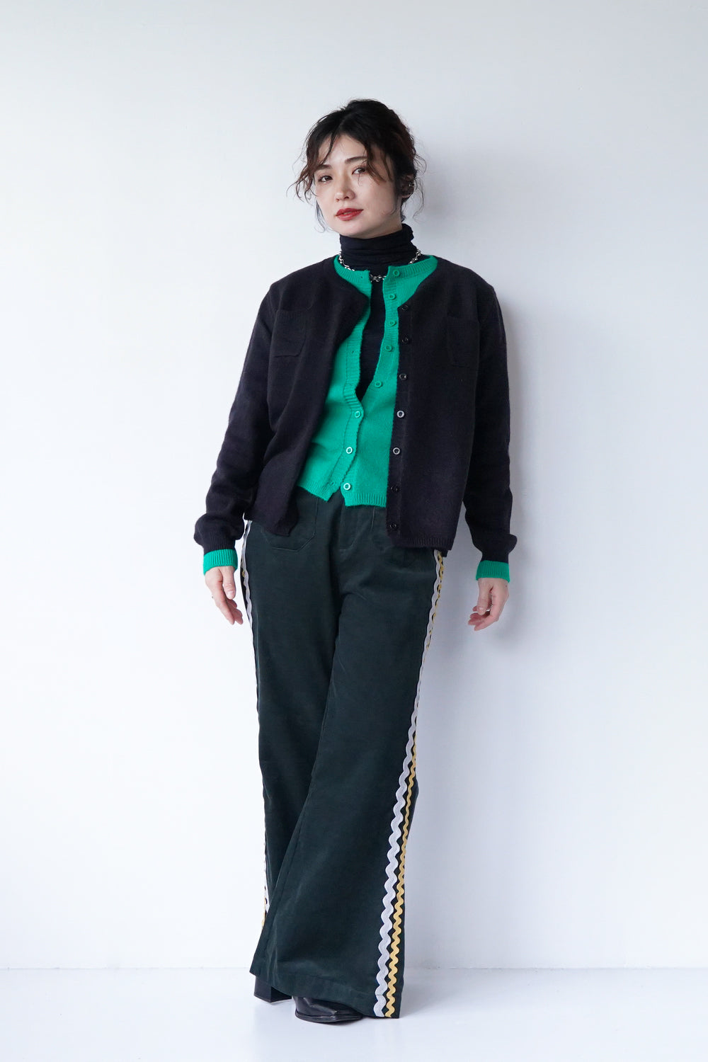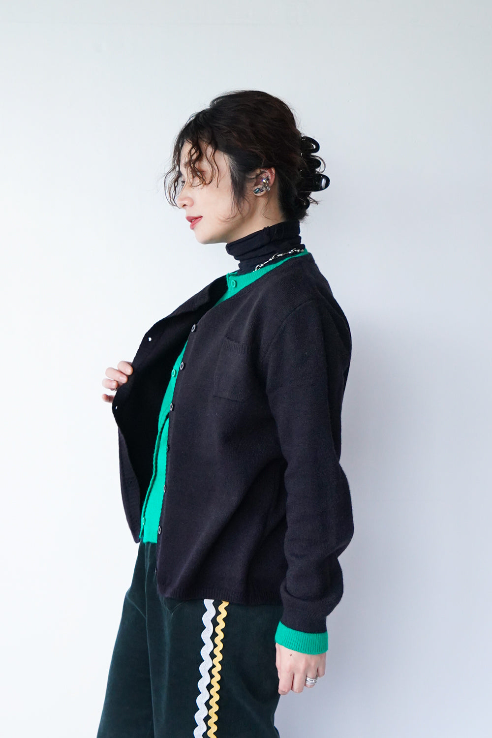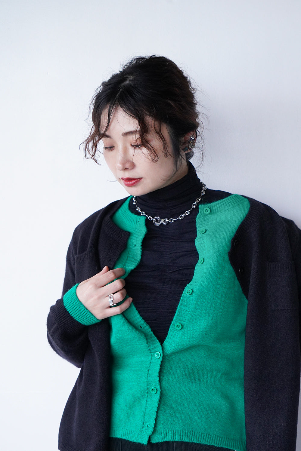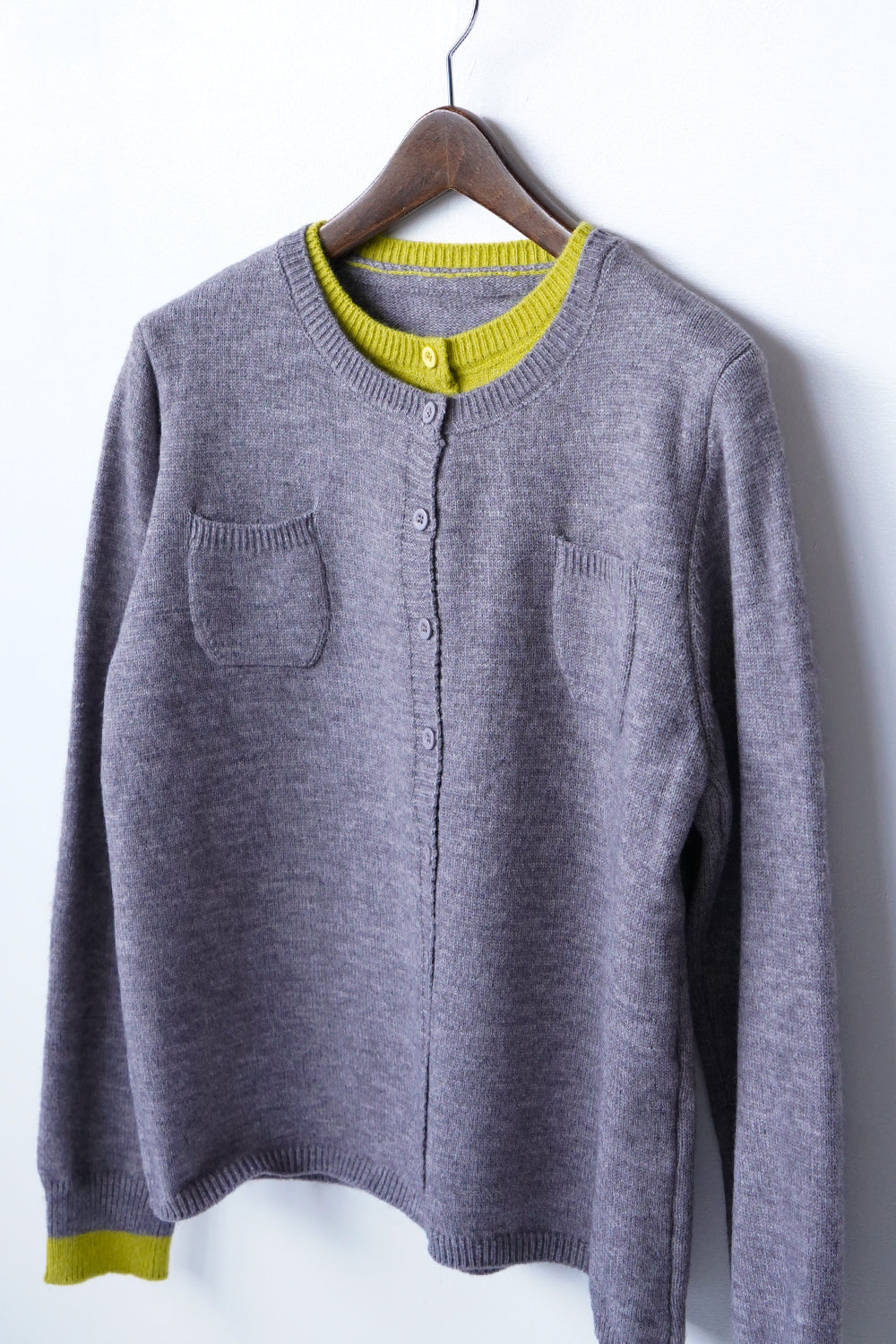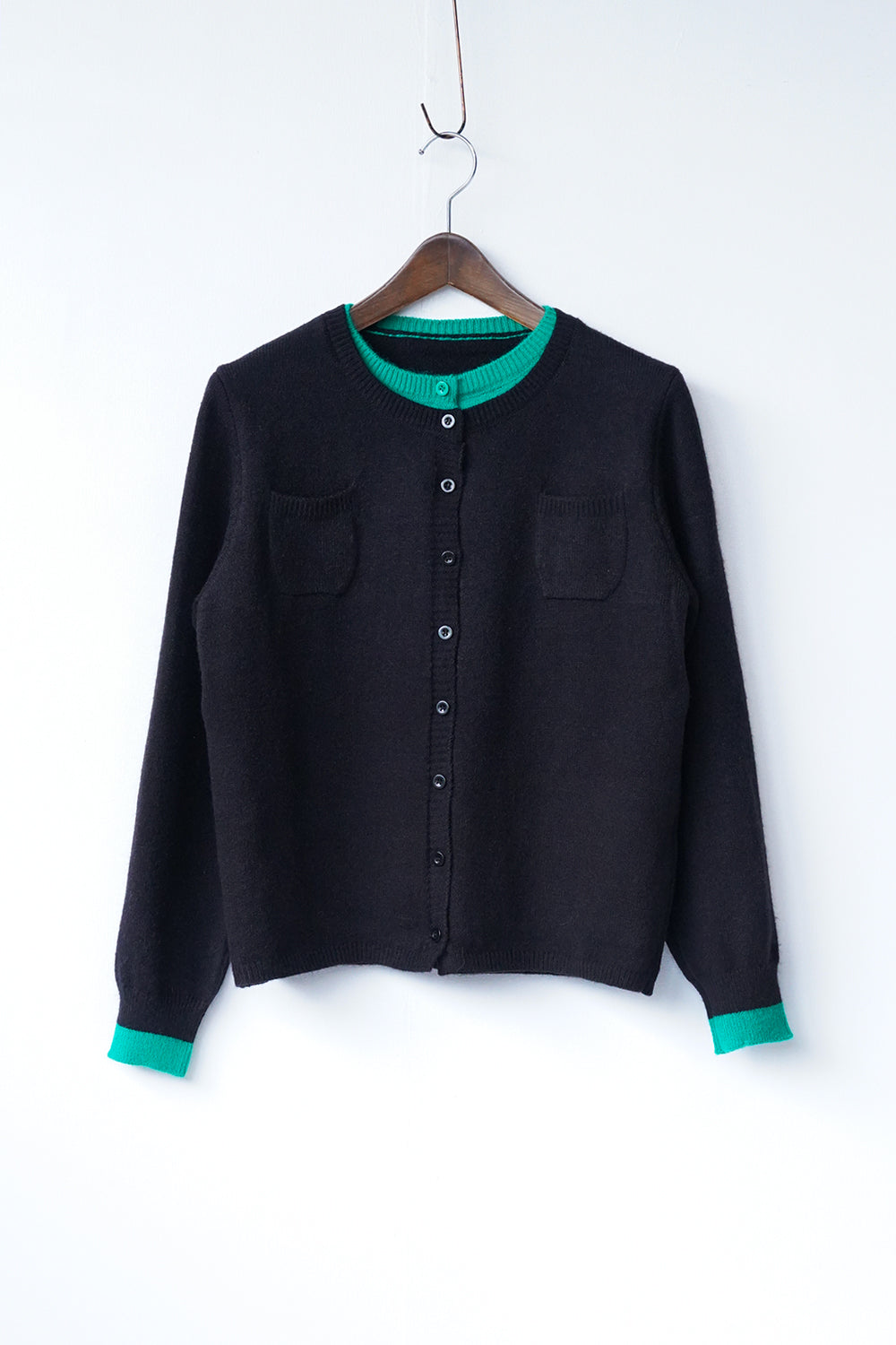 重ね着風のデザインがポップで大人かわいいニットカーディガン。ボタンをしめると配色感はさりげなく、ボタンをあければ配色感が強まりアクセントに◎コンパクトなシルエットでボトムスを選ばない優秀アイテム。ナイロン混の滑らかな質感で着心地も◎