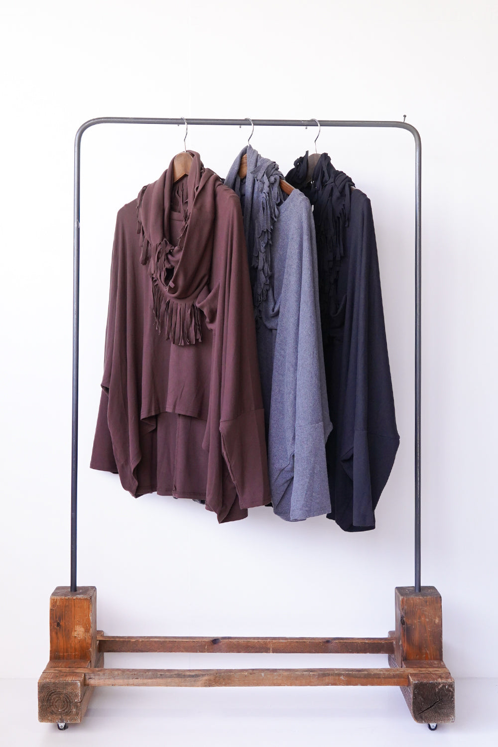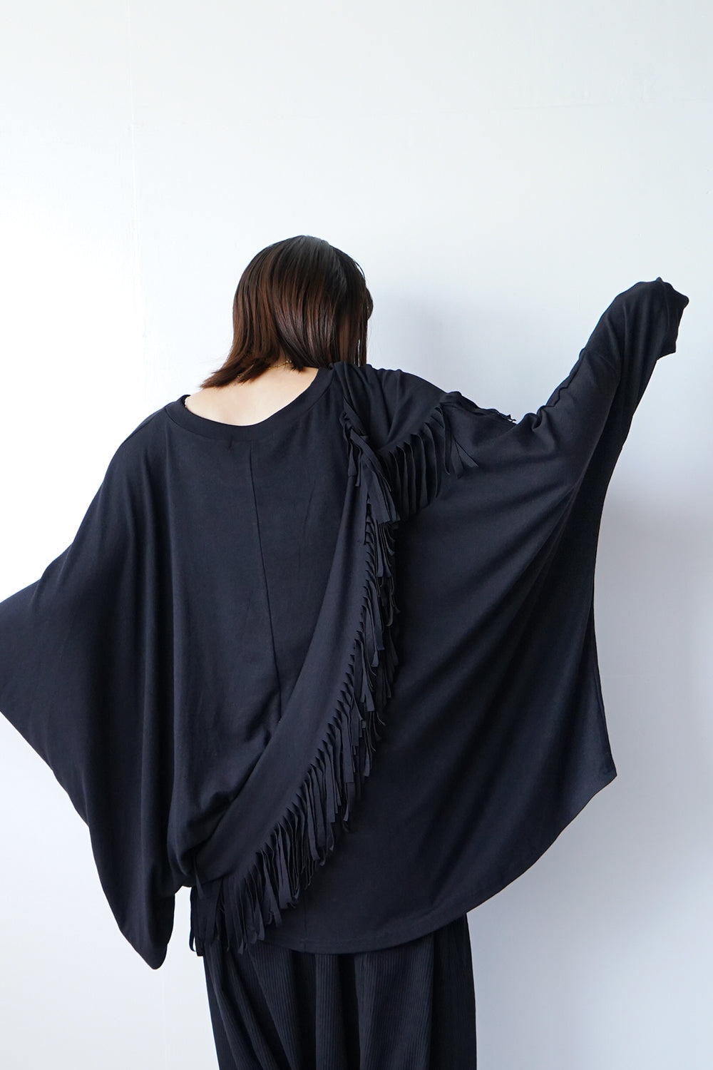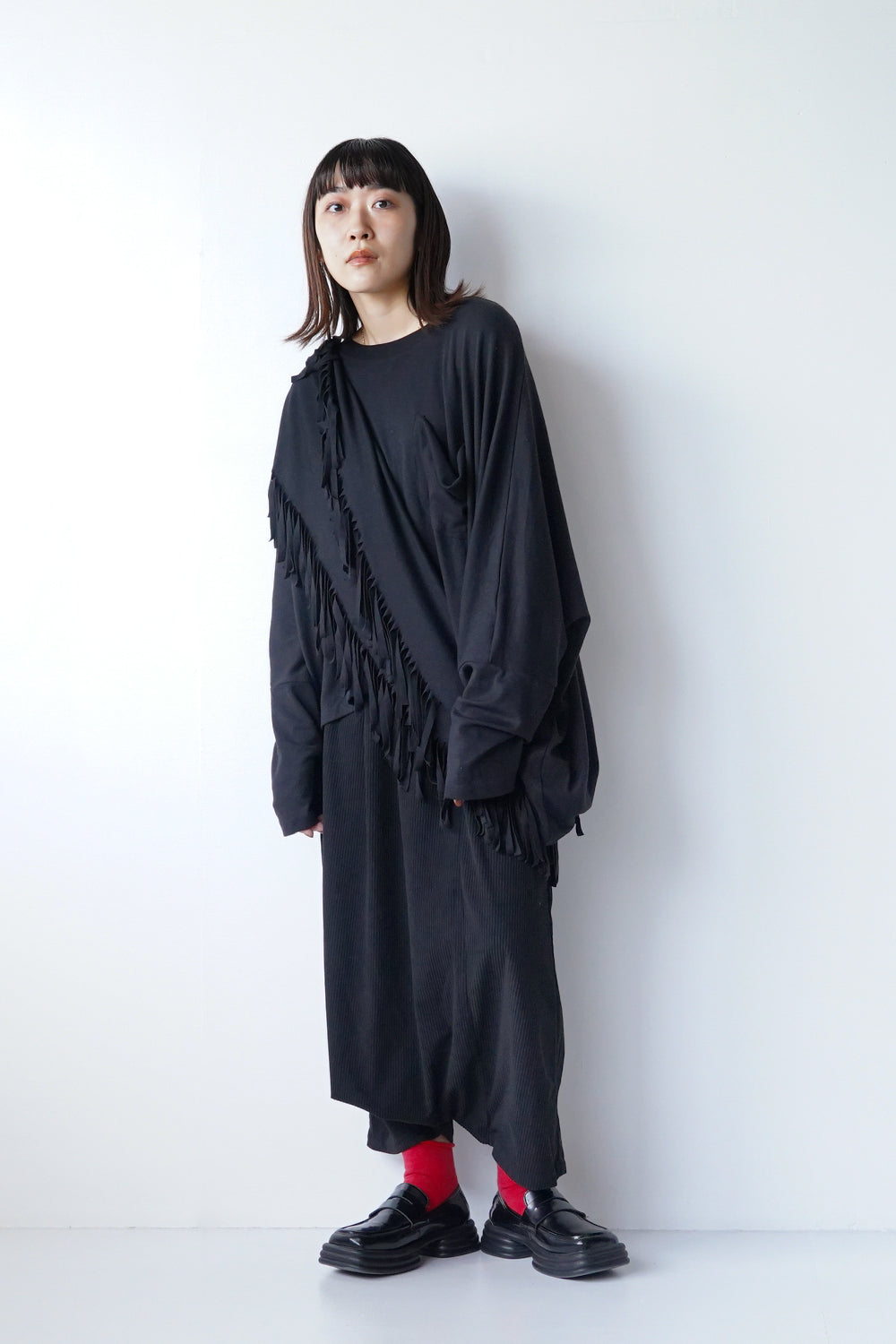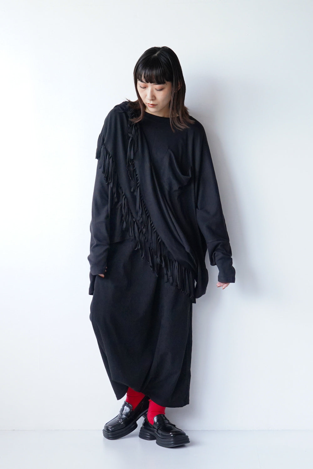 フリンジスヌードがセットになったワイドプルオーバー。たっぷり身幅のストレスフリーなサイズ感。着る人を選ばないシルエットで体系カバーにも◎単品でも使えるスヌードはセットで着るとよりスタイリングを高めてくれる嬉しいアイテム。顔回り以外にもたすき掛けなどアレンジ場所を変えて雰囲気を楽しめます。
