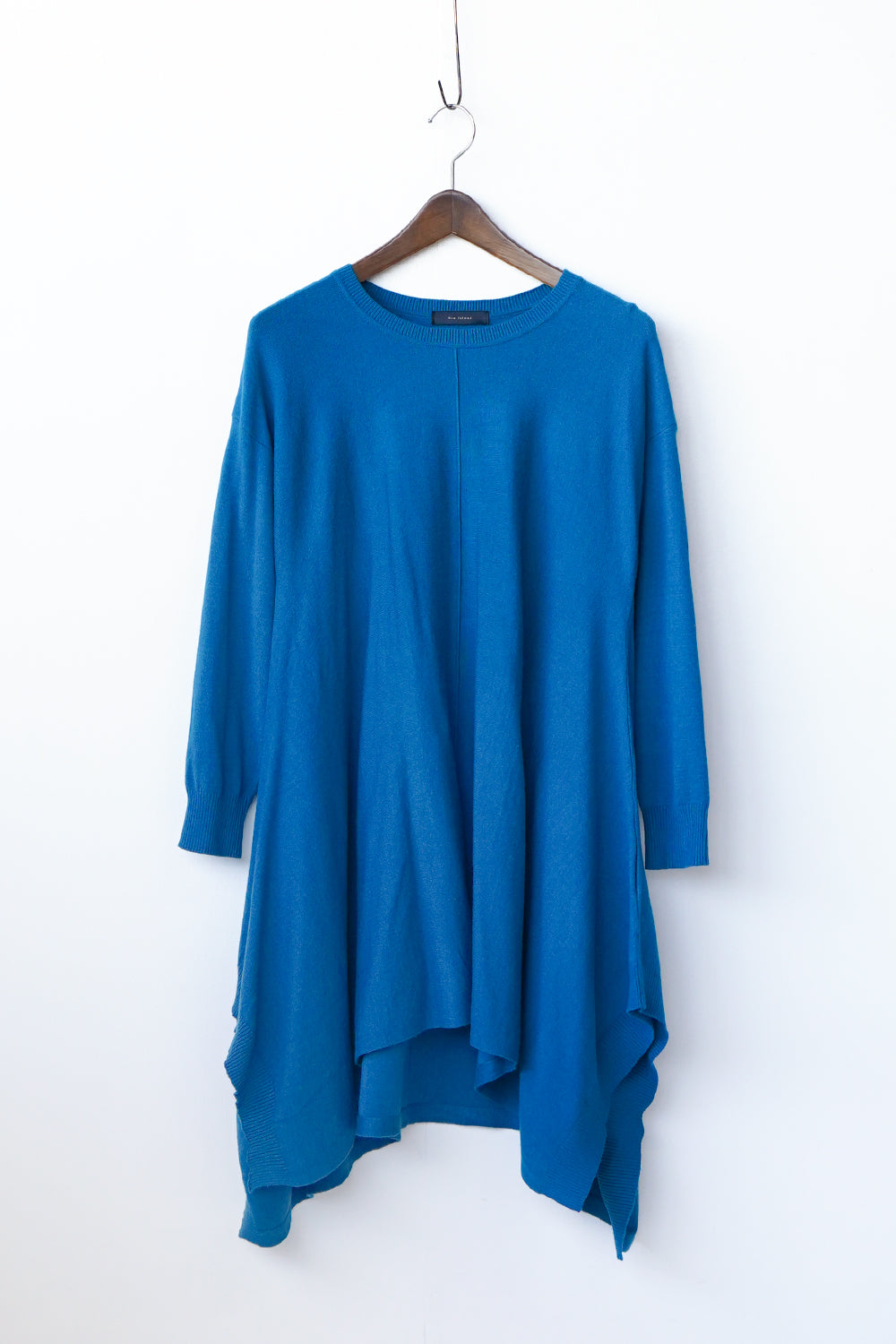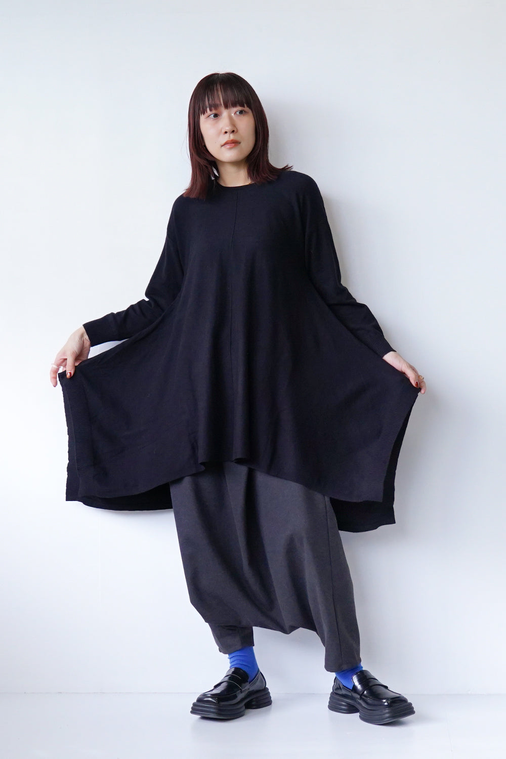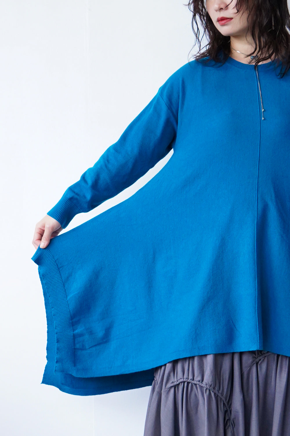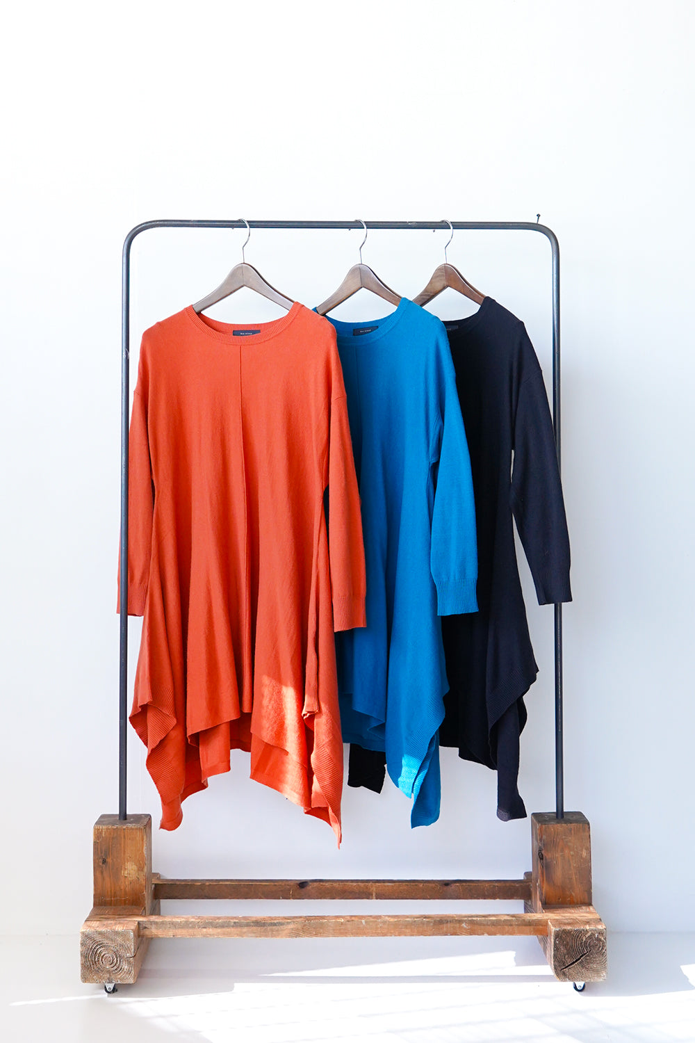 サイドの落ち感がきれいなチュニックニット。レーヨン混の滑らかな肌触りと薄手で着やすい素材感。女性らしいラウンドネックにさりげないセンターラインが縦ラインを強調してくれてバランス◎安心感のある丈感なので身長問わず着られるサイズ感なのも嬉しいポイント。