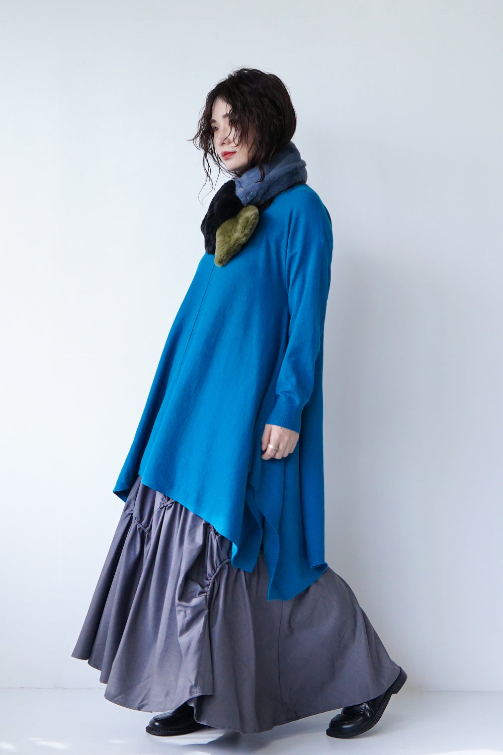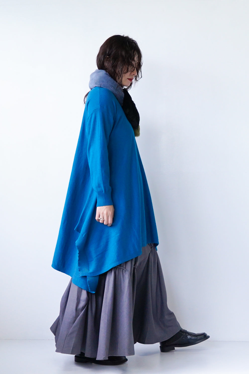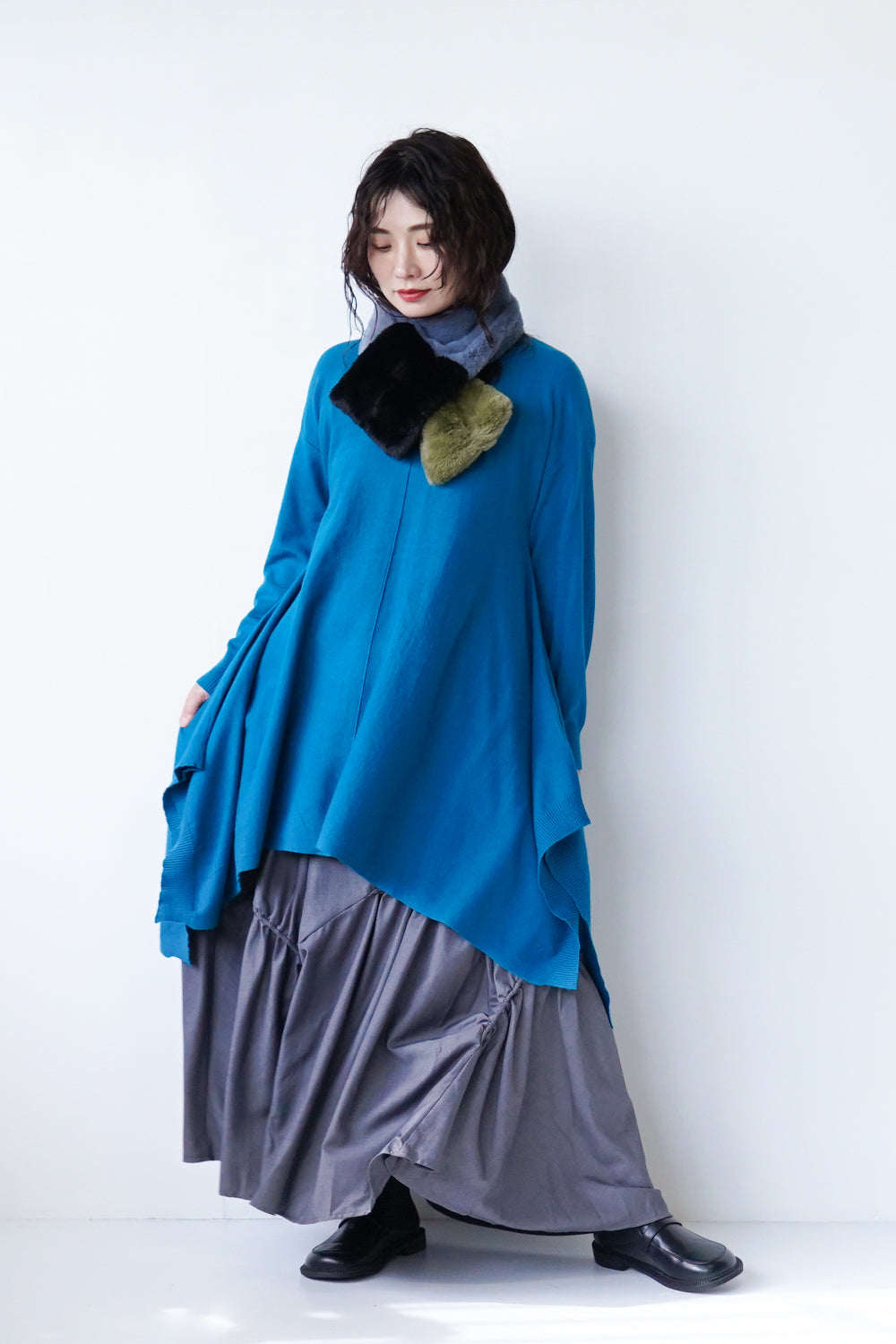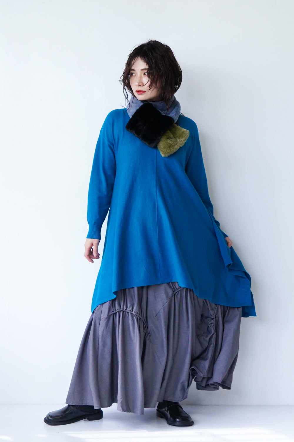 サイドの落ち感がきれいなチュニックニット。レーヨン混の滑らかな肌触りと薄手で着やすい素材感。女性らしいラウンドネックにさりげないセンターラインが縦ラインを強調してくれてバランス◎安心感のある丈感なので身長問わず着られるサイズ感なのも嬉しいポイント。