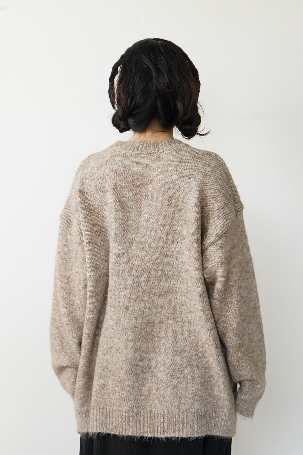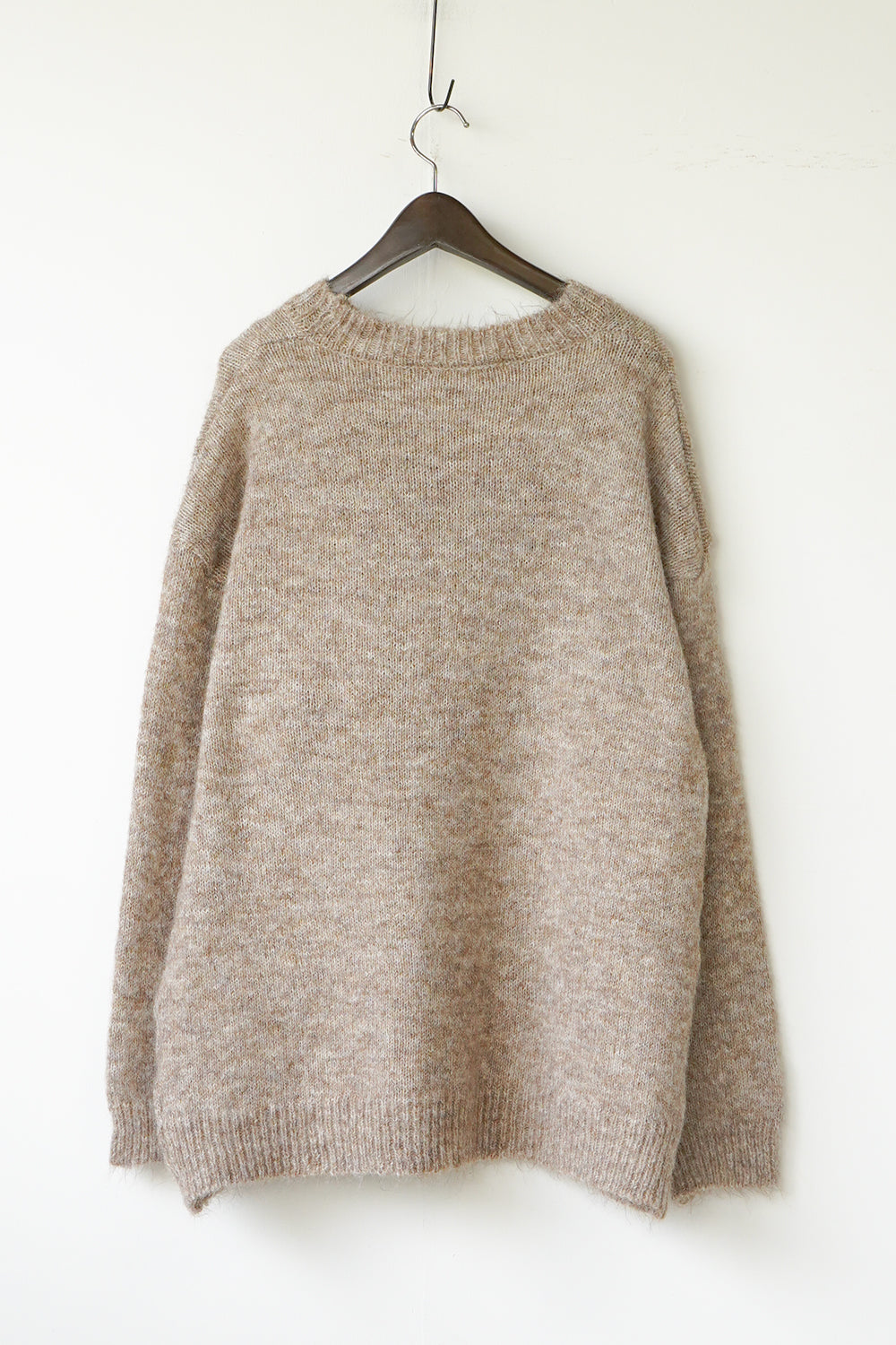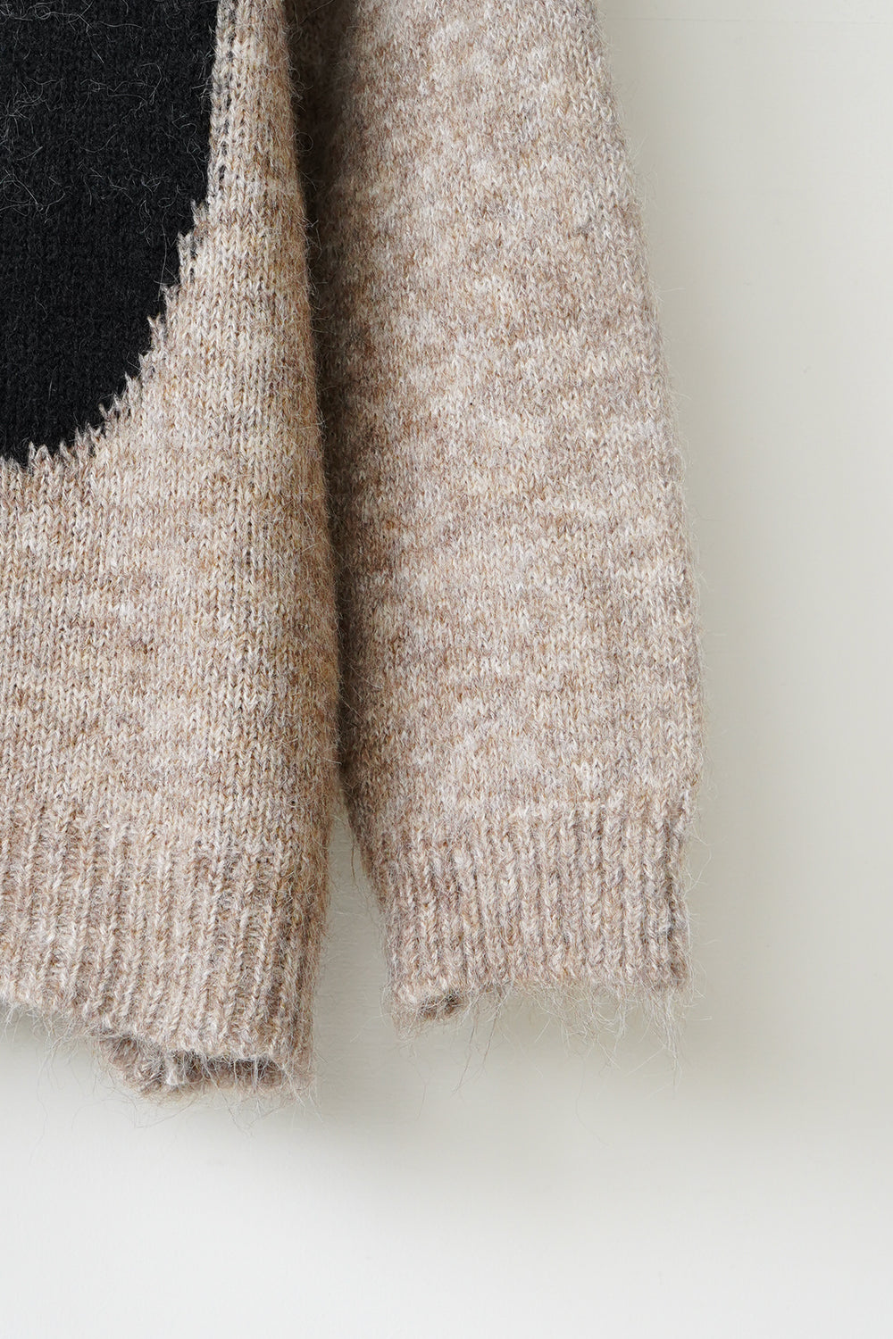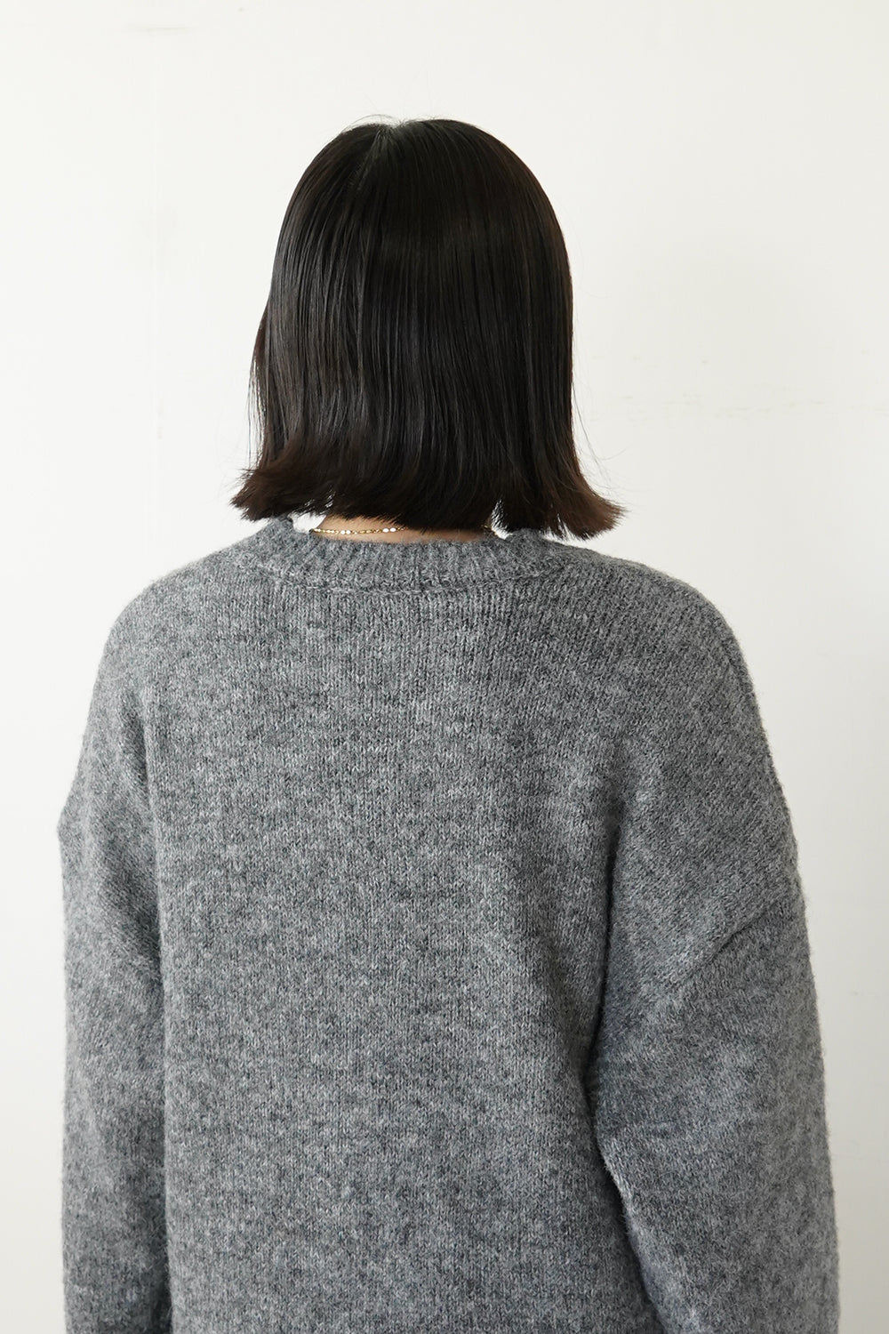 キャッチーなパンダモチーフがスタイリングの主役になるニット。毛足の長めな柔らかく暖かい素材感で、ハイネックインナーやシャツをレイヤードしても余裕のあるサイズ感。気の抜けたデザインがルーズなシルエットにピッタリのアイテム。デニムなどでカジュアルにもスカートで外したスタイリングにも◎