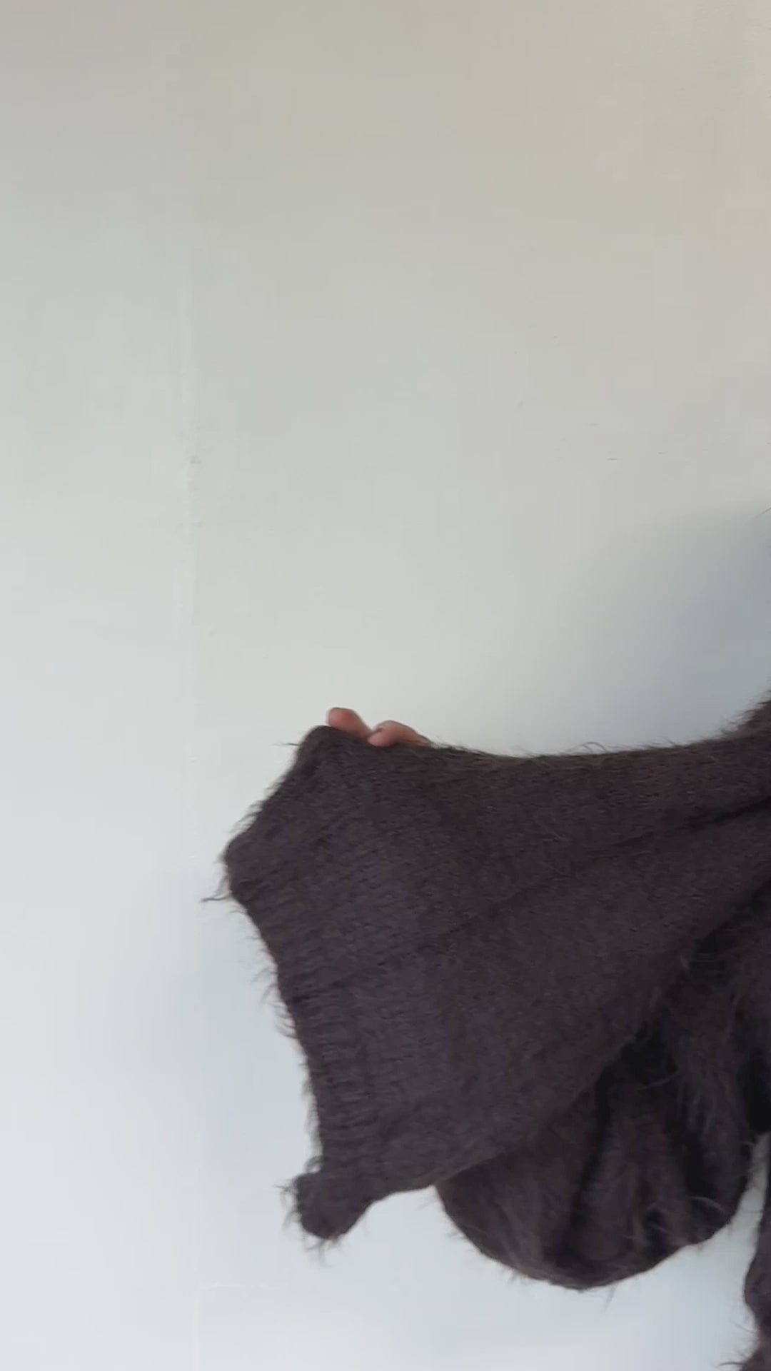 マフラー付きのニットカーディガン。毛足の長い柔らかい素材感で着心地◎ウール混の保温性に優れた素材は冬に欠かせないアイテム。セットアップでマフラーを合わせればよりおしゃれ感がアップ。長さがあるので一巻きでももちろん、ぐるぐる巻いたりとアレンジ自在。