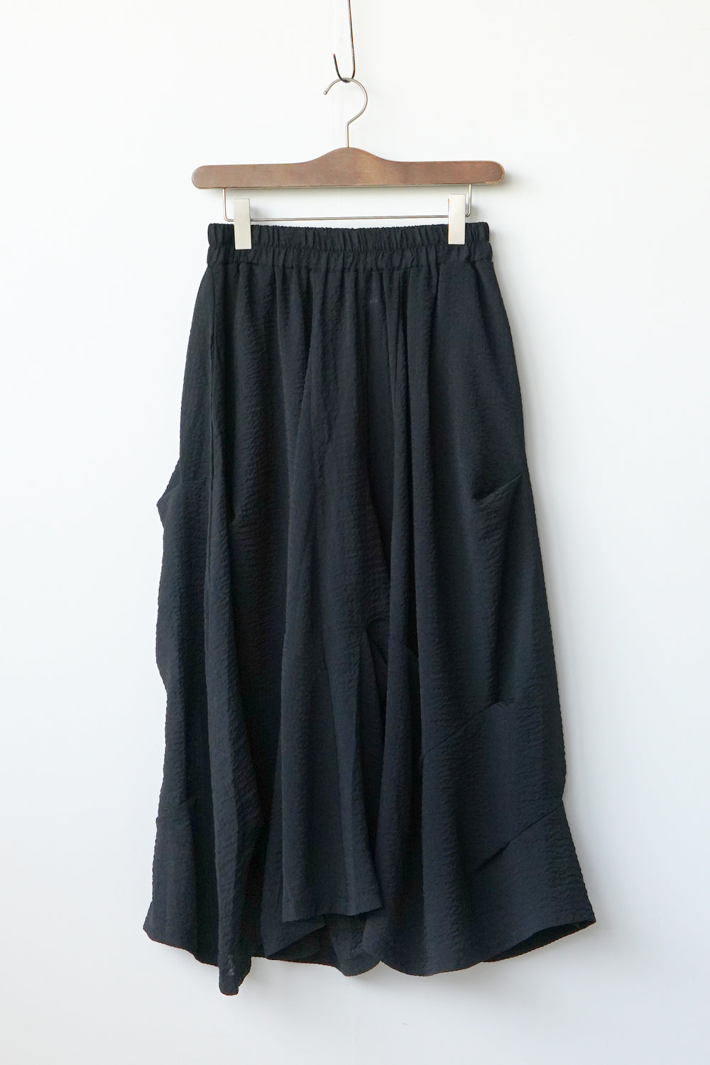 ランダムに入ったタックデザインがモードな印象のワイドパンツ。さりげない格子柄に伸縮性のある軽やかな生地感。たっぷりとした幅感で通気性もよく夏にも大活躍間違いなし◎同素材のベストとのセットアップもおすすめです。