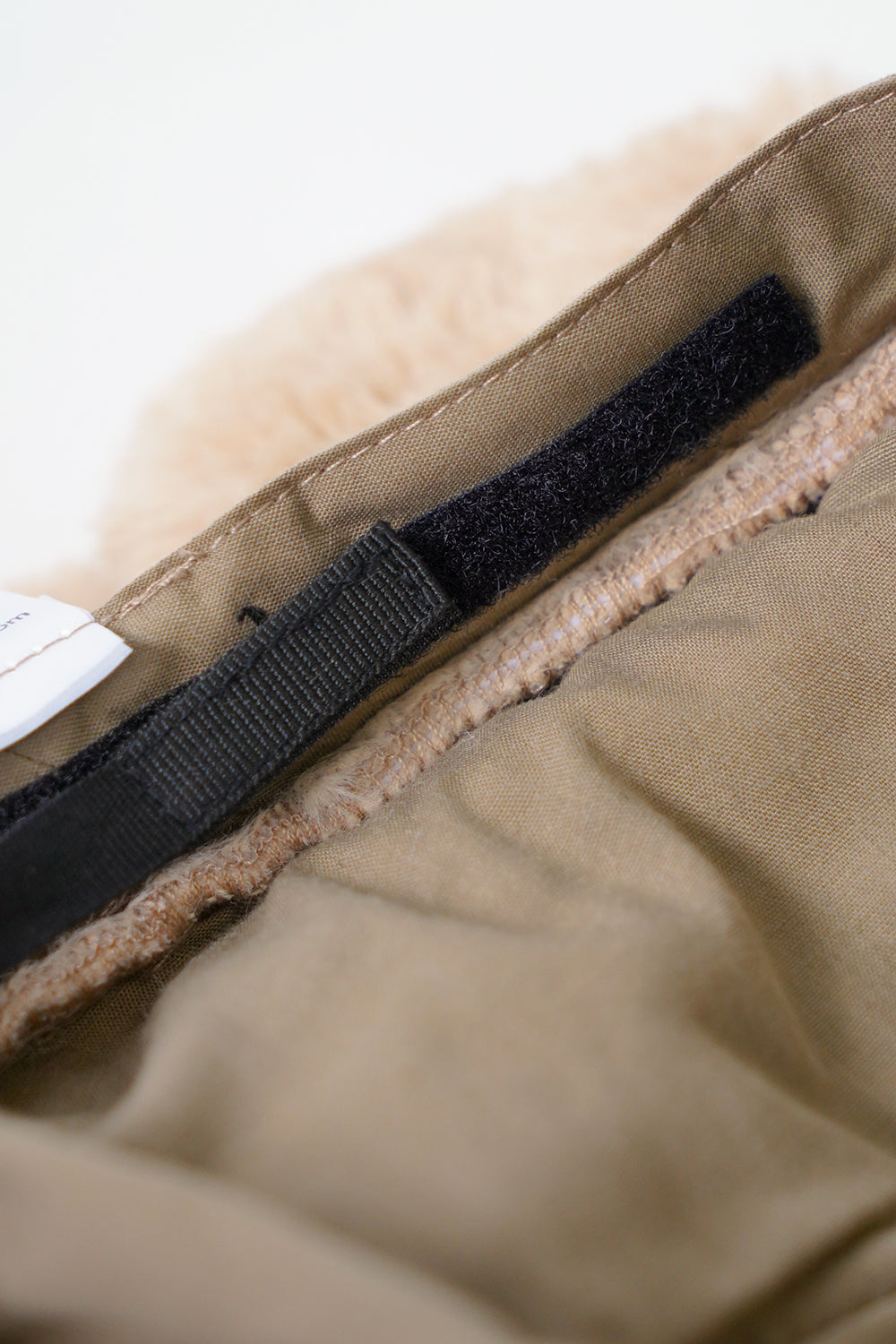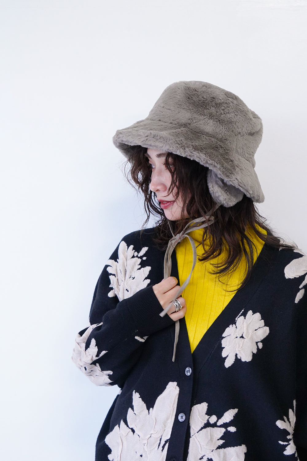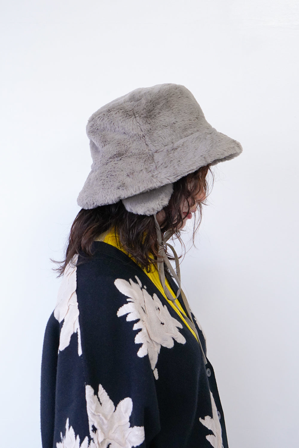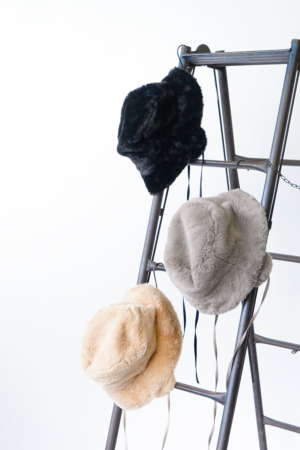 秋冬スタイリングのポイントになるファーハット。ふわふわと肌触り良く、直接肌に触れてもチクチクしない柔らかな素材感。包み込まれるような耳当て付きで暖かく、防寒にもピッタリのアイテムです。内側はサイズ調整できる仕様になっています。