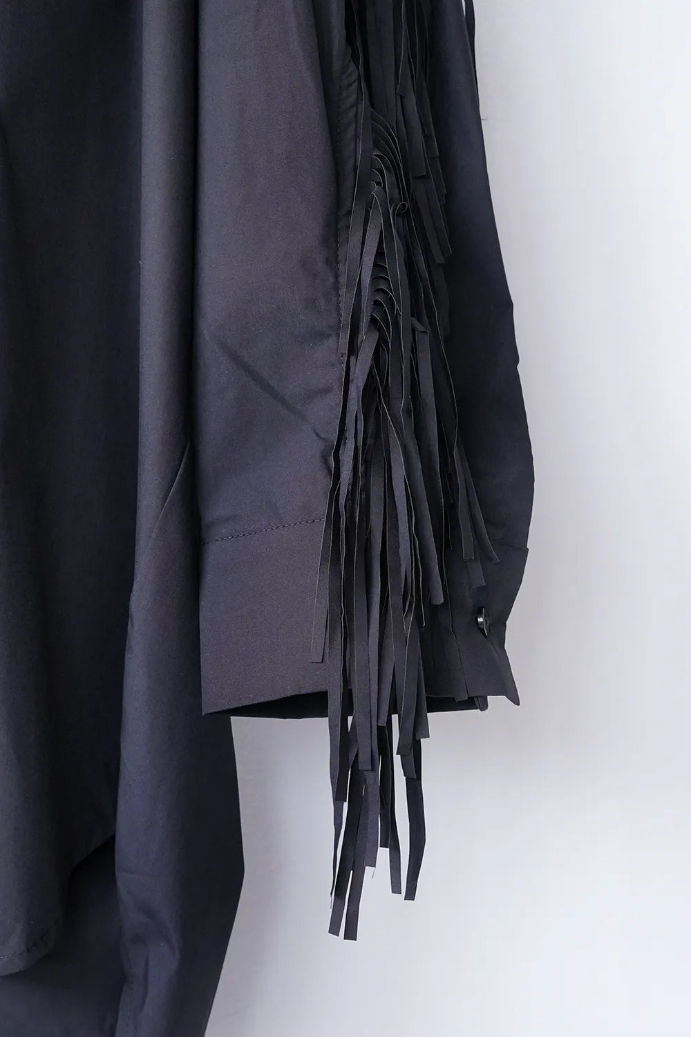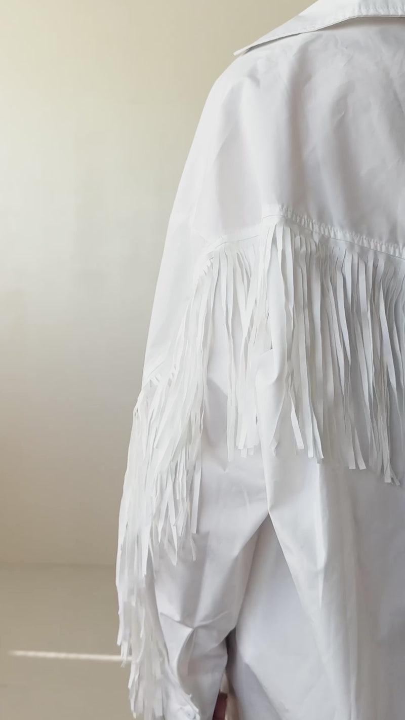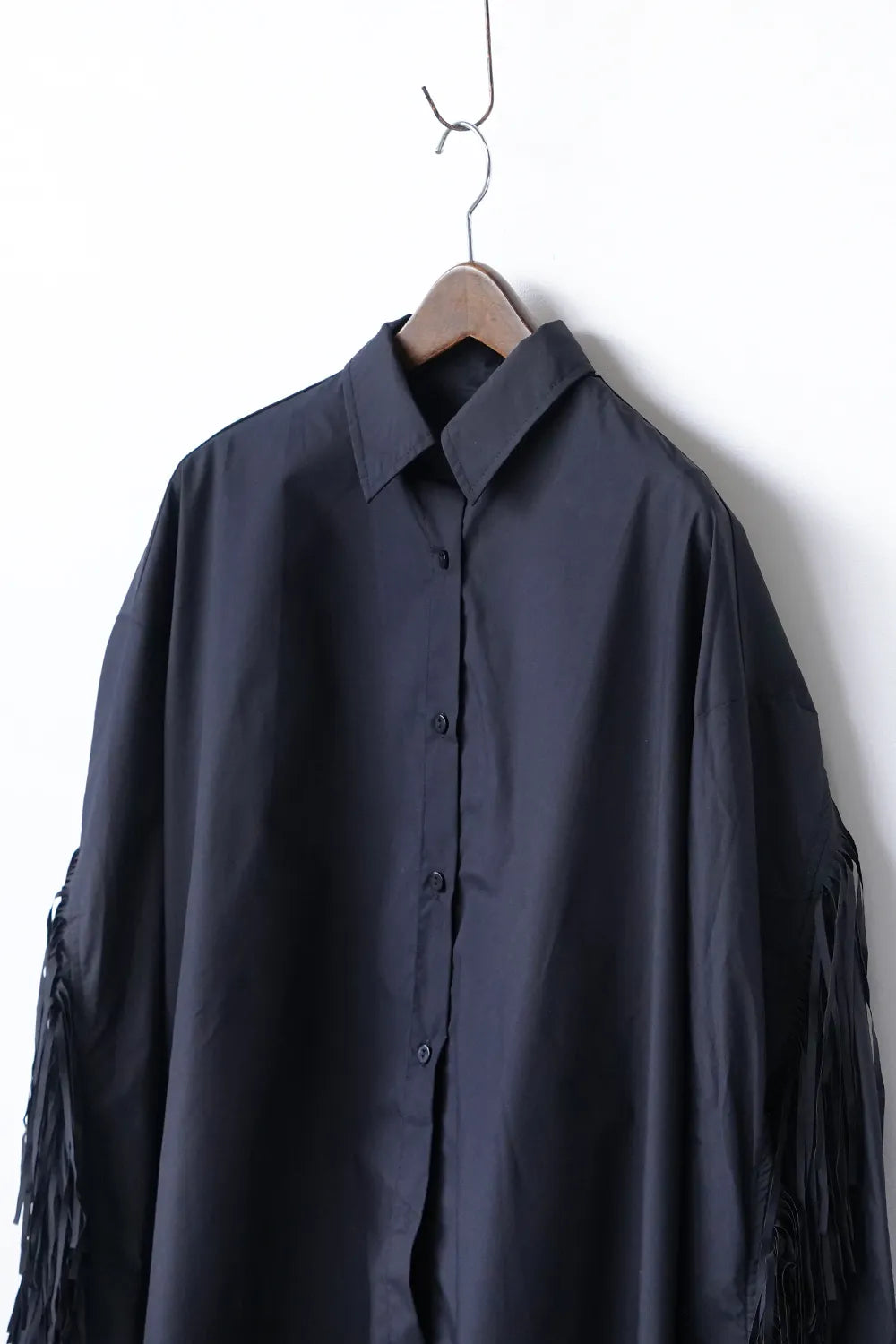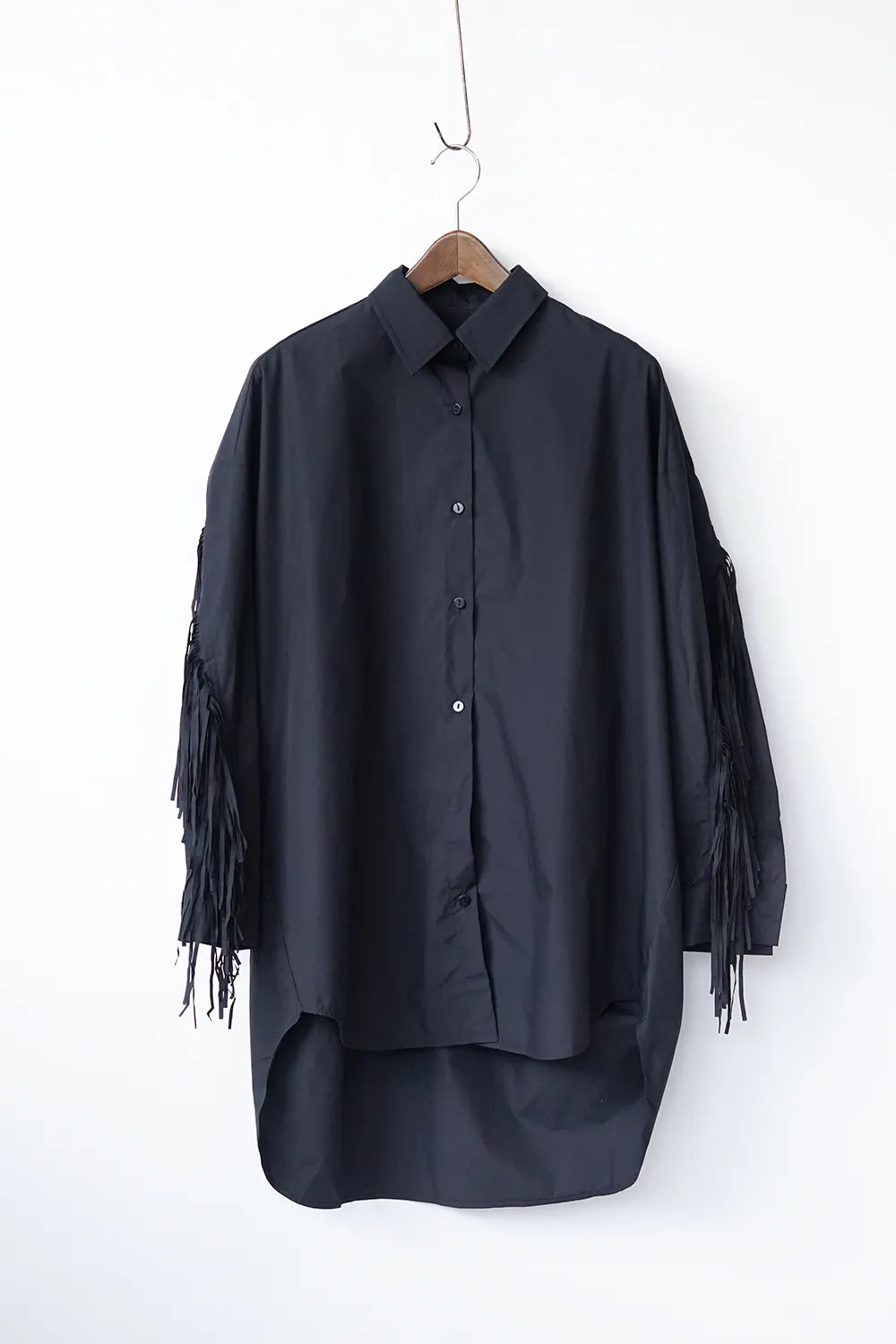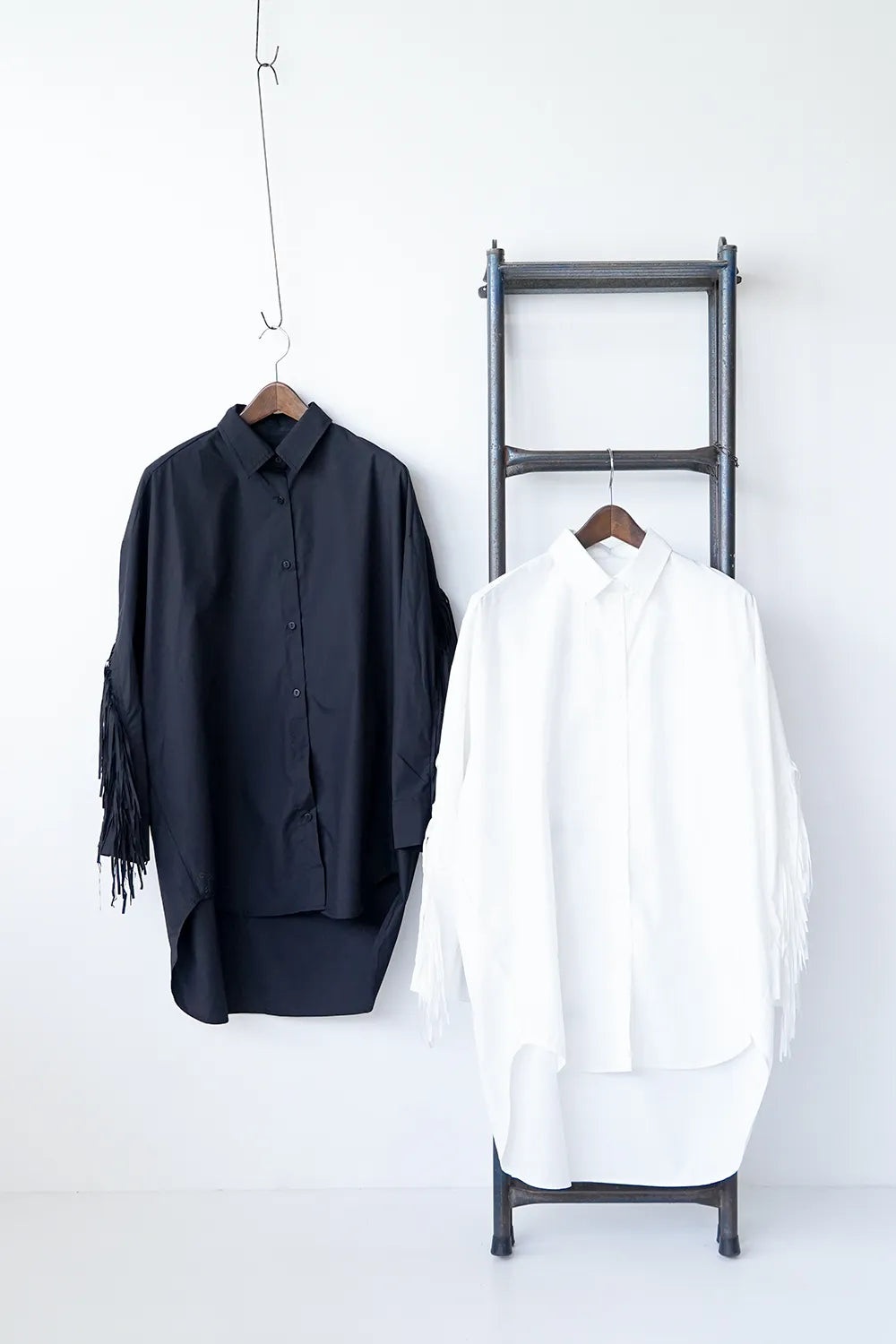 存在感抜群のフリンジチュニックシャツ。ウエスタンライクな雰囲気を持ちつつも、モノトーンカラーが都会的な印象。動くたびに揺れるフリンジがポイント。身幅はたっぷりとしていて前後差があるので体系カバーにも◎コーデの主役になるおすすめアイテムです。